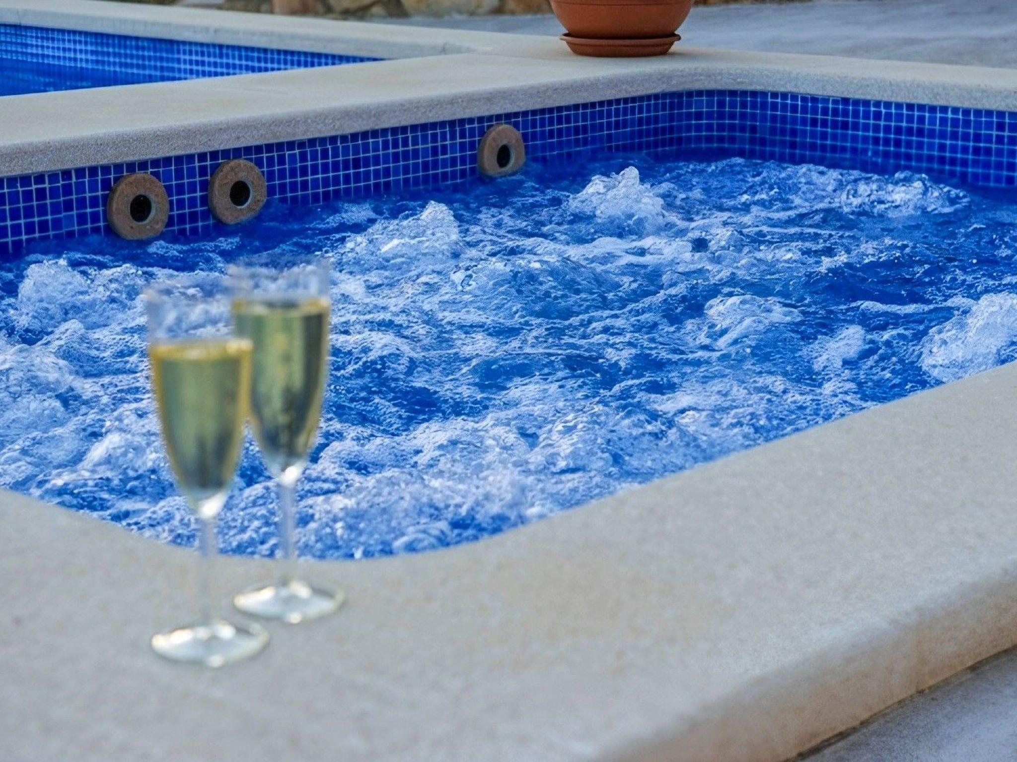 The huge terrace houses the 9 m x 5 m pool (depth 1,60 m) and an integrated 2 m x 3 m jacuzzi (depth 0,60 m). From here you can enjoy dream views of the surrounding mountains and, when visibility is good, even down to the sea. The highlight is the covered outdoor kitchen with grill, dining table and dishwasher and? there is even a TV and a ping pong table.