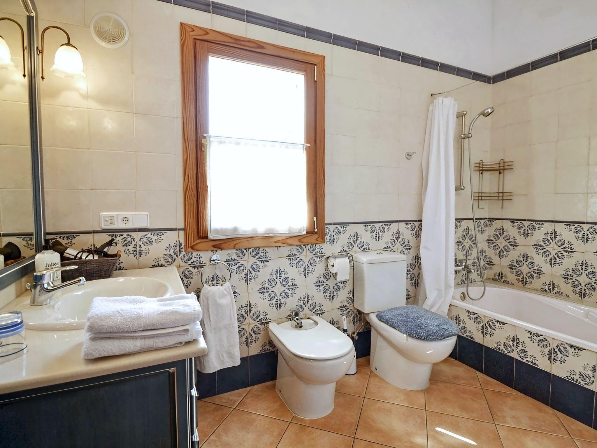 There are a total of 3 bathrooms, 1 with shower on the ground floor, 1 with shower in bath on the first floor, and the third one is located outside in the laundry room under the pool. On the ground floor is the spacious and bright living room with satellite TV and WiFi internet and the kitchen, which is equipped with dishwasher and also has access to the pool terrace.