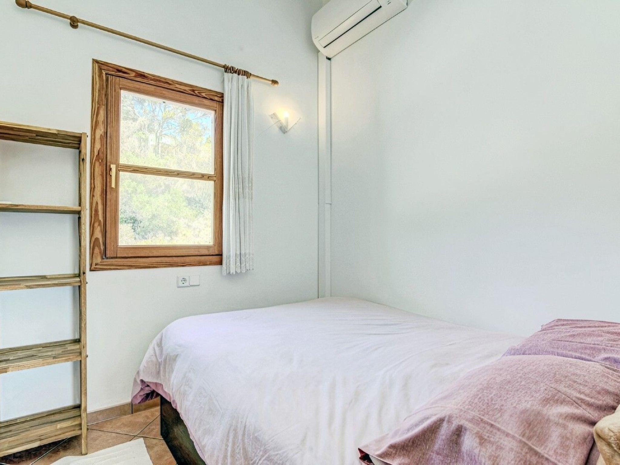 The house can accommodate up to 7 people. Spread over 2 floors there are a total of 4 air-conditioned bedrooms, 1 with double bed, 2 with single beds and 1 with a single bed. One bedroom is on the ground floor, the others on the first floor. If desired, an additional guest can be booked (extra charge), there is another single bed in front of one of the bedrooms.