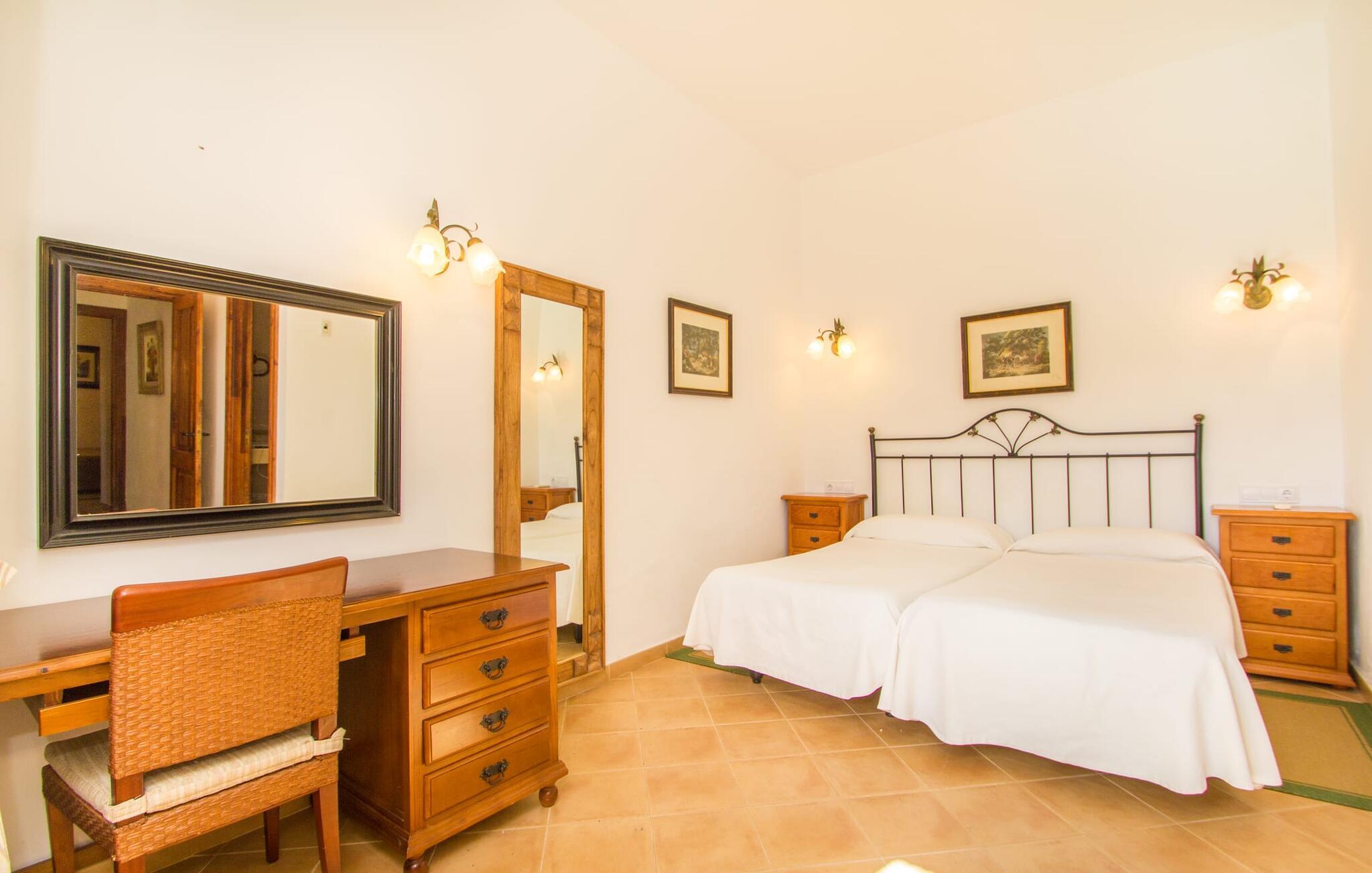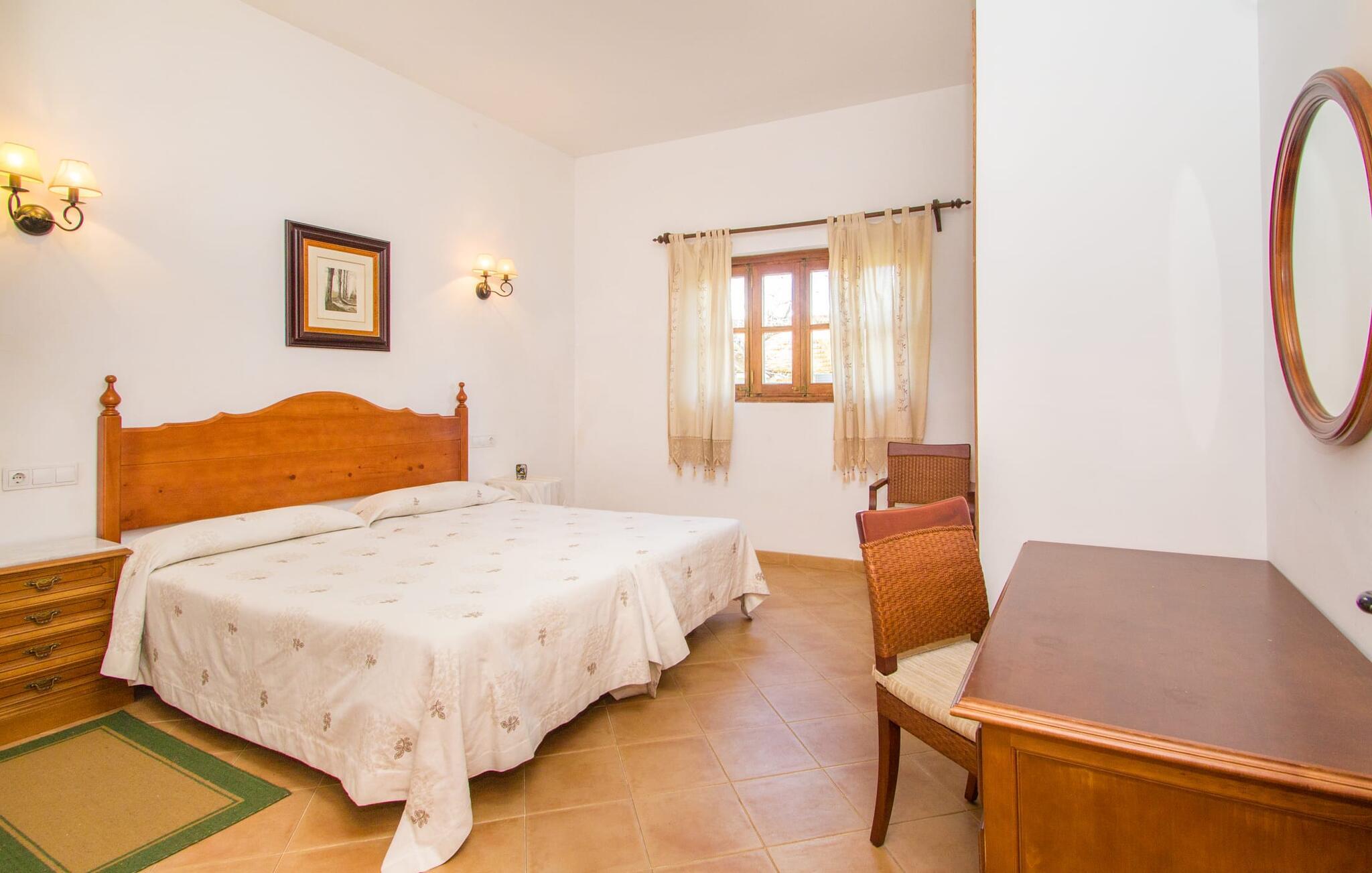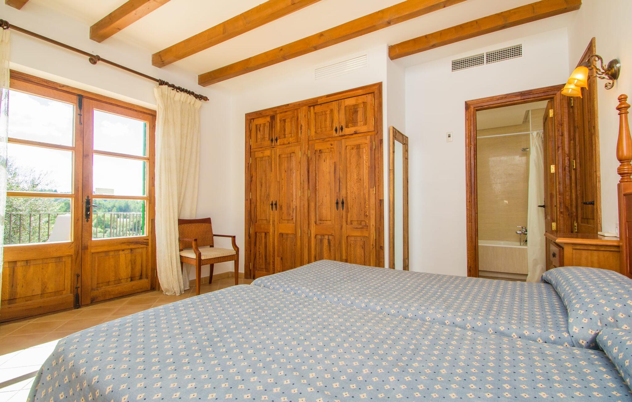 Indenfor er villaen fuldt airconditioneret, og den åbne stue og spisestue med en hyggelig brændeovn er ideel til sociale sammenkomster, mens det fuldt udstyrede køkken er perfekt til at tilberede lækre måltider. Med seks dobbeltværelser, hver med eget badeværelse, er dette den ideelle ejendom for flere familier, der holder ferie sammen.