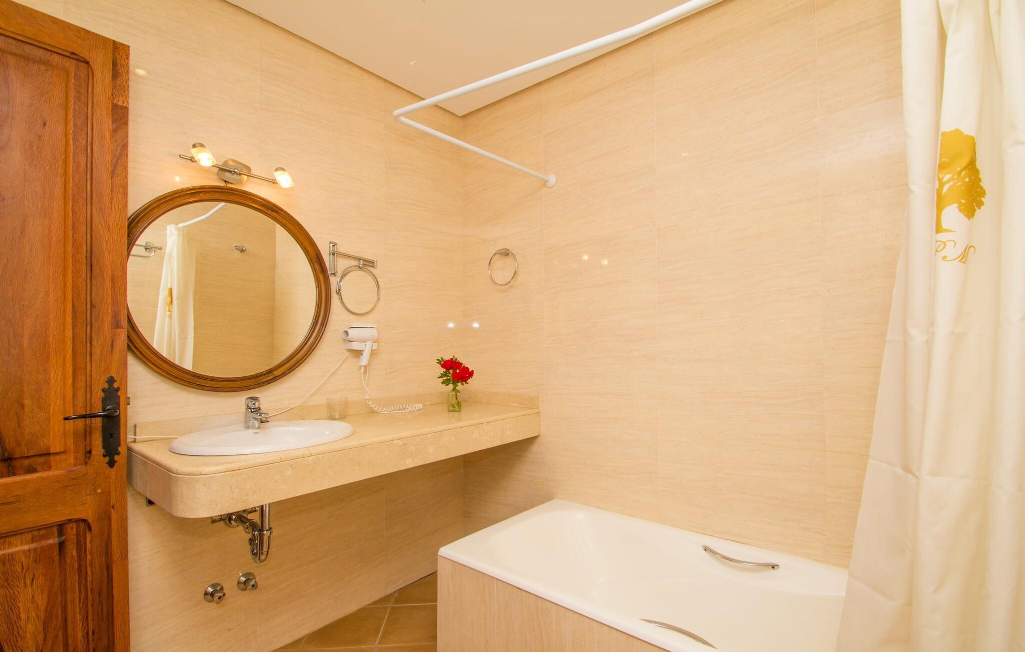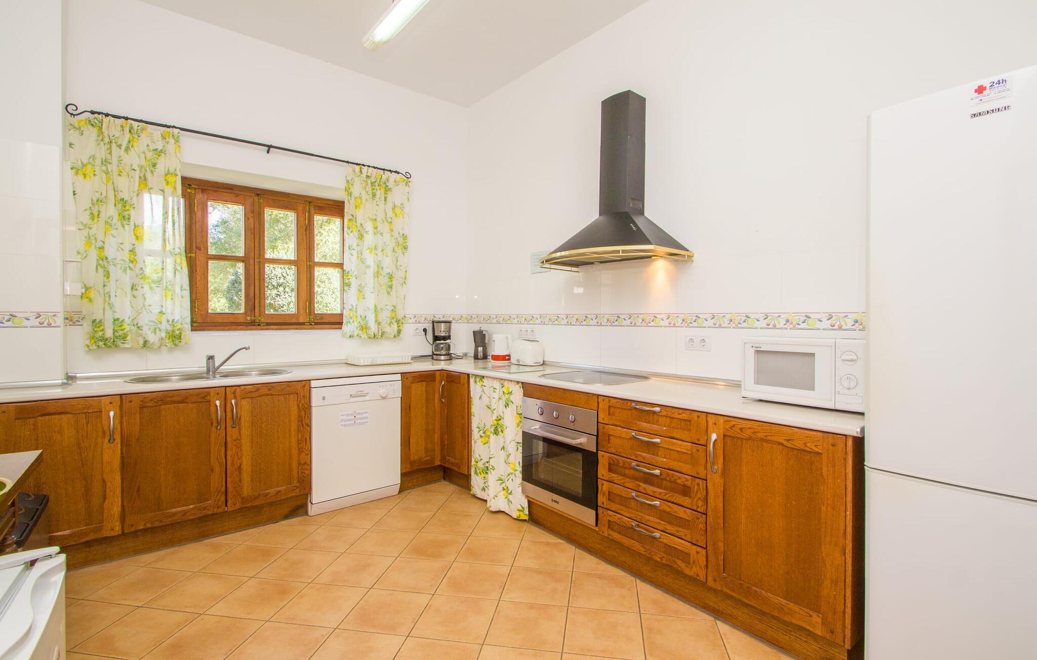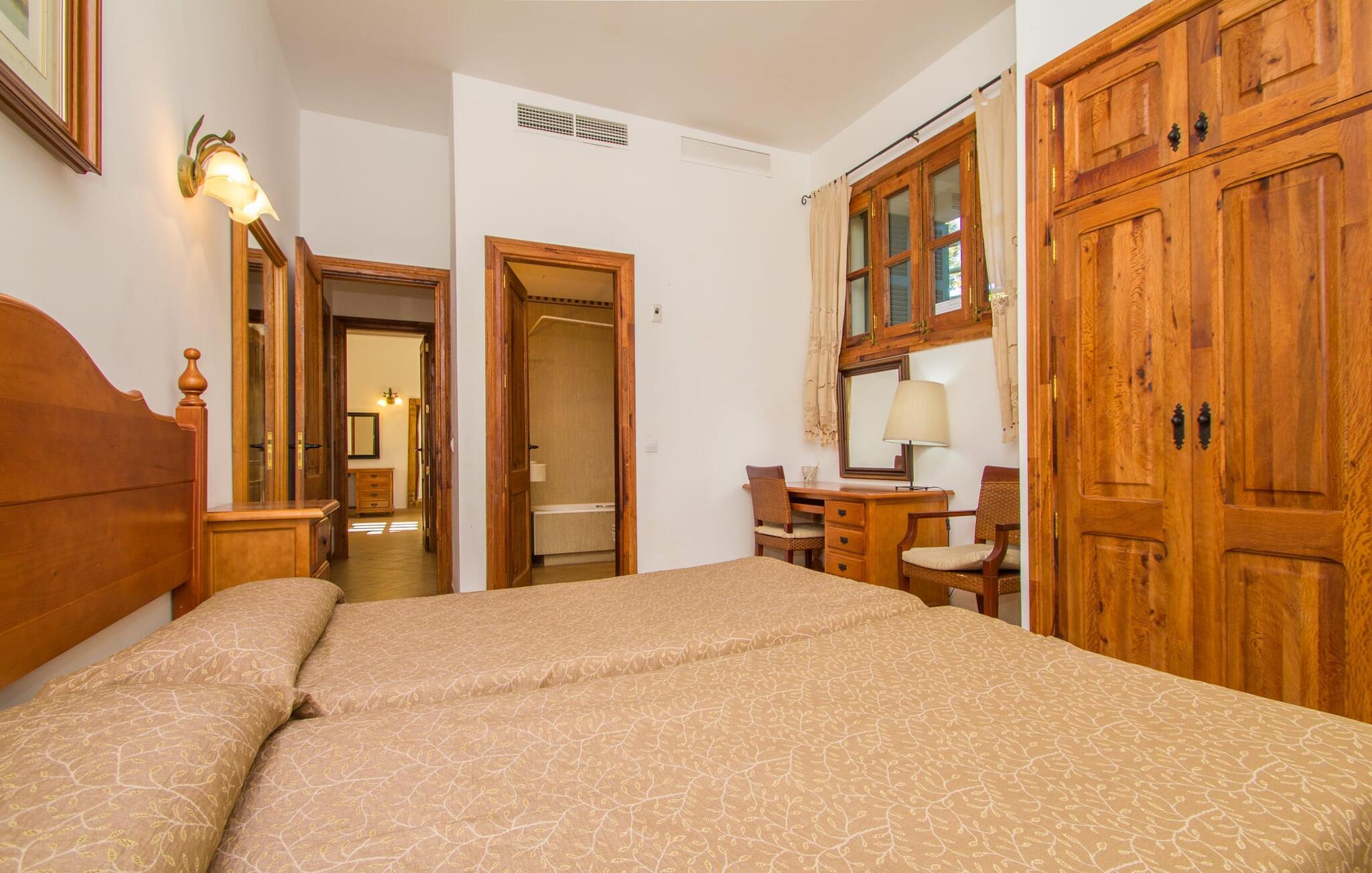Indenfor er villaen fuldt airconditioneret, og den åbne stue og spisestue med en hyggelig brændeovn er ideel til sociale sammenkomster, mens det fuldt udstyrede køkken er perfekt til at tilberede lækre måltider. Med seks dobbeltværelser, hver med eget badeværelse, er dette den ideelle ejendom for flere familier, der holder ferie sammen.