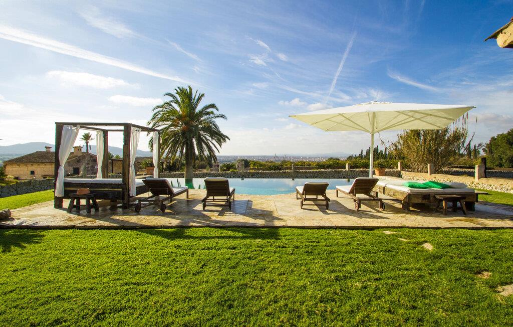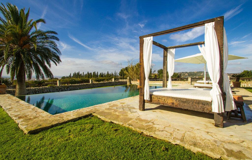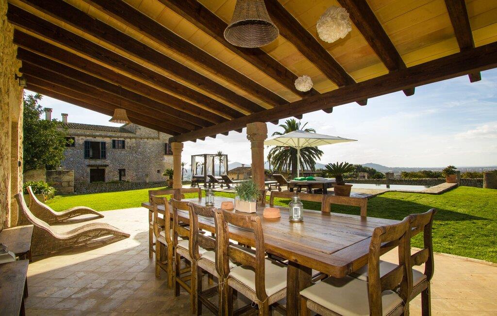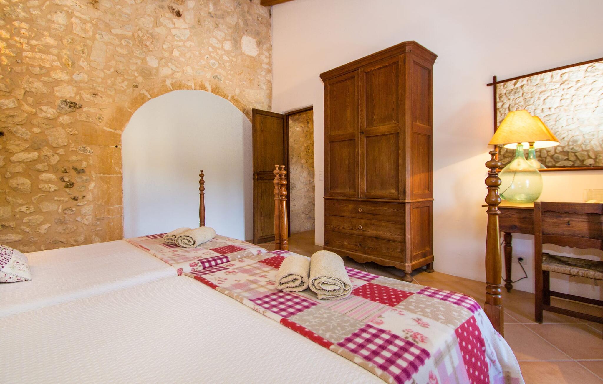Du har rede jeres seng og nu skal I ligge i den... Hos "Son Mas Vell" er det nemt. Når I stirrer op på den stjerneklare nattehimmel fra en Bali-seng ved poolen, vil I føle, at I er konge eller dronning af alt, hvad I undersøger. Vælg et sted at slappe af - mulighederne omkring den overdimensionerede swimmingpool er som noget ud af et romantisk eventyr. Hvorfor ikke nyde livet udenfor på varme sommeraftener? Selv på de varmeste dage er der ofte en let brise heroppe med en antydning af havluft fra østkysten. Uden tvivl er dette et himmelsk sted at slappe af. Denne mægtige villa ligger som en fæstning på sin bakke og ser ud til besøgende, der nærmer sig fra den virkelig stille Manacor-Son Carrió-vej og vogter sletten, jorden og dyrene, der lever på den. Denne vidtstrakte ejendom, med sine palmer, brede græsplæner og overdækkede terrasser med lange spiseborde foran og bag huset, byder på utallige muligheder for stille tilbagetog eller socialt samvær og er ideel for familier, par og grupper, der rejser sammen, men alligevel ønsker en lidt tid til sig selv har hinanden. De øvrige bygninger på ejendommen, herunder det lille kornmagasin, forstyrrer ikke den idylliske atmosfære på denne finca på nogen måde; Faktisk supplerer og forbedrer de den landlige atmosfære. Ejerne af "Son Mas Vell" har brugt flere år på autentisk at renovere og nænsomt at restaurere det: Den mere rustikke stueetage, opdelt i to dele med døre til poolen og haven, og den mere åbne, elegante øverste etage med balkonterrasse. Hvis disse vægge kunne tale... Måske ville de tale til jer i jeres drømme, når I trækker jer tilbage til et af de seks kongelige dobbeltværelser (fire ovenpå, sammen med to badeværelser, to nedenunder, hver med sit eget badeværelse). Badeværelse). Små vinduer, højt til loftet, massive trærammer, indgraverede våbenskjolde, forsænkede nicher og udsmykkede skabe; De har alle deres egen historie at fortælle. For fantasifulde børn er hele huset en eventyrlegeplads. Voksne bør også pakke et eller to specielle tøj til at tage på eller af: fra en kaftan til et sort slips, alt er muligt i den store stue på øverste etage, hvor I kan sætte jer ned i den hyggelige lounge på landing med terrassedør Åbn døren og nyd den vidunderlige udsigt - måske endda til lyden af klavermusik. Der er et andet køkken her til at lave morgenmad eller te og kaffe, men selve madlavningen - og spisningen - foregår i den nederste stue med det lange spisebord - hvis grillen står kold en gang eller om aftenen bliver det køligt. Så er det tid til at hviske jeres (ferie)historier på væggene ved pejsen eller skorstenen... Hånden på hjertet - rejseguiderne fablemer om Artà og det er meget tæt på "Son Mas Vell", men det burde ikke være det eneste sted på jeres rejseplan. Våbenskjolde kan også fortælle en historie. Måske er Manacor byen, der vil fange jeres hjerte. Attraktive patricierhuse, paladsagtige bygninger som Torre dels Enagistes (“Jesuitternes Tårn”, nu et museum) og gamle vindmøller emmer af historisk charme, mens farverige ugentlige markeder, Mallorcas perlefabrik, kilometervis af butikker og de mange restauranter emmer af deres tilbud i en ø-metropol, der opfylder behovene hos Satisfy her og nu. Byens centrum er næsten udelukkende gågade og er derfor ideel til en afslappende gåtur. Tog og busser kører dog herfra i alle retninger, selv til Palma, så I kan tage hånden fra rattet i ny og næ, hvilket giver jer friheden til at tage armen på en elsket... Det kunne ikke være nemmere: kørsel Følg Ma-15 og Ma-4021 og her finder I villaen "Son Mas Vell". Forlad shoppingbyen Manacor mod Son Carrió, og efter 4 km er I nået til jeres destination. En himmelsk ejendom venter jer på en bakketop med panoramaudsigt over landskabet. Indbydende naturlige strande ligger kun få kilometer væk, enten på østkysten mod Porto Cristo og Cala Millor, eller længere mod nord ved Badia Alcúdia.