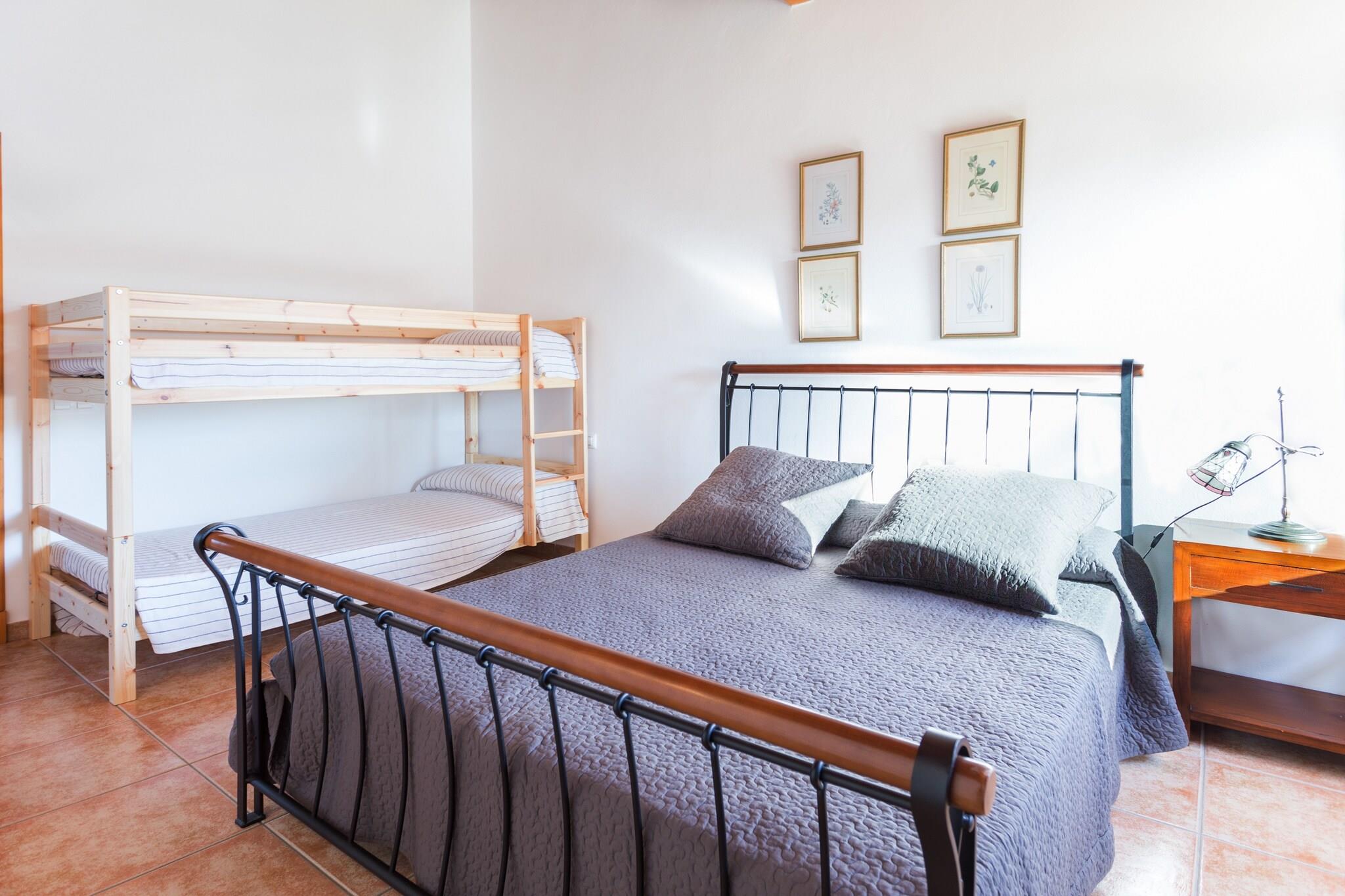 De buitenkant is erg mooi, het heeft grote tuinen, fruitbomen, een omheind chloorzwembad met afmetingen van 12 x 7 m met een diepte variërend van 0,8 tot 2,8 m, zes ligstoelen, twee volledig uitgeruste veranda's en een barbecue. Het rustieke huis van 340 m2 verdeeld over twee verdiepingen heeft vijf kamers, waarvan vier op de 1e verdieping. Drie kamers met twee tweepersoonsbedden en één kamer met een tweepersoonsbed en een stapelbed; De vijfde kamer bevindt zich op de begane grond en heeft een eenpersoonsbed. Er is beschikbaarheid voor een kinderbedje en een kinderstoel. Eén van de slaapkamers heeft een en-suite badkamer met douche en ligbad, tevens zijn er twee badkamers die het gehele huis bedienen, één op de begane grond met douche en één op de 1e verdieping met ligbad. Er zijn twee woonkamers, waarvan één uitgerust met een bank, een fauteuil, een tafeltje, tv en een piano; en een woonkamer-keuken-eetkamer uitgerust met een bank, een kleine tafel, een tafel met stoelen en een open haard; De keuken, in dezelfde ruimte en op gas, beschikt over alle benodigde keukengerei om zonder problemen te kunnen koken. Er is een wasmachine, droger, strijkijzer en strijkplank. Er is centrale verwarming op olie door het hele huis. Son Mesquida ligt op 3 km van Felanitx, waar u allerlei diensten tot uw beschikking vindt. In Felanitx vindt u op zondag een markt waar u lokale en ambachtelijke producten, fruit, groenten, textiel, enz. kunt vinden; en in Santanyi is de markt op zaterdag. In de omgeving kunt u een bezoek brengen aan het Castell de Santueri, Castell de Sant Salvador. Voor golfliefhebbers ligt op slechts 11 km afstand de Golf Vall d'Or. Op een paar kilometer afstand vindt u baaien zoals Cala d'Or, Cala Mondragó, Portopetro, Cala Figuera, Cala Murada en vele andere charmante baaien. Voor eventuele extra kosten kunt u contact opnemen met de adverteerder. Wij accepteren geen huisdieren. Het vieren van evenementen is niet toegestaan. Er is buiten parkeergelegenheid voor 7 auto's. Afstanden Strand: 18 km - S'algar, Portocolom Luchthaven: 43,9 km - Son Sant Joan, Palma Golfbaan: 16,5 km - Vall d'Or Golf, Portocolom Stad: 3,00 km - Felanitx Treinstation: 18,0 km - Manacor Bushalte: 3,5 km - Felanitx Veerboot: 50,4 km - Port d'Alcúdia Ziekenhuis: 19,0 km - Manacor-ziekenhuis Toeristenvergunning: VT/1876Bij de ingang dient u de Ecotasa (toeristenbelasting van de Balearen) contant te betalen. Het bedrag varieert tussen EURO 0,55 / per nacht per persoon in het laagseizoen en EURO 2,2 / per nacht per persoon in het hoogseizoen. Vanaf de negende dag wordt het met de helft verminderd. Personen onder de 16 jaar uitgesloten.