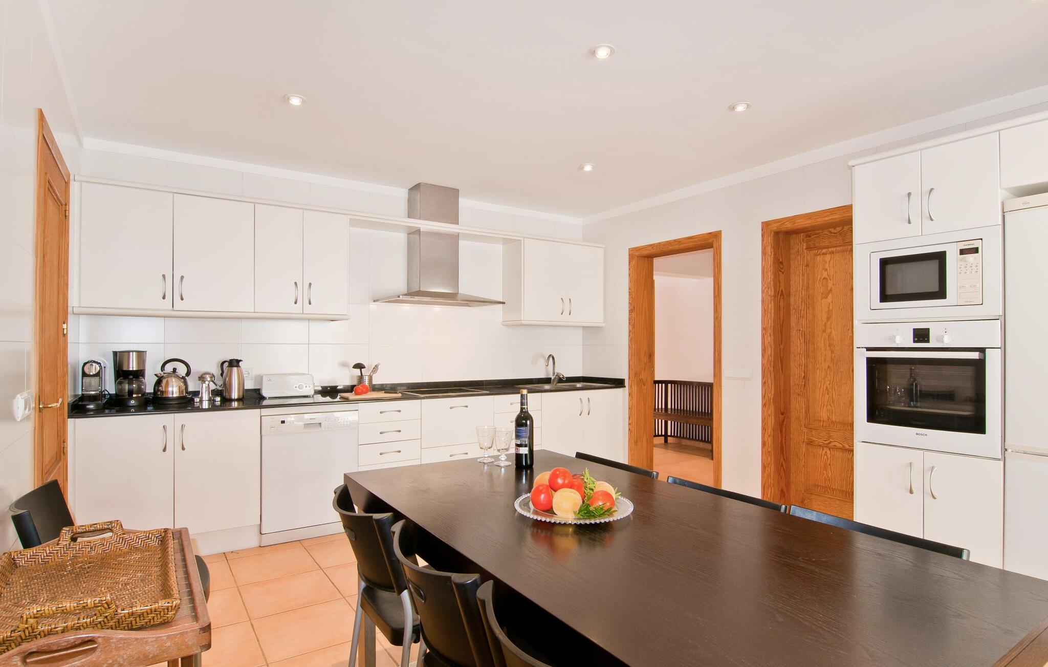 Den fantastiske villa "Son Mito" ligger på en stor 300.000 m² stor grund i en stille skov og tilbyder en betagende havudsigt og en perfekt afsondret ferie. Den sydvendte bolig ligger på en bakke og nyder solskin hele dagen og har to garagepladser. Haven og det indbydende poolområde er forbundet af en rummelig naturstenterrasse med liggestole og skyggefulde parasoller. To store overdækkede terrasser – for og bag – er ideelle til spisning, mens en indbygget grillstation er perfekt til hyggelige aftener. Indenfor har den rummelige stue højt til loftet, synlige bjælker og gulv-til-loft vinduer, der fører ud til terrassen. Det veludstyrede køkken rummer alle jeres behov for selvforplejning og suppleres af en robust spiseplads. Villaen rummer fem rummelige soveværelser (et med en dobbeltseng, der måler 200 cm x 150 cm og fire med enkeltsenge, der måler 90 cm x 200 cm) og fire badeværelser, hvilket sikrer komfort for større grupper. De rolige omgivelser lover afslappende nætter, mens nærliggende landsbyer som Cas Concos og Calonge byder på shopping- og spisemuligheder. Udforsk naturen i Mondragó Nationalpark eller slap af på smukke strande som Cala D'Or, kun 7 km væk. Nyd en uforglemmelig ferie i "Son Mito".