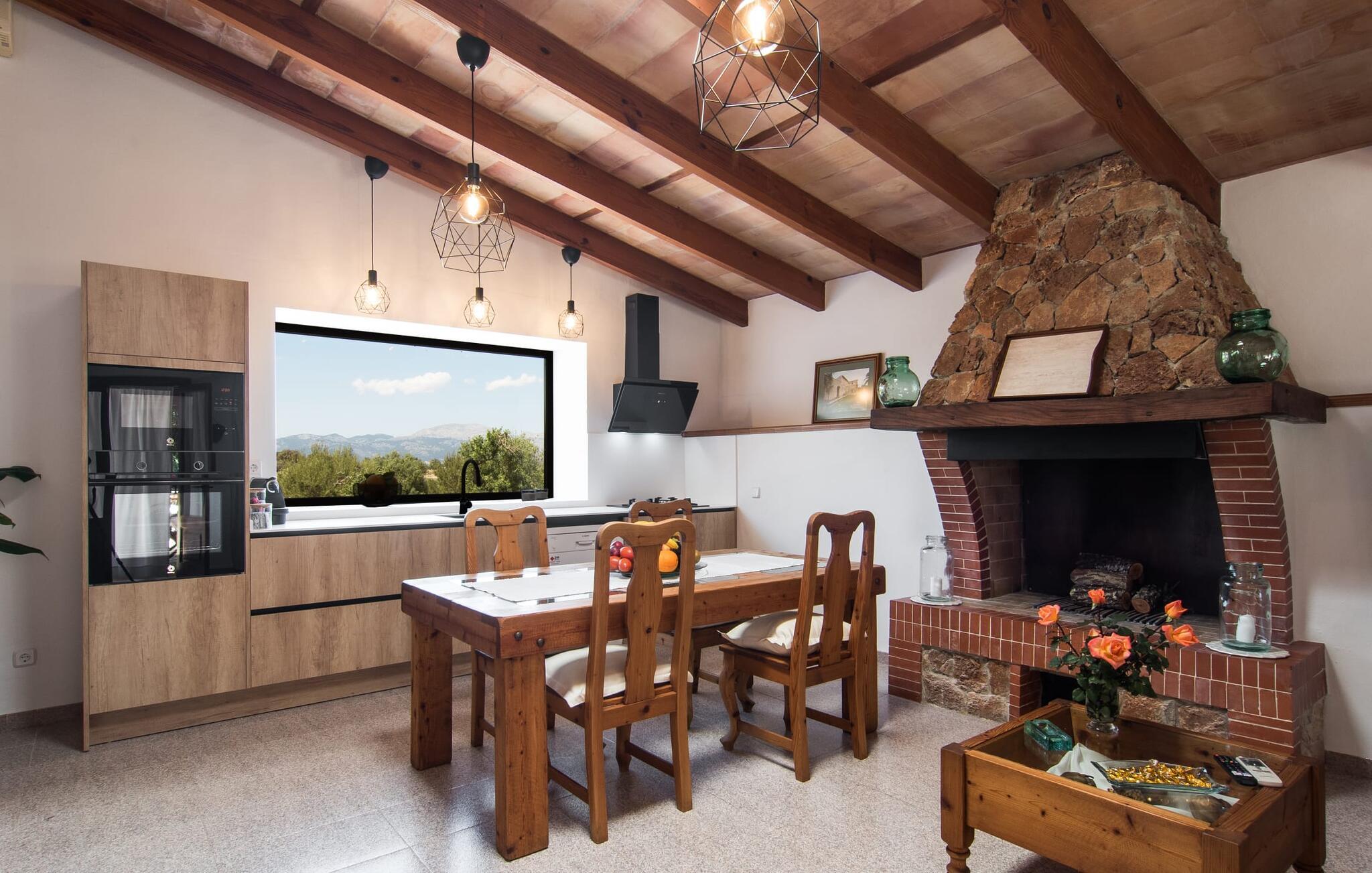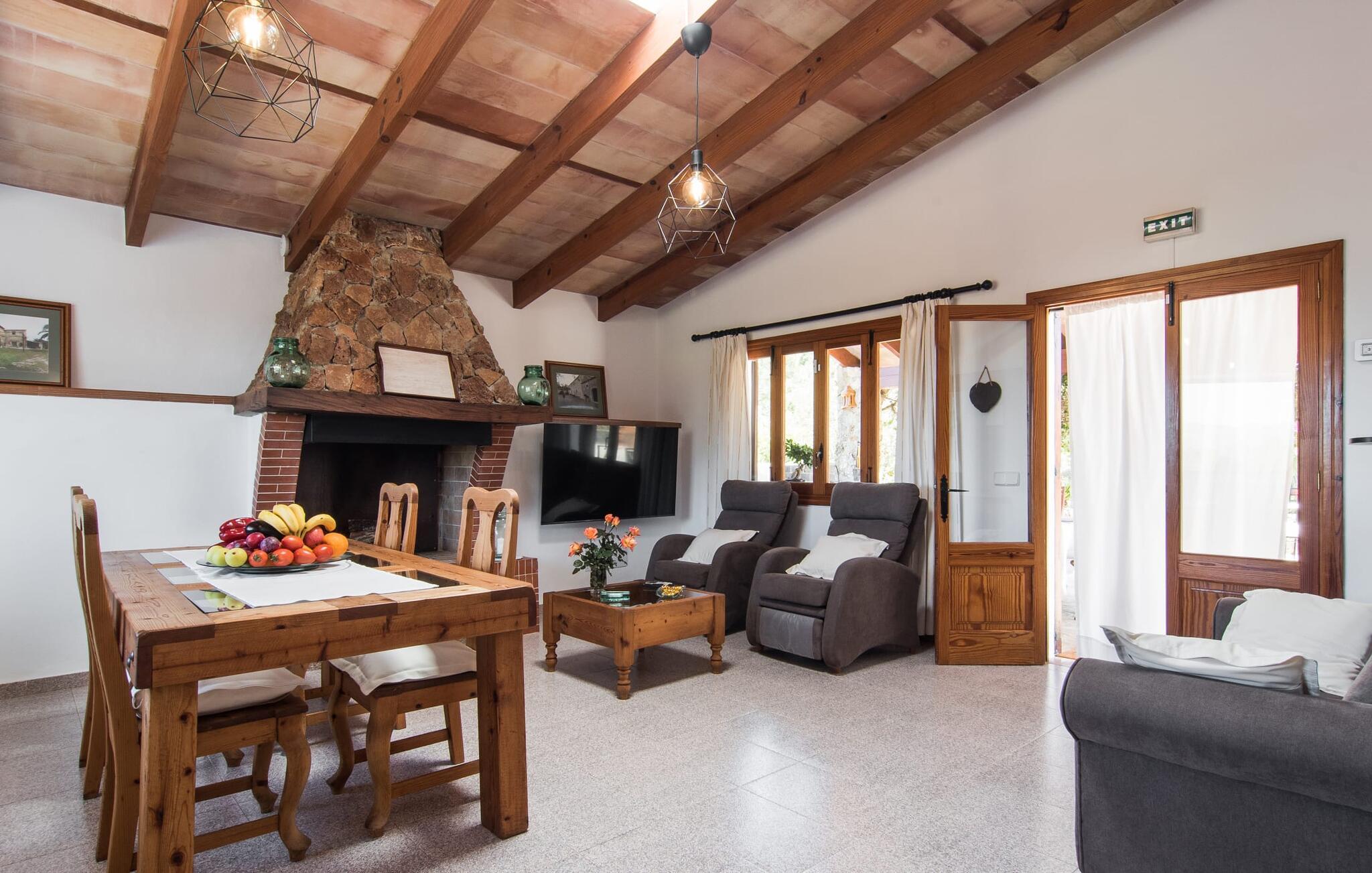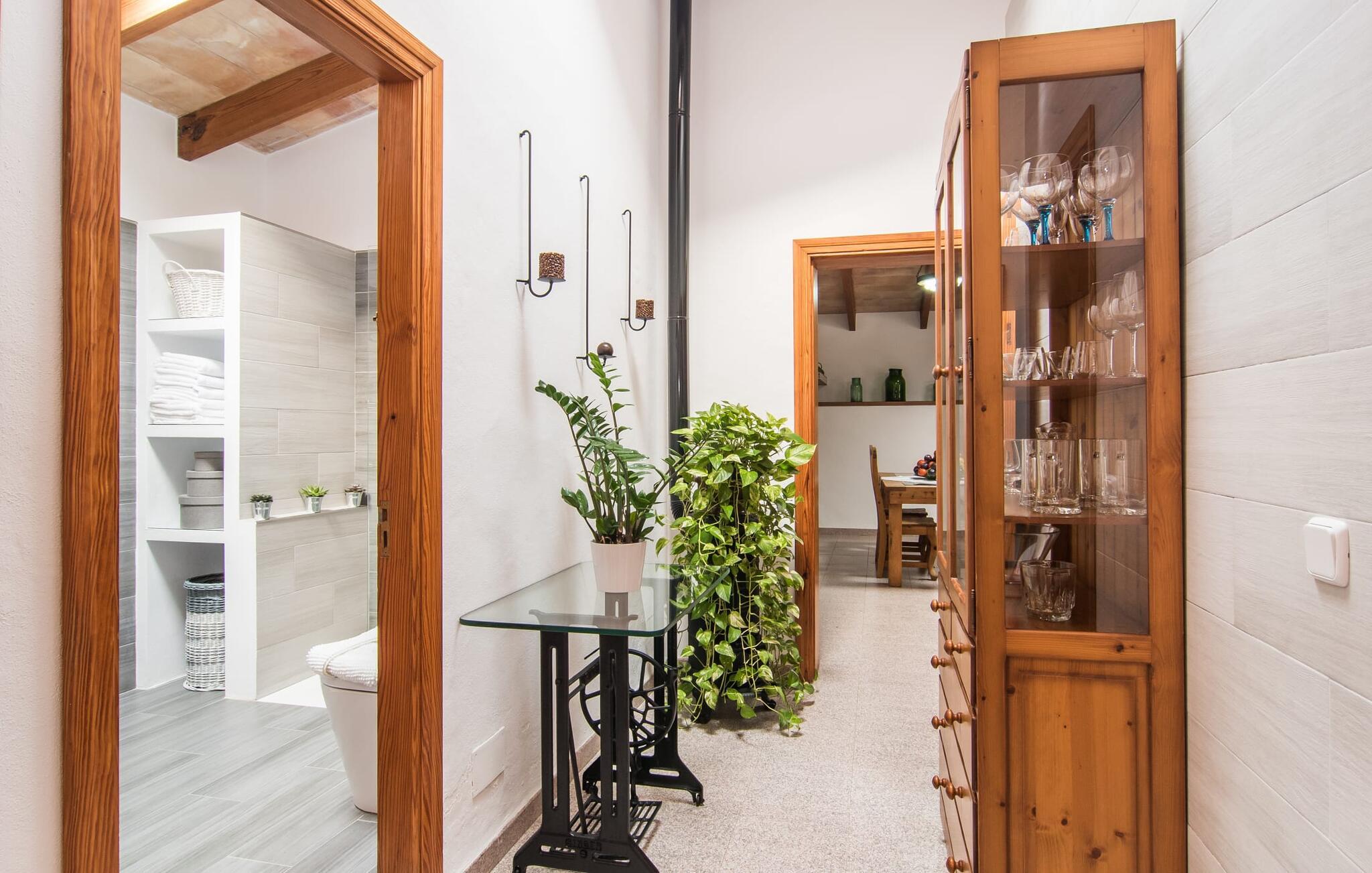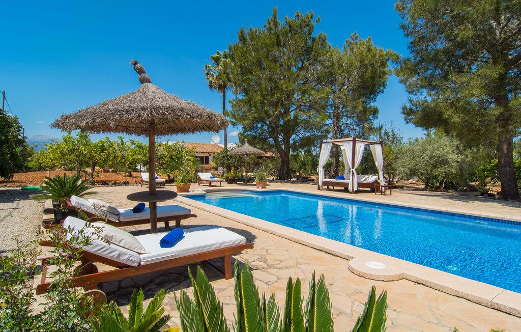 Den landlige villa "Son Mulet de Llubí" er en oase af fred og det ideelle feriested for et forelsket par eller en lille familie. En kærligt designet have med stor sans for detaljer venter jer ved huset. Terracotta spande fyldt med planter, gamle vognhjul lænet op ad stammerne af høje fyrretræer, en rusten grøn cykel og mere giver et smukt helhedsbillede, som tilfældigt. Mens de gamle træer giver masser af skygge, inviterer naturstensterrassen omkring den store pool til solbadning. I kan forkæle jeres hud med lidt afslapning under halmparaplyer eller på den balinesiske seng. Der er et dejligt opholdsområde med komfortable stole på den overdækkede terrasse ved huset. Det perfekte sted at nyde måltider tilberedt på den nærliggende murstensgrill. Den overdækkede terrasse fører ind til villaens indre. Huset er hyggeligt og rustikt og er indrettet med en masse kærlighed. Et åbent opholds- og spiseområde byder på plads nok til alle besøgende med en smuk sofa og tv-hjørne, en stor pejs til de kolde dage og et spisebord. Villaens køkken er lille, men pænt og er ligeledes integreret i dette rum. Lyse vægge og gulvfliser kombineret med de varme farver i træmøblerne og loftsbjælkerne giver hele rummet en hyggelig atmosfære. En lille gang fører til de to soveværelser og badeværelset. I det første soveværelse sørger to senge på 0,90 x 1,90 for en afslappende søvn, i det andet soveværelse er der en stor dobbeltseng på 1,60 x 1,90 m. Begge værelser er indrettet med kærlige detaljer og har hver et stort klædeskab og en kommode skuffer med god plads til jeres feriegarderobe. Det lyse badeværelse med bruseniche fra gulv til loft er moderne og funktionelt. Llubí er en lille, søvnig landsby på den nordlige fod af den store ø-sletten Es Pla. Byen er kendt for sine lækre kapers, som dyrkes på de omkringliggende marker. Disse kan naturligvis også købes på det ugentlige marked på Placa de la Carretera. Hvis I foretrækker noget lidt mere travlt, kan I nå øens mest berømte bondemarked i Sineu på blot et kvarter. Det tager omtrent samme tid at komme til Inca, Eldorado for sko og læder. Herfra kan I også hurtigt nå øens hovedstad Palma via MA-13 ????motorvejen til en obligatorisk dagstur. I den store bugt Alcúdia, også kun 20 minutter væk i bil, er der ingen grænser for fornøjelsen ved at svømme i havet på de kilometerlange sandstrande. Ser du, villaen "Son Mulet de Llubí" er både en oase af fred og et perfekt tilflugtssted og et godt udgangspunkt for begivenhedsrig ø-udforskning. I den nordlige del af Mallorca, i trekanten mellem Inca, Sineu og Muro, ligger denne perle af en villa, "Son Mulet de Llubí", i en absolut rolig beliggenhed. Den drømmende by Llubí, bygget på to bakker og kendt for de bedste kapers på øen, ligger kun 5 km fra villaen. Små indkøbsture kan gennemføres hver tirsdag på det ugentlige marked på Plaça de la Carretera. For større shoppingture er butikkerne i Inca eller Sa Pobla kun 15 minutter væk. De smukke strande i Alcúdia-bugten er ikke meget længere væk.