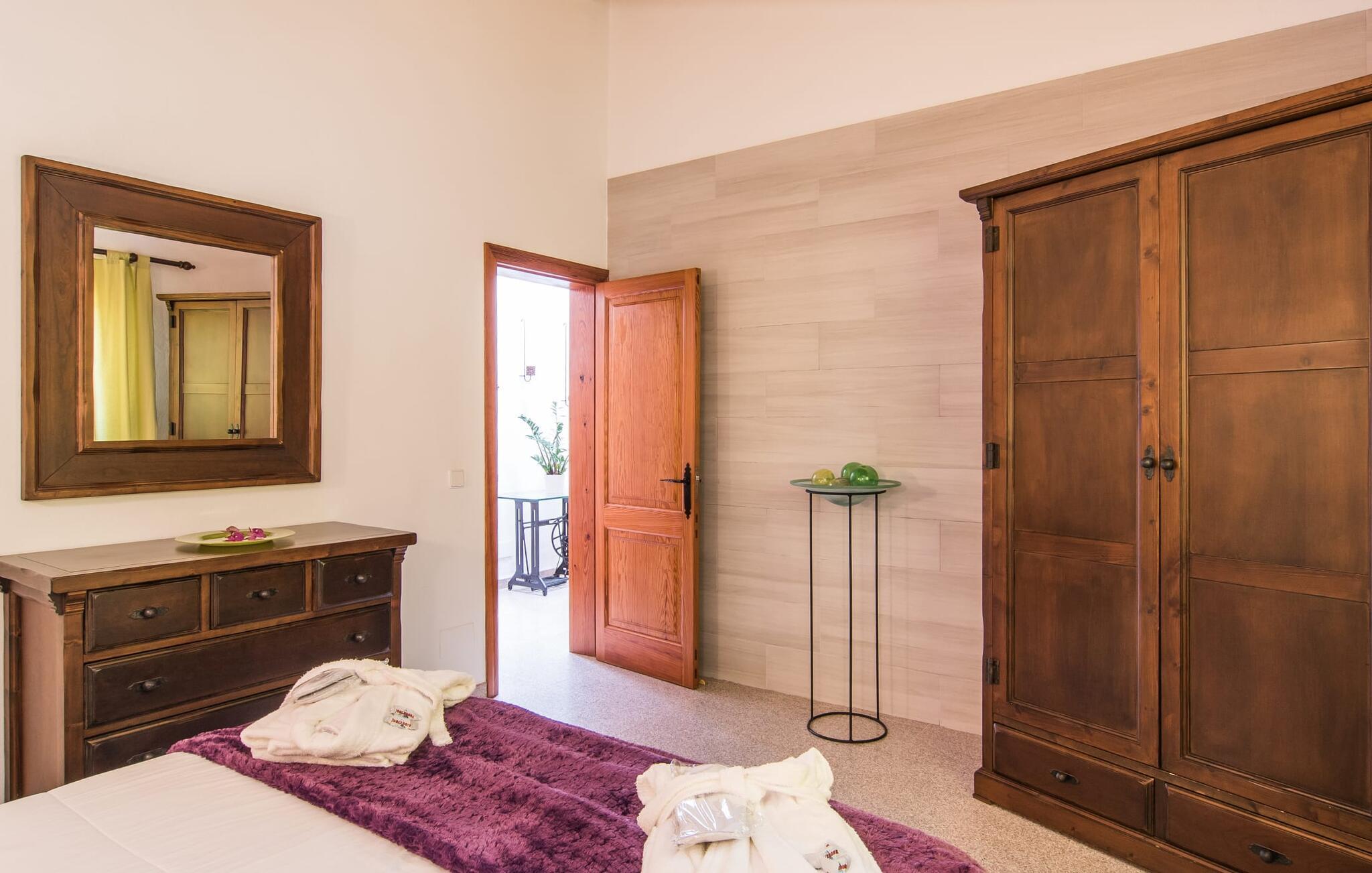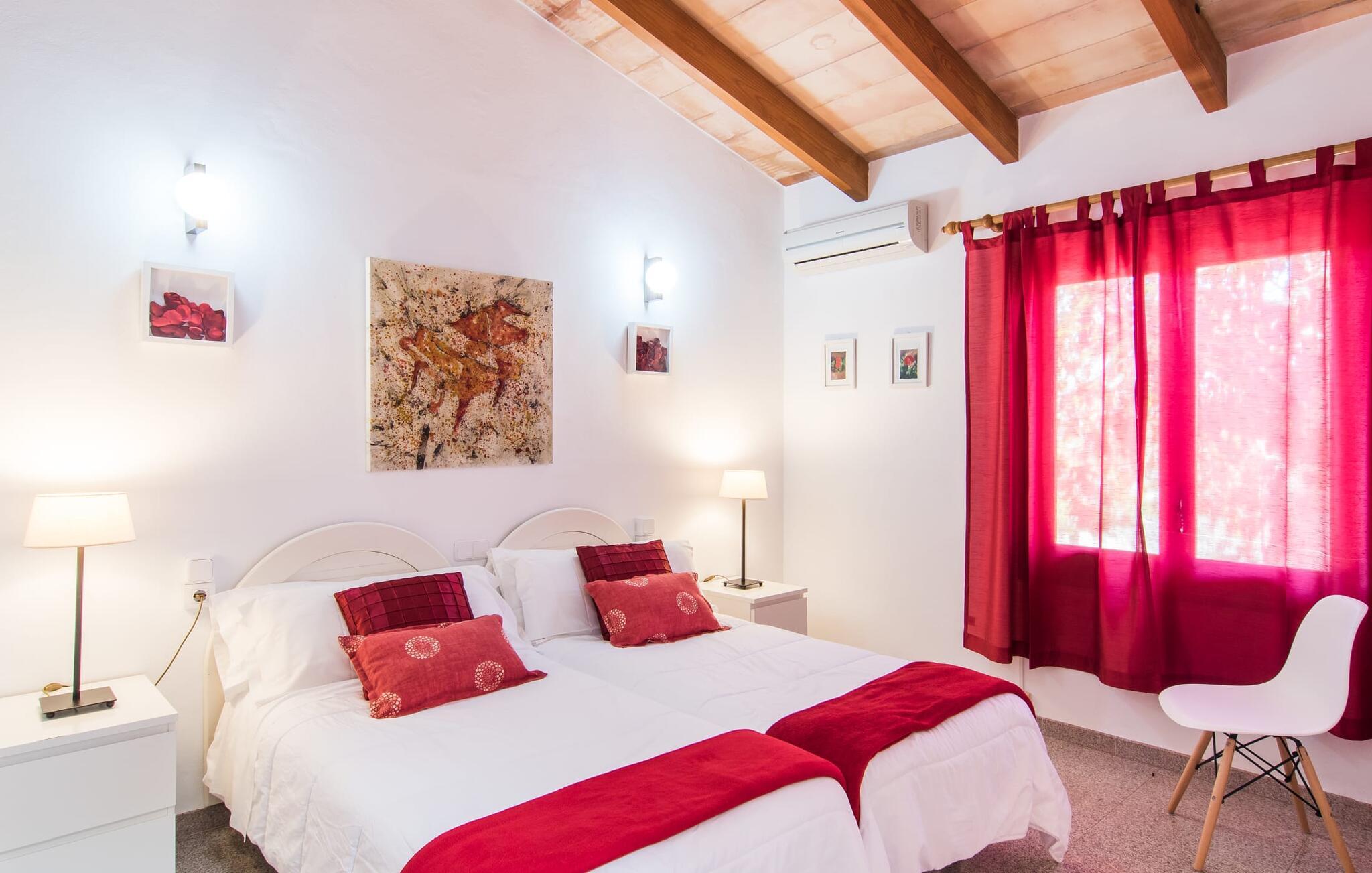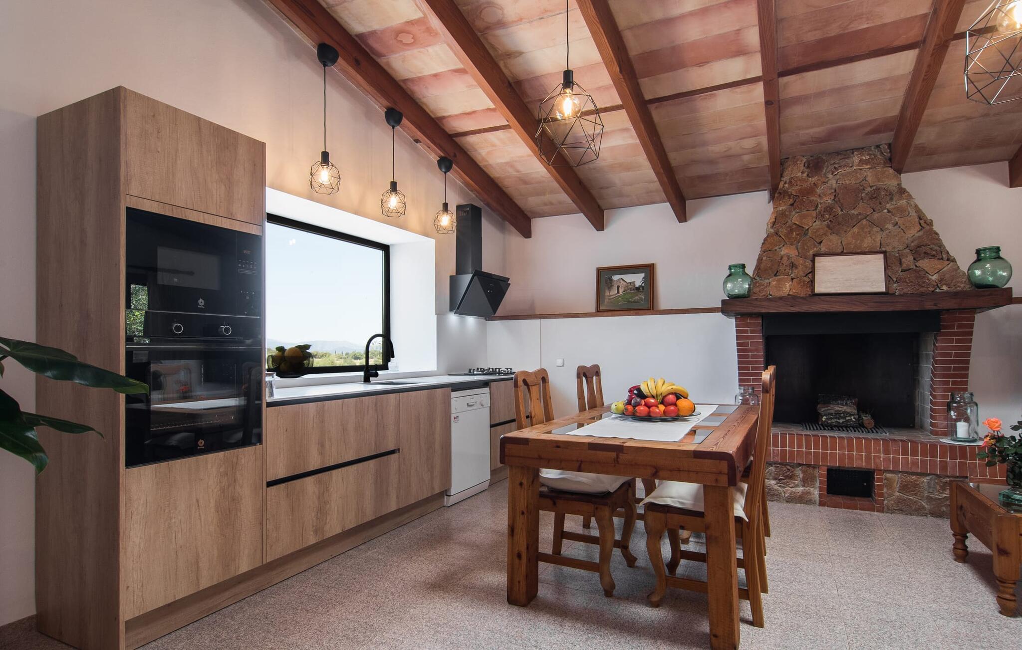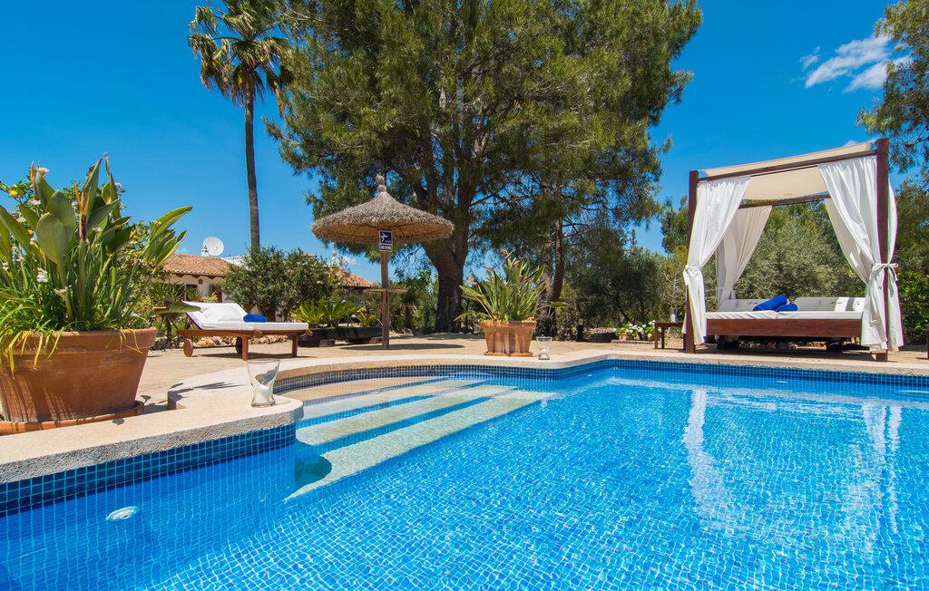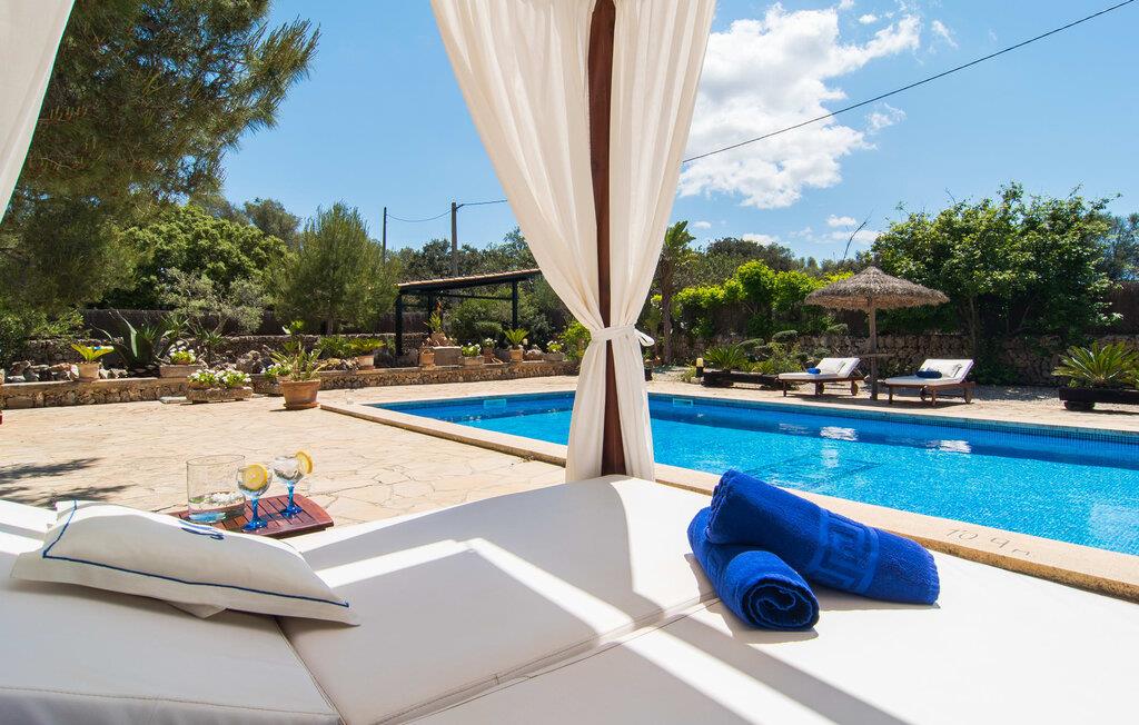 Den landlige villa "Son Mulet de Llubí" er en oase af fred og det ideelle feriested for et forelsket par eller en lille familie. En kærligt designet have med stor sans for detaljer venter jer ved huset. Terracotta spande fyldt med planter, gamle vognhjul lænet op ad stammerne af høje fyrretræer, en rusten grøn cykel og mere giver et smukt helhedsbillede, som tilfældigt. Mens de gamle træer giver masser af skygge, inviterer naturstensterrassen omkring den store pool til solbadning. I kan forkæle jeres hud med lidt afslapning under halmparaplyer eller på den balinesiske seng. Der er et dejligt opholdsområde med komfortable stole på den overdækkede terrasse ved huset. Det perfekte sted at nyde måltider tilberedt på den nærliggende murstensgrill. Den overdækkede terrasse fører ind til villaens indre. Huset er hyggeligt og rustikt og er indrettet med en masse kærlighed. Et åbent opholds- og spiseområde byder på plads nok til alle besøgende med en smuk sofa og tv-hjørne, en stor pejs til de kolde dage og et spisebord. Villaens køkken er lille, men pænt og er ligeledes integreret i dette rum. Lyse vægge og gulvfliser kombineret med de varme farver i træmøblerne og loftsbjælkerne giver hele rummet en hyggelig atmosfære. En lille gang fører til de to soveværelser og badeværelset. I det første soveværelse sørger to senge på 0,90 x 1,90 for en afslappende søvn, i det andet soveværelse er der en stor dobbeltseng på 1,60 x 1,90 m. Begge værelser er indrettet med kærlige detaljer og har hver et stort klædeskab og en kommode skuffer med god plads til jeres feriegarderobe. Det lyse badeværelse med bruseniche fra gulv til loft er moderne og funktionelt. Llubí er en lille, søvnig landsby på den nordlige fod af den store ø-sletten Es Pla. Byen er kendt for sine lækre kapers, som dyrkes på de omkringliggende marker. Disse kan naturligvis også købes på det ugentlige marked på Placa de la Carretera. Hvis I foretrækker noget lidt mere travlt, kan I nå øens mest berømte bondemarked i Sineu på blot et kvarter. Det tager omtrent samme tid at komme til Inca, Eldorado for sko og læder. Herfra kan I også hurtigt nå øens hovedstad Palma via MA-13 ????motorvejen til en obligatorisk dagstur. I den store bugt Alcúdia, også kun 20 minutter væk i bil, er der ingen grænser for fornøjelsen ved at svømme i havet på de kilometerlange sandstrande. Ser du, villaen "Son Mulet de Llubí" er både en oase af fred og et perfekt tilflugtssted og et godt udgangspunkt for begivenhedsrig ø-udforskning. I den nordlige del af Mallorca, i trekanten mellem Inca, Sineu og Muro, ligger denne perle af en villa, "Son Mulet de Llubí", i en absolut rolig beliggenhed. Den drømmende by Llubí, bygget på to bakker og kendt for de bedste kapers på øen, ligger kun 5 km fra villaen. Små indkøbsture kan gennemføres hver tirsdag på det ugentlige marked på Plaça de la Carretera. For større shoppingture er butikkerne i Inca eller Sa Pobla kun 15 minutter væk. De smukke strande i Alcúdia-bugten er ikke meget længere væk.