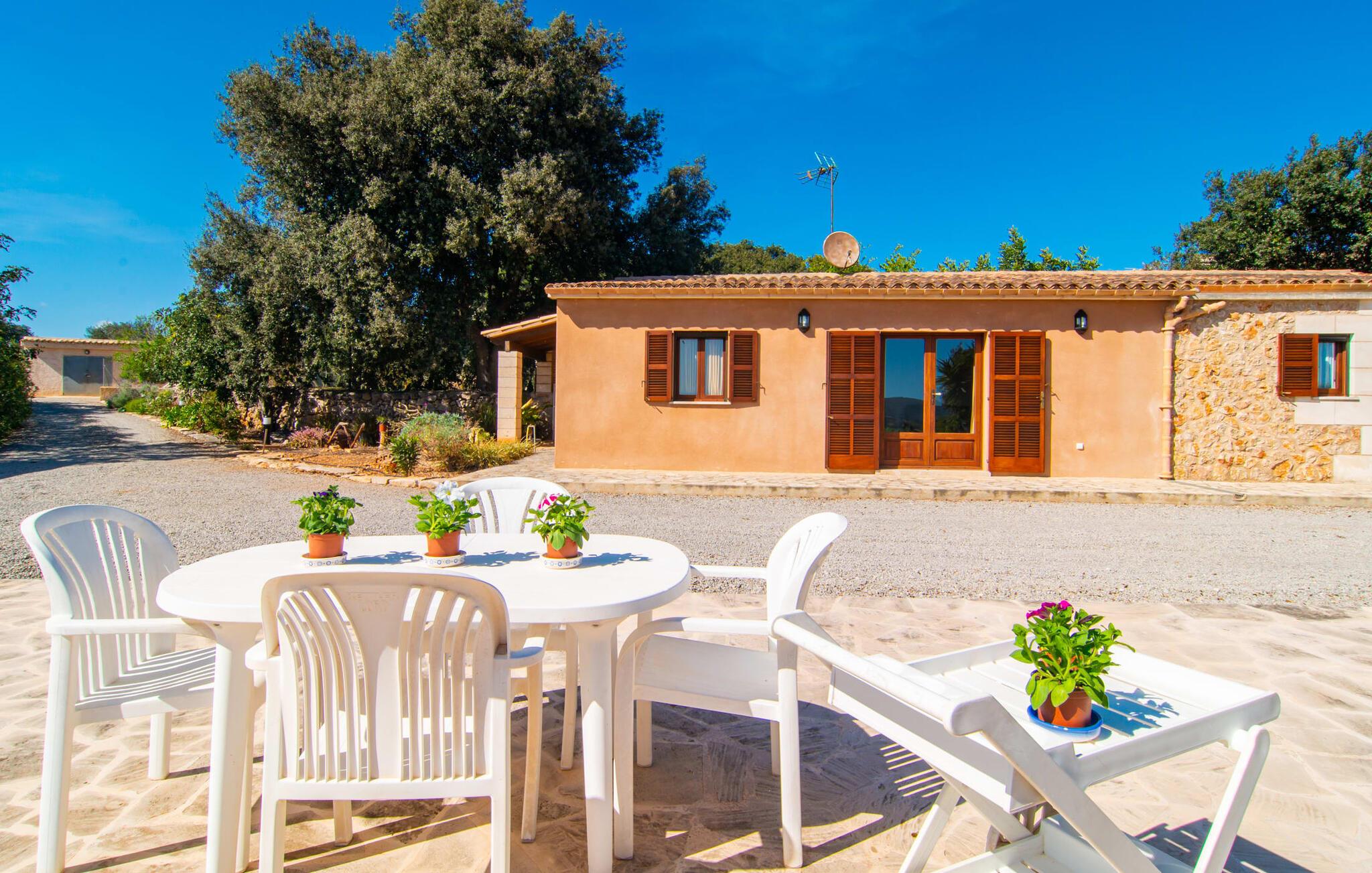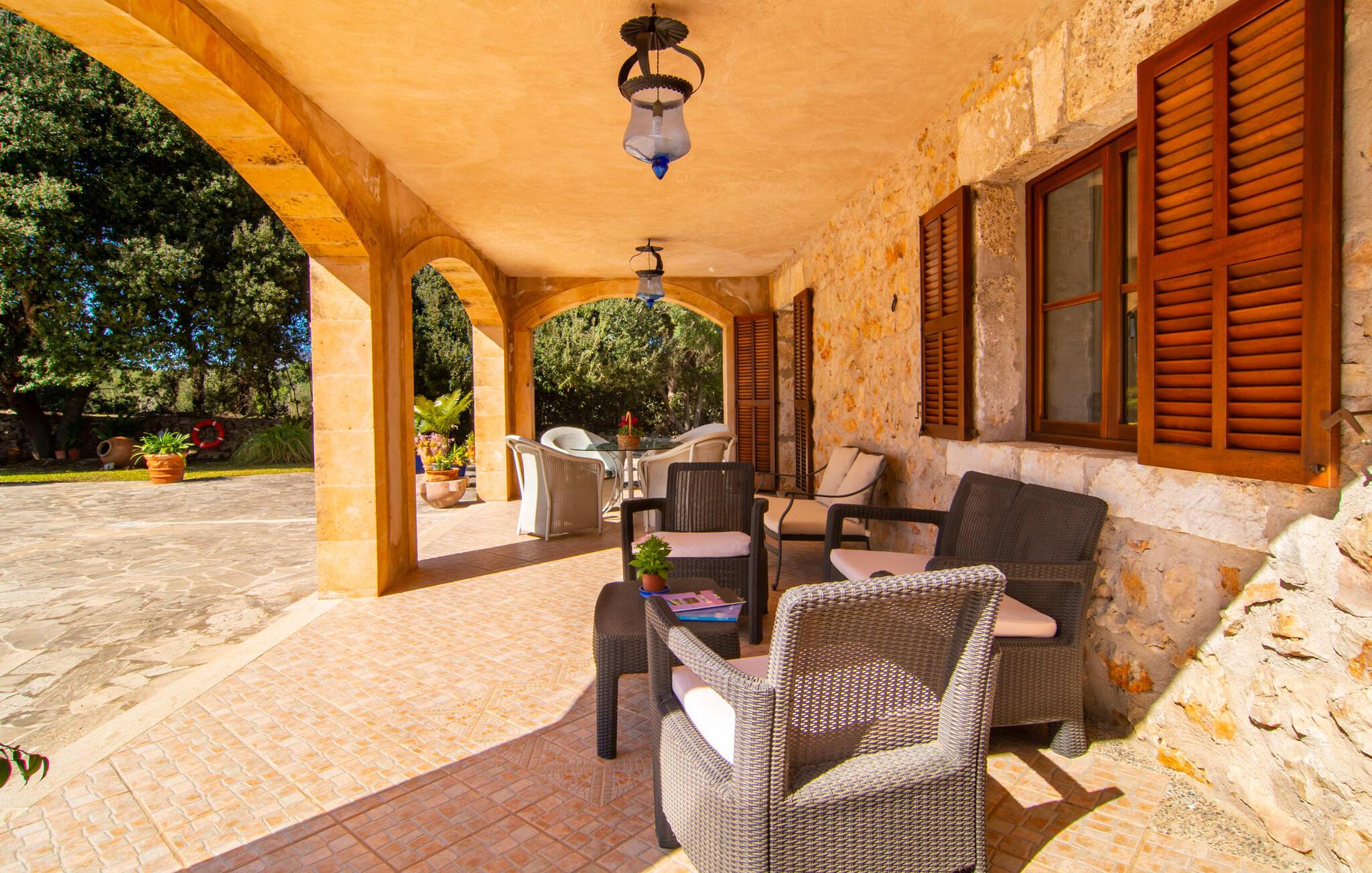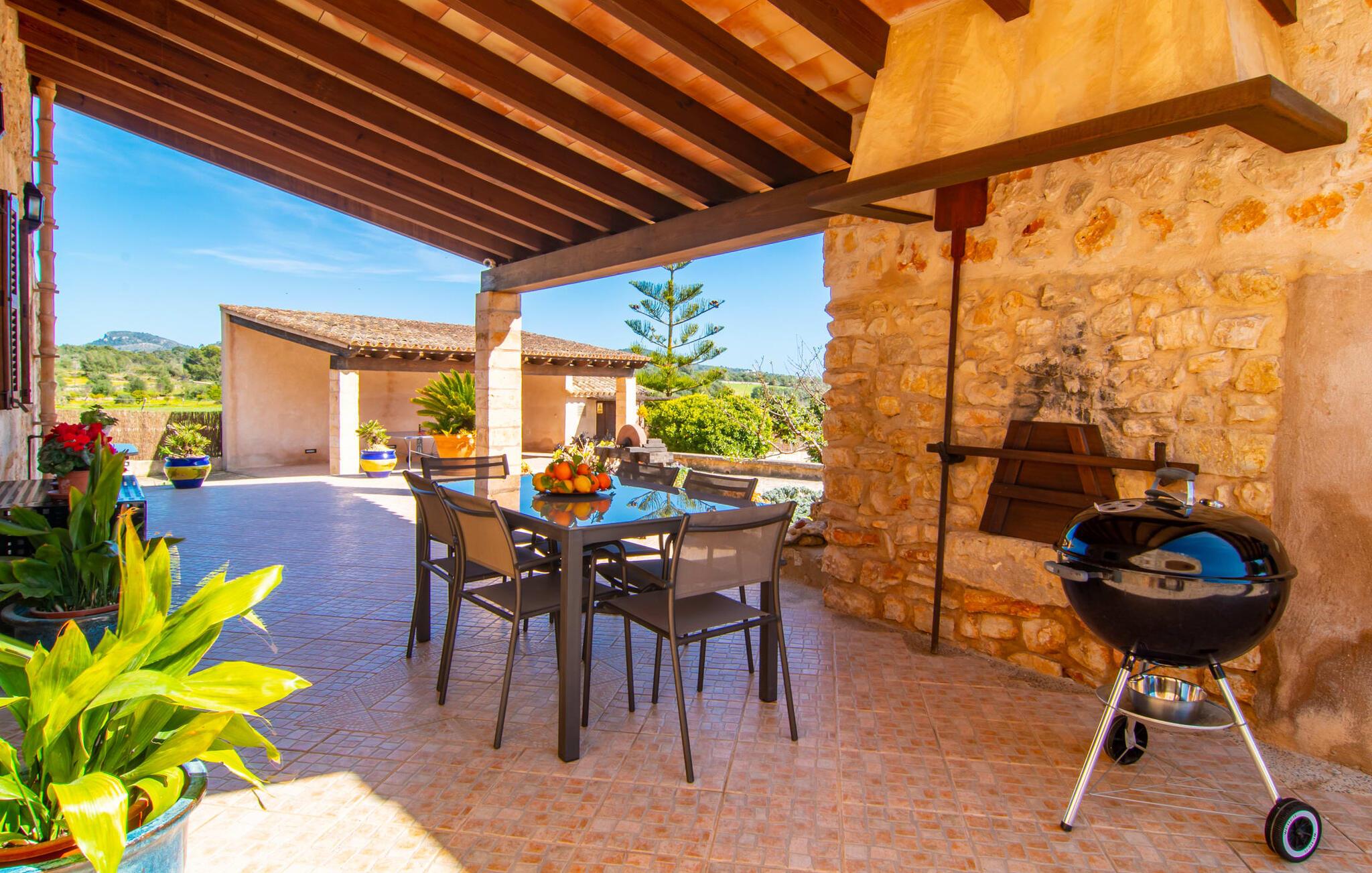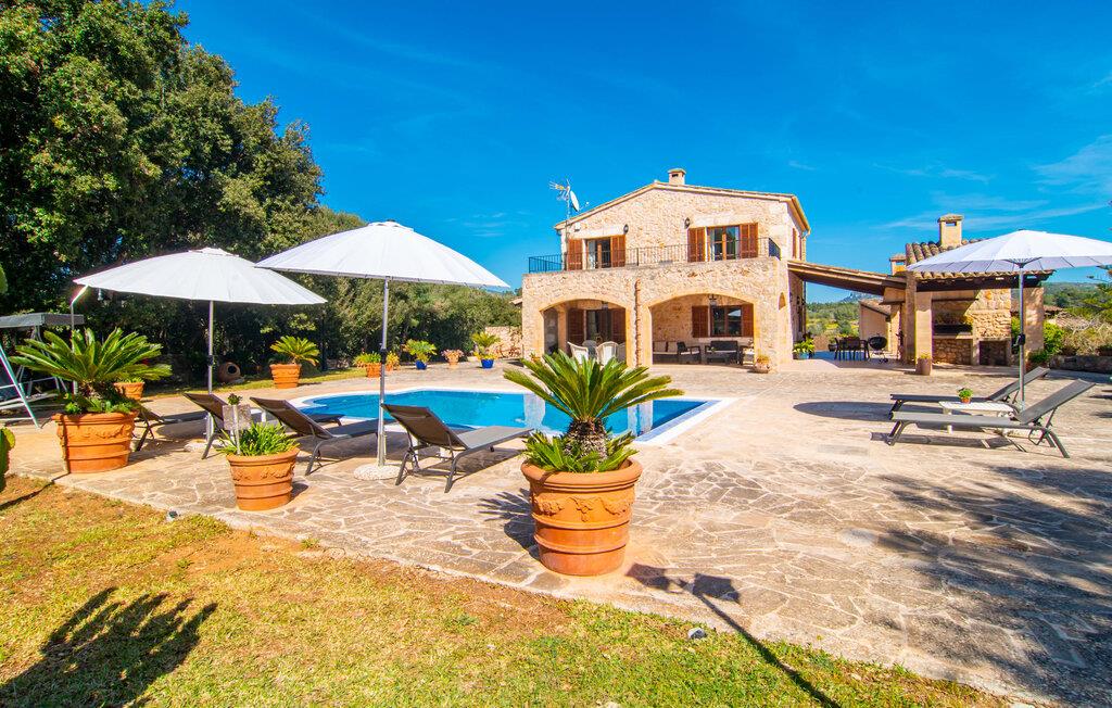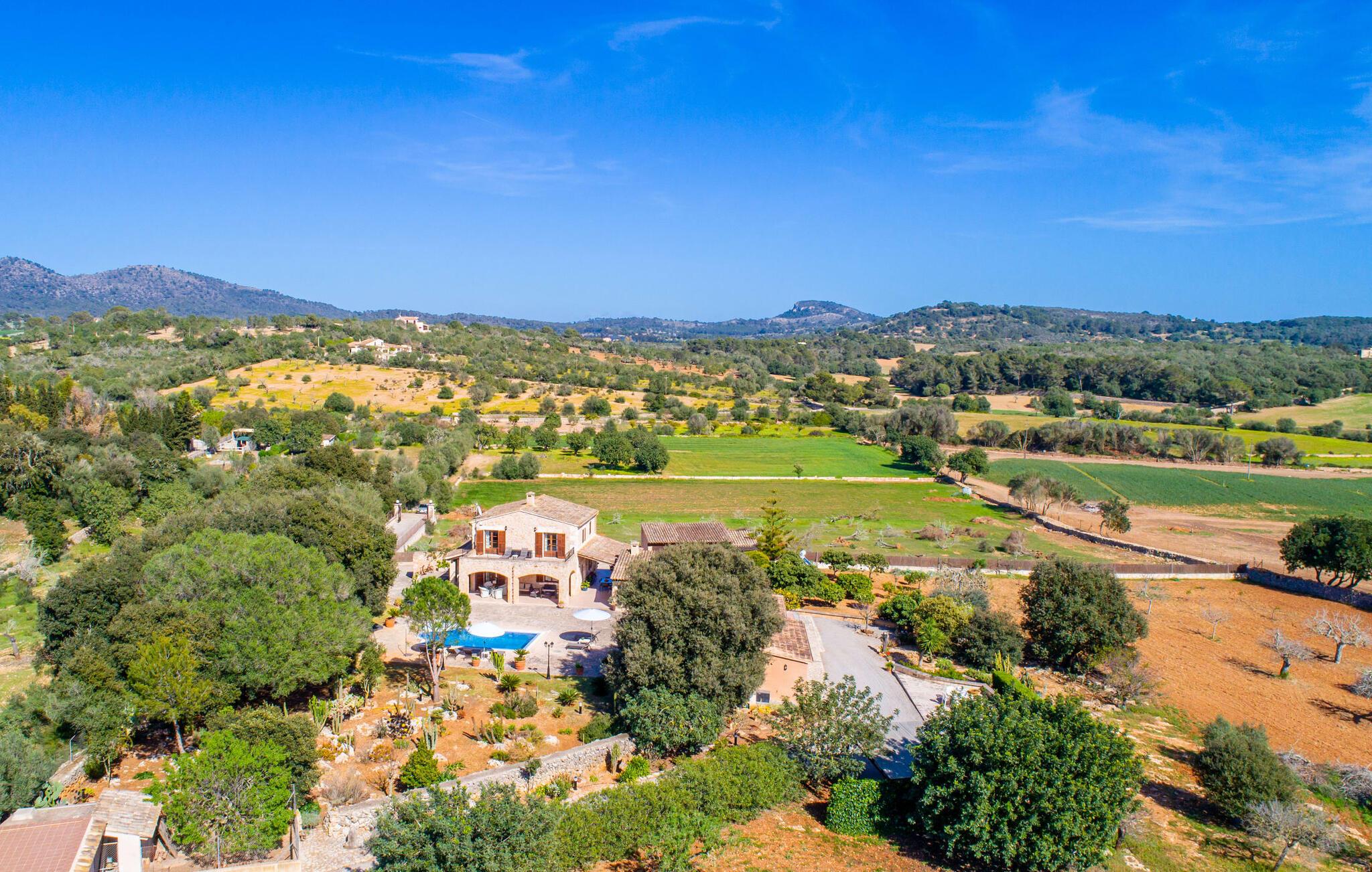 Kunne I tænke jer at fordybe jer i fuldstændig fred, slukke og nyde freden og roen? Hvis I leder efter alle faciliteterne til en velholdt ferie i en finca på Mallorca, så er "Son Paparra" lige noget for jer. Beliggende mellem maleriske bakker og marker, er denne naturstensbygning omgivet af smukke træer, hvilket skaber en indbydende og hyggelig atmosfære. Det store terrasseområde omkring poolen byder på mange åbne og overdækkede steder at slappe af. En ferie på en finca på Mallorca indeholder naturligvis også hyggelige grillaftener, og de overdækkede terrassearealer omkring huset er perfekte til dette. Indvendigt fortsætter fincaen med at imponere med sit komfortable layout. Med 240 m² boligareal giver det plads nok til op til seks gæster, der ønsker at tilbringe deres ferie sammen. Et af de tre stilfulde dobbeltværelser er placeret i et separat sommerhus og tilbyder komplet privatliv med eget badeværelse og stue/spisestue - ideel til at ledsage bedsteforældre eller et par med en baby. I hovedhuset, fordelt på to etager, finder I en indbydende stue og en rummelig spiseplads. På øverste etage er der to soveværelser med hvert sit badeværelse og en skøn altan med vid udsigt. Dette er det perfekte tilflugtssted for jeres ferie på Mallorca. Den roligt beliggende Mallorca finca "Son Paparra" er kun omkring 6 minutter i bil fra Sant Llorenc. Der vil I finde et bageri, et supermarked, et apotek og restauranter. De nærmeste strande kan nås efter ca. 10 km.