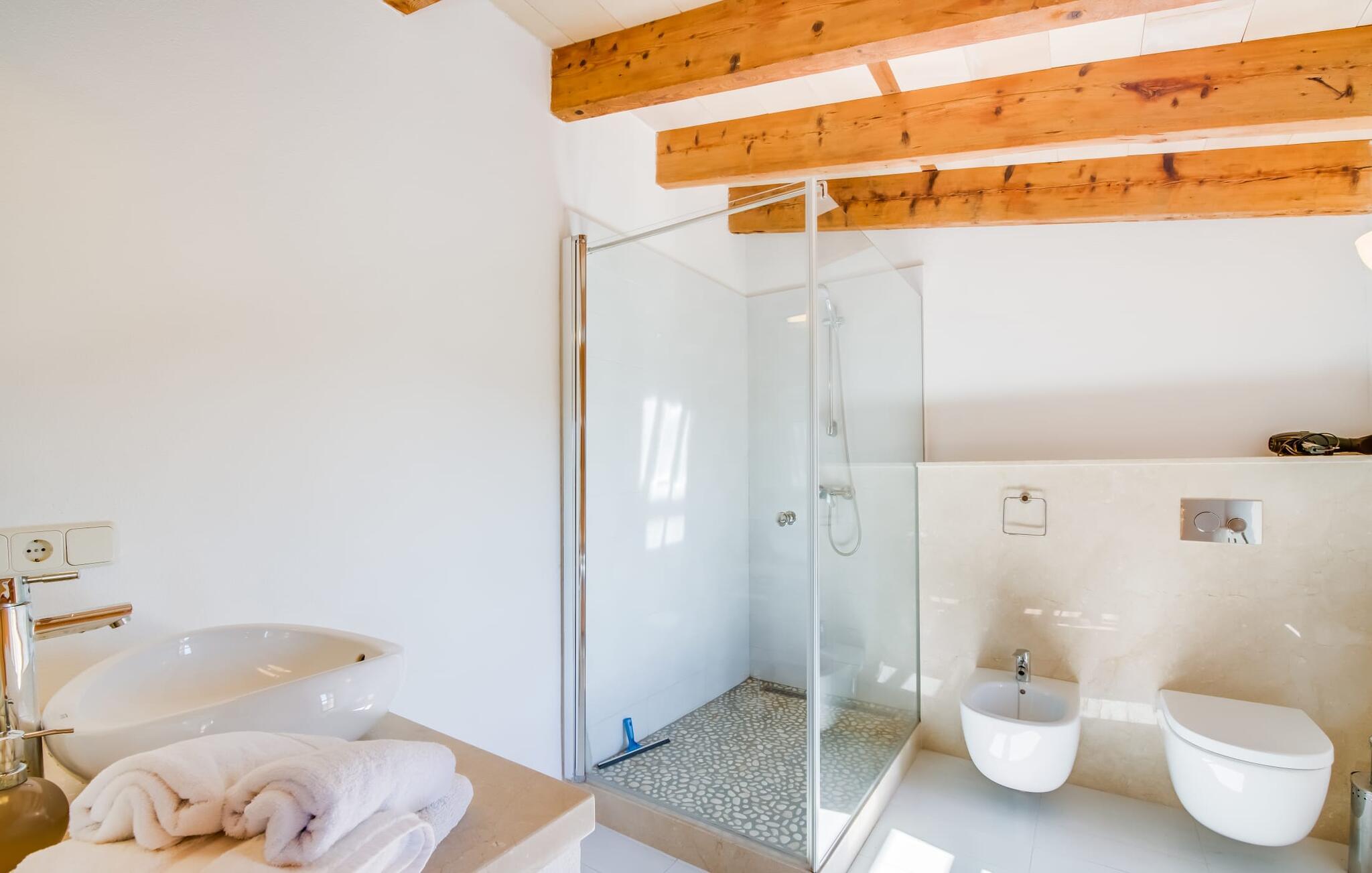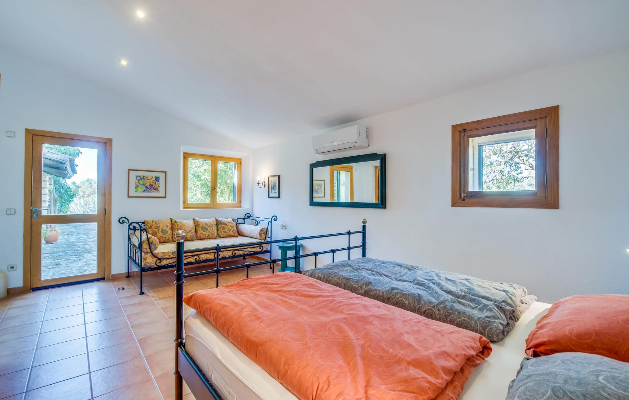 Citrontræer, palmer, kaktusser - "Son Pi" er omgivet af en vidunderligt fortryllende have, der næsten ikke kunne være mere naturlig og rustik. Ejendommen har ikke kun smukke planter, det omkringliggende område er også præget af frodig vegetation. Dette rundes af af det ru stengulv, som passer så vidunderligt ind i billedet, og selvfølgelig af selve villaen, der emmer af ren ro med sine grønne skodder. I kan finde siddepladser i delvis skygge af den tilgroede pergola, på komfortable rattanmøbler eller på den overdækkede terrasse foran huset. Hvis I ønsker det, kan I varme murstensgrillen op eller forkæle jer selv med en forfriskende svømmetur i den højkvalitets flisebelagte, velholdte pool - I kommer nemt ind via få trin. Der er også en udendørs bruser lige ved siden af poolen. Liggestole, mobile parasoller, masser af privatliv - I har alt hvad I behøver til en afslappende dag under den behagelige ø-sol. Praktisk for jeres ankomst: En asfalteret vej fører direkte til villaen og tilbyder plads til parkering. Interiøret er ikke mindre charmerende. Fuldstændig nyrenoveret, oprindeligt indrettet med stor sans for detaljer. Alt I skal gøre er at pakke jeres kufferter ud, og I vil føle jer afslappet. Masser af naturlige elementer, masser af træbjælker og stenvægge, plus varme farver og masser af naturligt lys. Den hyggelige stue/spisestue imponerer med sin smukke siddegruppe og store bord, men har også en pejs, der varmer jeres fødder på køligere aftener. Fra den anden ende af rummet kommer I ind i køkkenet, som er udstyret med mange praktiske faciliteter. Så smukt: den separate spisestue med en stor glasvæg og udsigt til haven. Et godt sted at afslutte dagen om aftenen med et knitrende bål. "Son Pi" har i alt tre dobbeltværelser, hvoraf to er ovenpå og har eget badeværelse og udsigt til havet i det fjerne. Alle værelser er venlige og komfortabelt indrettede, så intet står i vejen for en god nats søvn. Den østlige del af øen er præget af bølgende bakker, grøn vegetation og landlige vidder. Udover skøn fred og smukke gåture kan I også nyde nærheden til mange interessante byer og drømmestrande. Porto Cristo, den lille havn og fiskerlandsby med sit hvide sand og smukke strandpromenade, ligger 20 minutter væk i bil. "Son Pi" ligger på en lille gade, hvilket betyder, at der kan høres en del trafikstøj afhængig af vindretningen. Det positive er dog den næsten perfekte forbindelse til motorvej MA-15 og alle retninger på øen. Aktive rejsende vil måske tage til Pula Golfbane eller besøge en af de mange grotter i denne region, som bestemt er et besøg værd. Den charmerende villa "Son Pi" ligger i den smukke østlige del af øen, lige uden for Sant Llorenç des Cardassar. Udover gode restauranter og små butikker, finder I også nogle supermarkeder i byen til jeres ugentlige indkøb. Frisk frugt og grønt kan købes på det ugentlige marked i Son Servera, som kun ligger et kvarter væk i bil. Fantastisk: de smukke strande i Porto Cristo og Sa Coma er også kun 13 km væk.