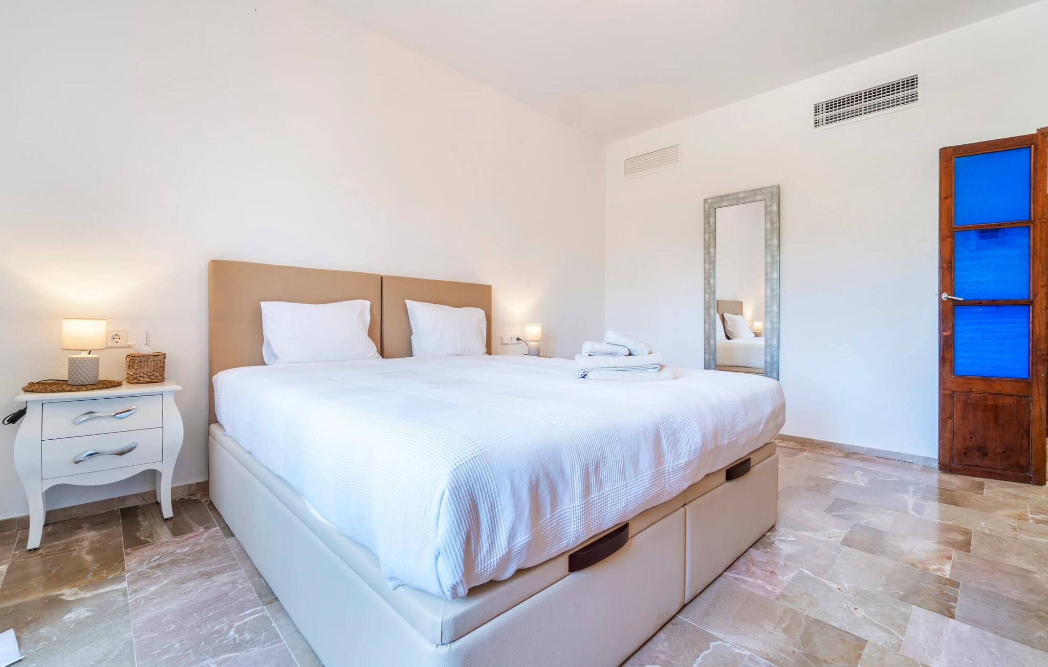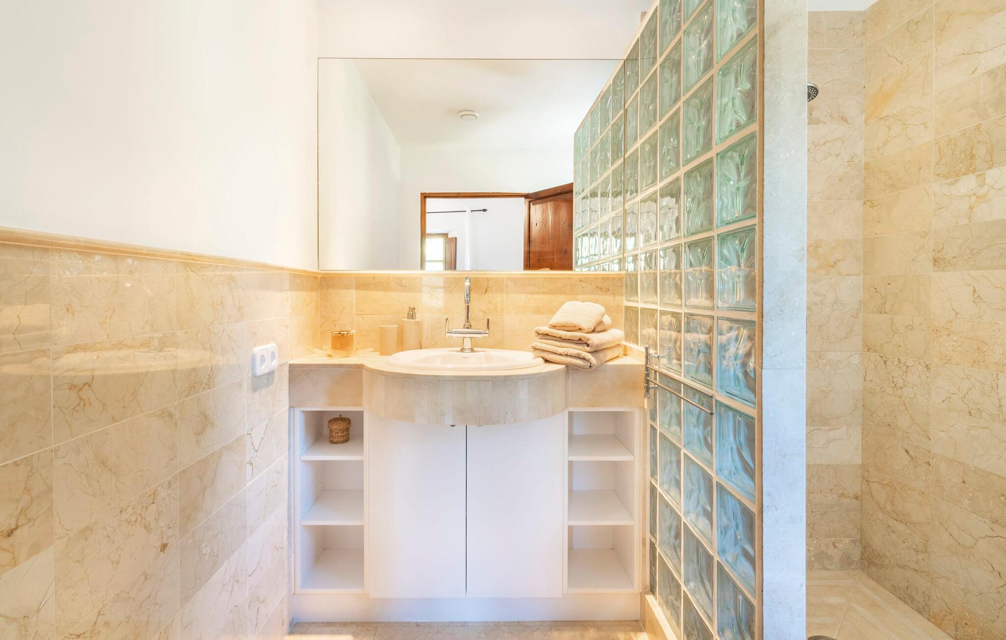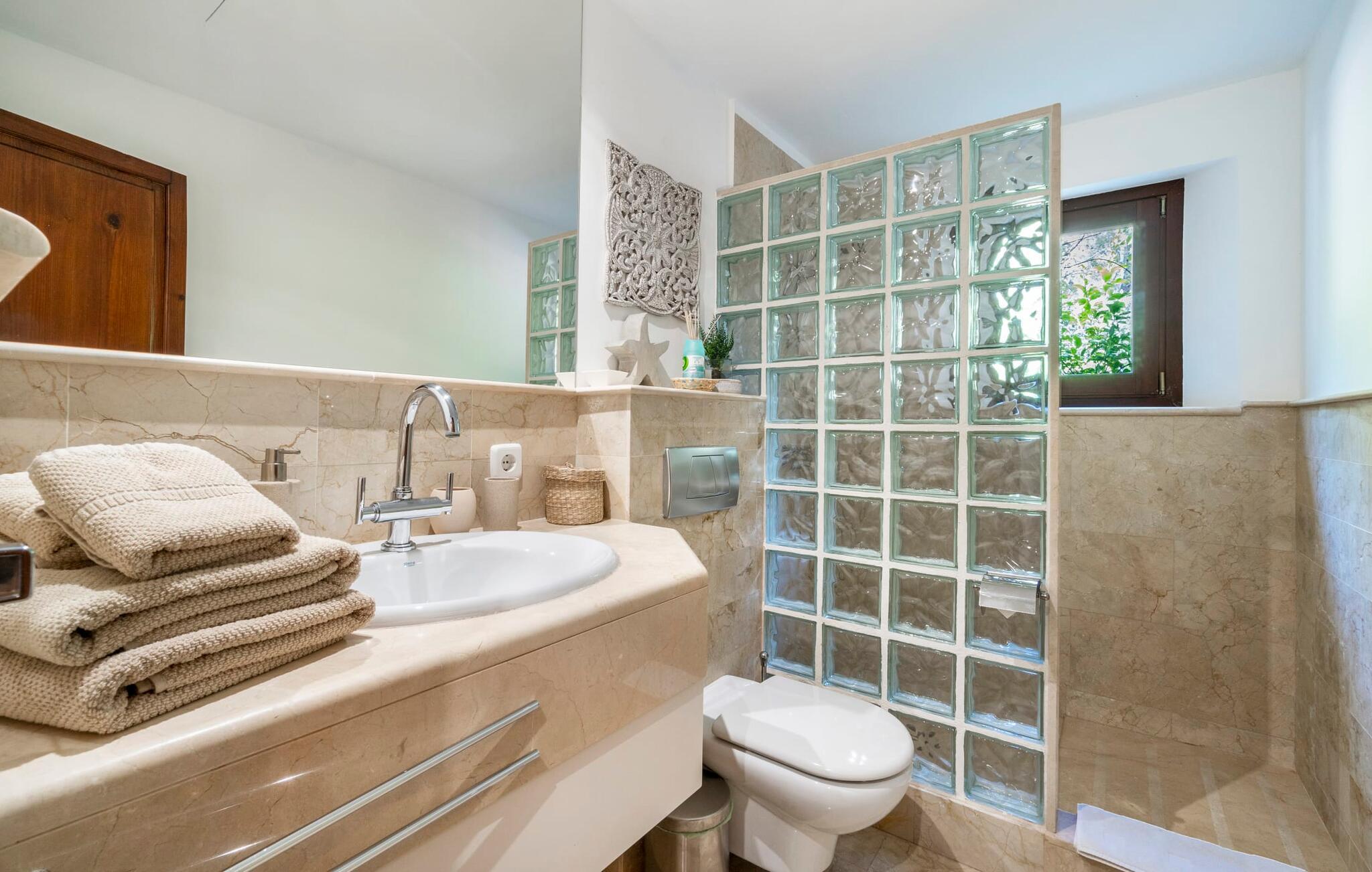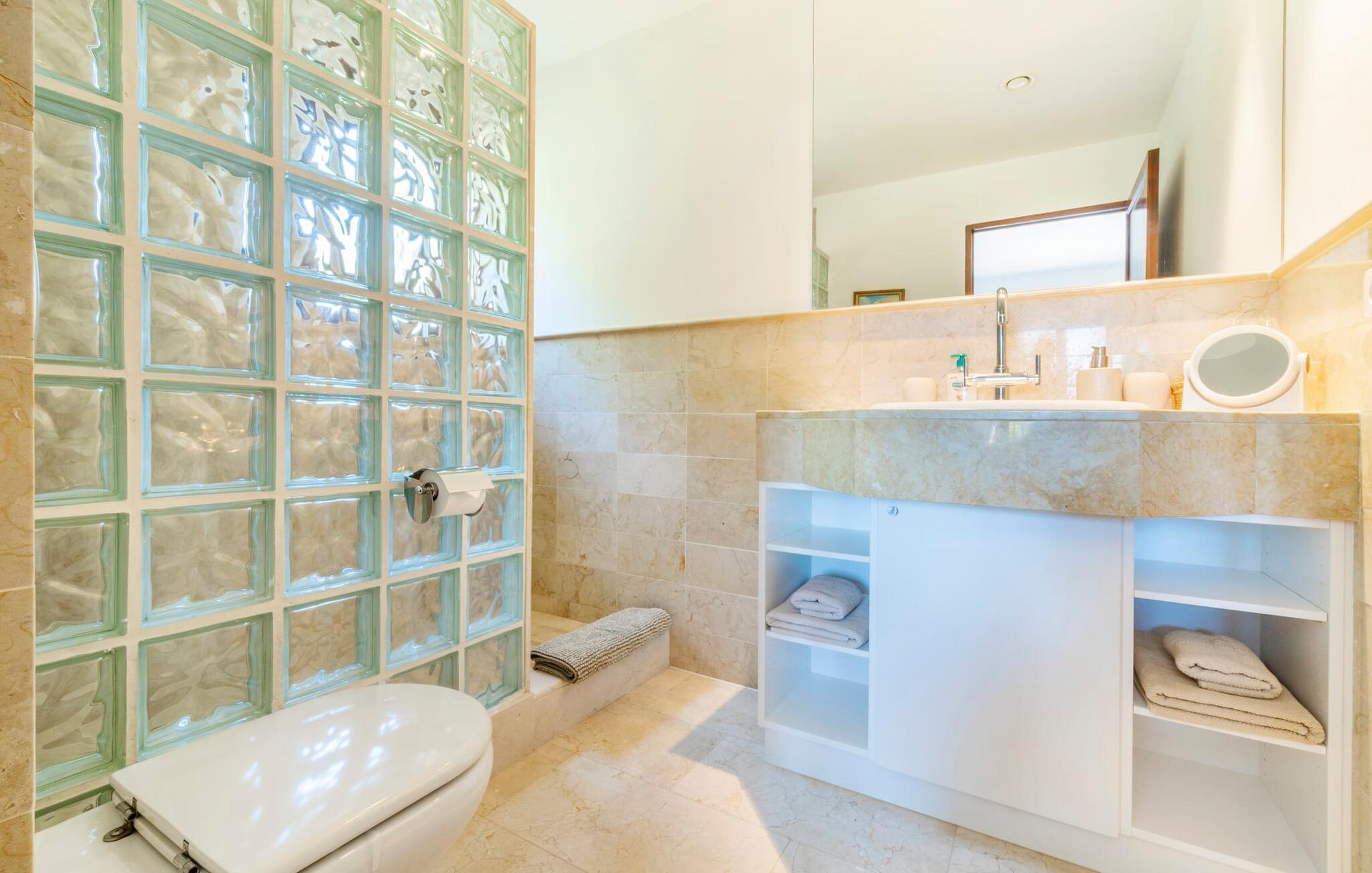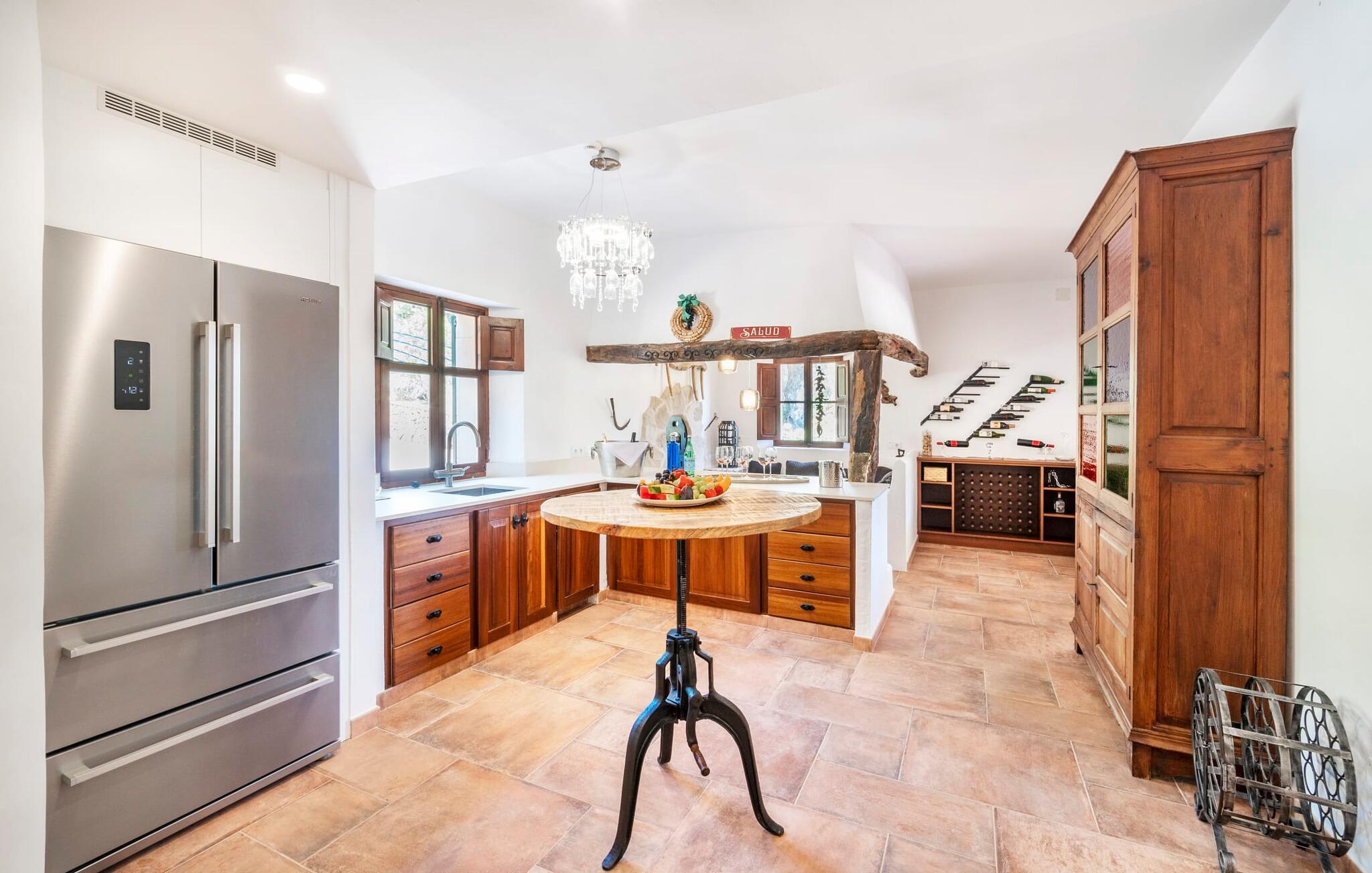 Ankom, sluk, nyd: Dette fristende feriemantra byder jer velkommen til den imponerende villa "Son Pujol de Andratx". Det smukke naturstenshus i to rummelige etager ligger ikke kun på en charmerende bjergskråning, men er også sydvendt og nyder godt af masser af sol og en behagelig ugenert beliggenhed. Det er ikke kun omgivet af forskellige overdækkede og udækkede indbydende terrassearealer, men tiltrækker også med endnu en terrasse på øverste etage og en kæmpe, alsidigt anlagt ejendom. En del af terrassearealet er udstyret med et spraykølesystem, som køler omgivelsestemperaturen med omkring 10 grader og holder hvepse væk. I kan gå rundt blandt velduftende rosmarin- og lavendelbuske, små oliventræer og palmer, men der er også plads til, at børn kan lege på plænerne. For sportsentusiaster er der et udendørs bordtennisbord, en pull-up bar og en boulebane i strandsandet. Hist og her er der skabt smukke hjørner til afslapning, for eksempel stilfulde liggestole eller en daybed med gardiner, der svajer romantisk i vinden - simpelthen fantastisk! Det gælder også infinity-poolen lige ved siden af huset, hvorfra man kan tage et kig på den omkringliggende natur. I kan nyde en lignende udsigt fra det ekstra lange spisebord på den overdækkede terrasse, som byder på plads nok til alle rejsende. Silbermühlen-grillen i det fuldt udstyrede udendørs stenkøkken tilbyder de bedste betingelser for kulinariske aftener af høj kvalitet i det fri. Storslåede stengulve, hvide vægge, flotte detaljer som gamle bjælker, glitrende lysekroner og elegante søjler – indretningen af jeres sommerhus er et sandt blikfang. "Son Pujol de Andratx" er blevet møbleret og dekoreret med stor smag, men også en god følelse af komfort. Værelserne er rummelige og lyse, det imponerende indgangsparti byder jer velkommen i stueetagen. Lad os derefter gå videre til et enkelt åbent rum, der rummer opholds- og spiseområderne samt køkkenet. Mens en stor sofa med afslapningsfunktion i stuen indbyder til at putte sig foran pejsen, er der et langt træbord i spisestuen til en overdådig middag. I kan tilberede de lækkerier, I vil servere, i køkkenet lige ved siden af. Hobbykokke vil blive begejstrede for pladsen og de absolut højkvalitets apparater. Når det er tid til søde drømme, kan I trække jer tilbage til et af de fem stilfulde soveværelser, hver med et smart en-suite badeværelse, pengeskab og aircondition. Det bakkede og skovklædte landskab omkring jeres ejendom er særdeles velegnet til lange gå- eller vandreture, da det er et af de smukkeste områder i den sydvestlige del af øen. Andratx er ca. 3,9 km væk med udlejningsbil. Den traditionelle by, populær som eksklusivt boligområde, ligger i Tramuntana-bjergenes dal og er bestemt et besøg værd. Med sine smalle gader og autentiske mallorcanske bybilleder giver Andratx ikke kun inspiration til mange kunstnere og forfattere, men tiltrækker også et internationalt publikum. Ud over de smukke kirker Santa Maria de Andratx og s'Arracó og Castel de Son Mas, som nu bruges som rådhus, bør I også kigge forbi kulturcentret CCA Andratx, hvor moderne kunst er udstillet. For en dag på stranden kan I for eksempel tage til Platja de Sant Elm, kun 10 km væk. Takket være dets fine sand og let skrånende kyst er den særlig populær blandt familier med små børn. Stranden byder også på god infrastruktur og en promenade til slentreture. "Son Pujol de Andratx" er en villadrøm, der går i opfyldelse: et betagende, stort naturstenshus, bygget i en fantastisk sydvendt beliggenhed, afsondret beliggenhed på en skråning, på en kæmpe ejendom med en fortryllende have, kun 3,9 km fra Andratx . Bag huset kan I forvente ikke kun overdækkede og solrige terrasseområder, men også en fantastisk infinity-pool, hvorfra I kan nyde en imponerende udsigt over den omkringliggende natur. Stranden i Platja de Sant Elm ligger kun 10 km væk i bil. Bemærk venligst, at denne ejendom ikke accepterer ungdomsgrupper eller polterabender. En ungdomsgruppe på denne ejendom består af personer under 30 år. Book ikke denne ejendom, hvis I er en ungdomsgruppe eller en polterabendgruppe, da jeres reservation vil blive afvist, når den er booket, hvilket også kan være tilfældet ved ankomst til ejendommen eller under jeres ophold, og I vil ikke modtage en refusion.