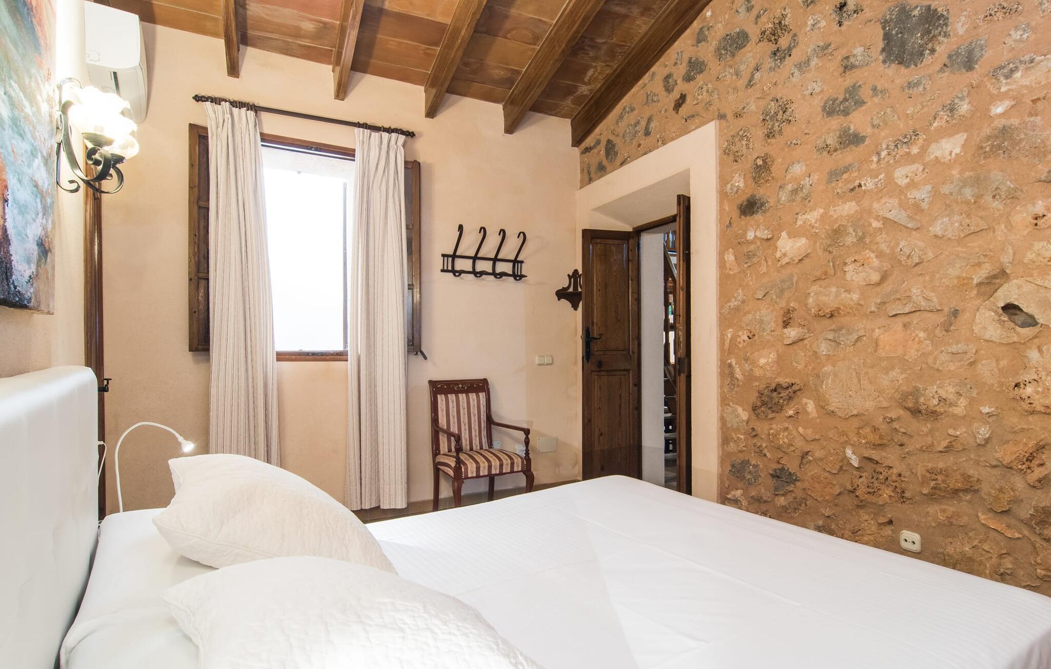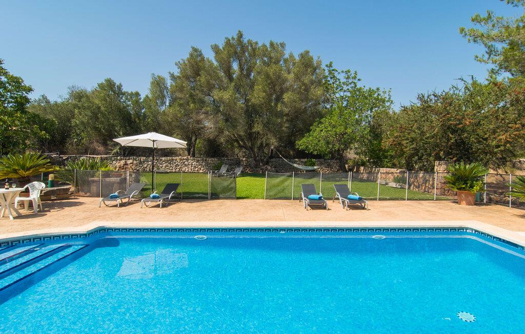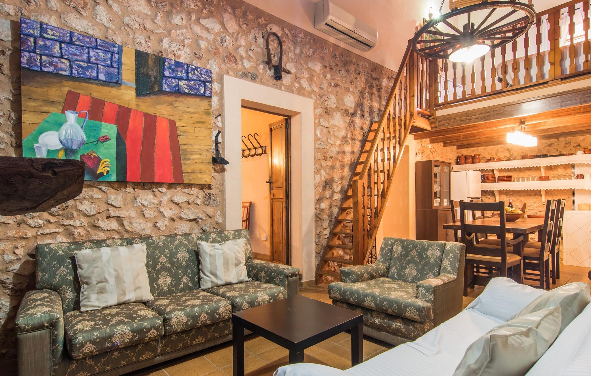 Navnet på det drømmende bondehus "Son Rossinyol" oversættes som "nattergal" - og den mallorcanske feriedestination med sin smukke have fuld af middelhavsfrodighed ligner faktisk et fortryllet sted fra en historisk roman. Frodige grønne græsplæner, en børnevenlig pool med indviklede mosaikker, gamle træer, hvor I kan slappe af i en hængekøje - hvem ville ikke blive begejstret? Solbad på de komfortable liggestole eller læs en god bog, mens børnene hygger sig i poolen. Alt dette foregår i uberørte omgivelser fuld af vindmøller og landbrugskarakter, på den sublime baggrund af Tramuntana-bjergene, som I tydeligt kan se i horisonten. I dette mallorcanske feriehus kan I nyde at sidde ved spisebordet under den skyggefulde terrasse og forberede en lækker BBQ i udekøkkenet med murstensgrill. Mens solen fortsætter med at synke, kan I også nyde en hyggelig sundowner på bodega-stil murstensbænken - undslip hverdagens stress og jag på jeres velfortjente ferie. Selve det gamle stenhus har også en historisk flair og er ideel til en familie. Stilen er rustik og hyggelig og passer perfekt ind i denne jordnære region og landsbyen Llubí med sine 2.300 indbyggere. Masser af træ og fritlagte stenbrud i den hyggelige opholdsstue udgør sammen med spisepladsen og det åbne køkken hjertet i det landlige sommerhus. Indretningen kan være enkel, men detaljerne bidrager til den rustikke karakter, hvilket den åbne pejs naturligvis også bidrager til. I dette åbne område fører en trappe til et galleri, hvor der er placeret to senge. For dem, der kan lide noget mere tilbagetrukket, er der to soveværelser med aircondition - så der er god plads til familien, som gerne må tage deres kæledyr med. To walk-in brusere fuldender komforten, ideel for alle, der ønsker at opleve mallorcinsk landliv uden at lægge pres på deres budget. Simpelthen yndig! I hjertet af øen venter den familievenlige perle "Son Rossinyol" på jer med en middelhavshave, børnesikret pool og et smukt udekøkken med grill. Det attraktive bondehus ligger kun 5 minutter fra den sentimentale lille by Llubí, som I også kan nå til fods. På grund af nærheden til den akustisk mærkbare landevej kan I meget hurtigt besøge attraktive steder som Sineu eller Inca. Alcúdia-bugten med dens brede udvalg af drømmestrande ligger også kun 20 minutter væk i bil.