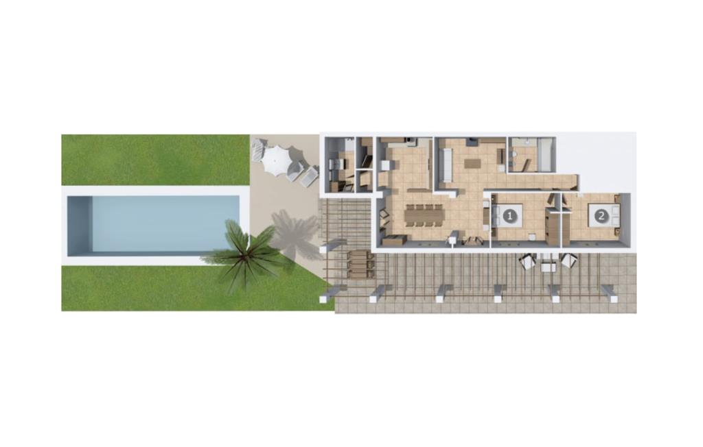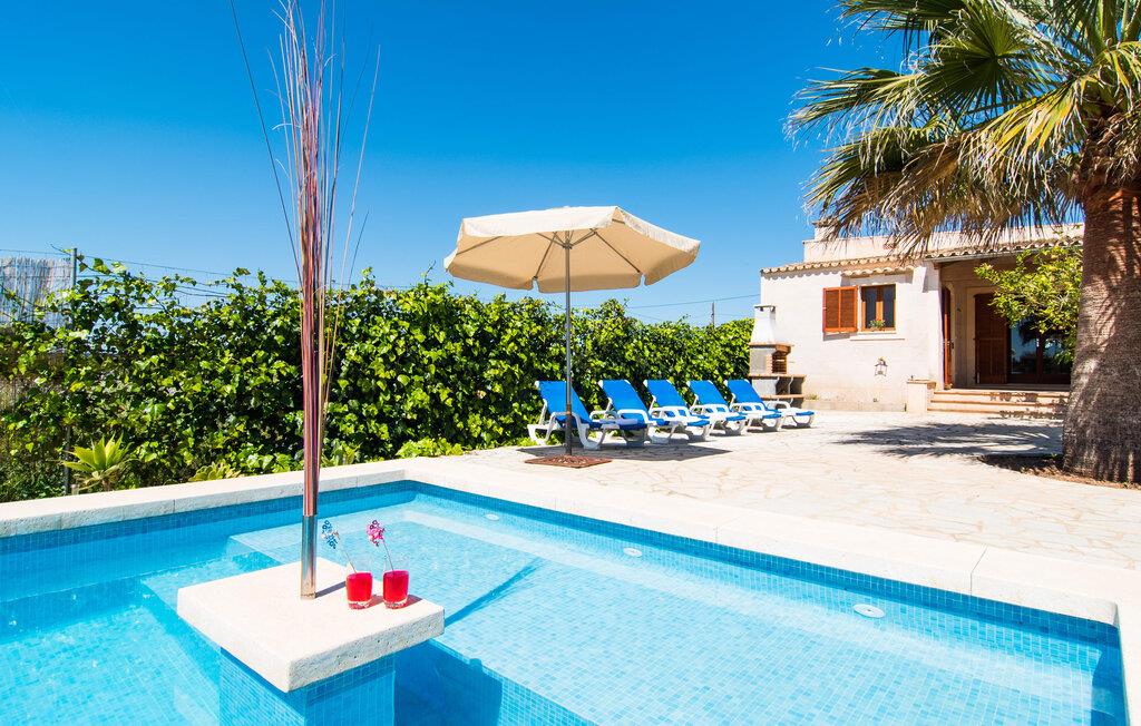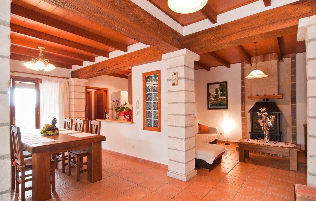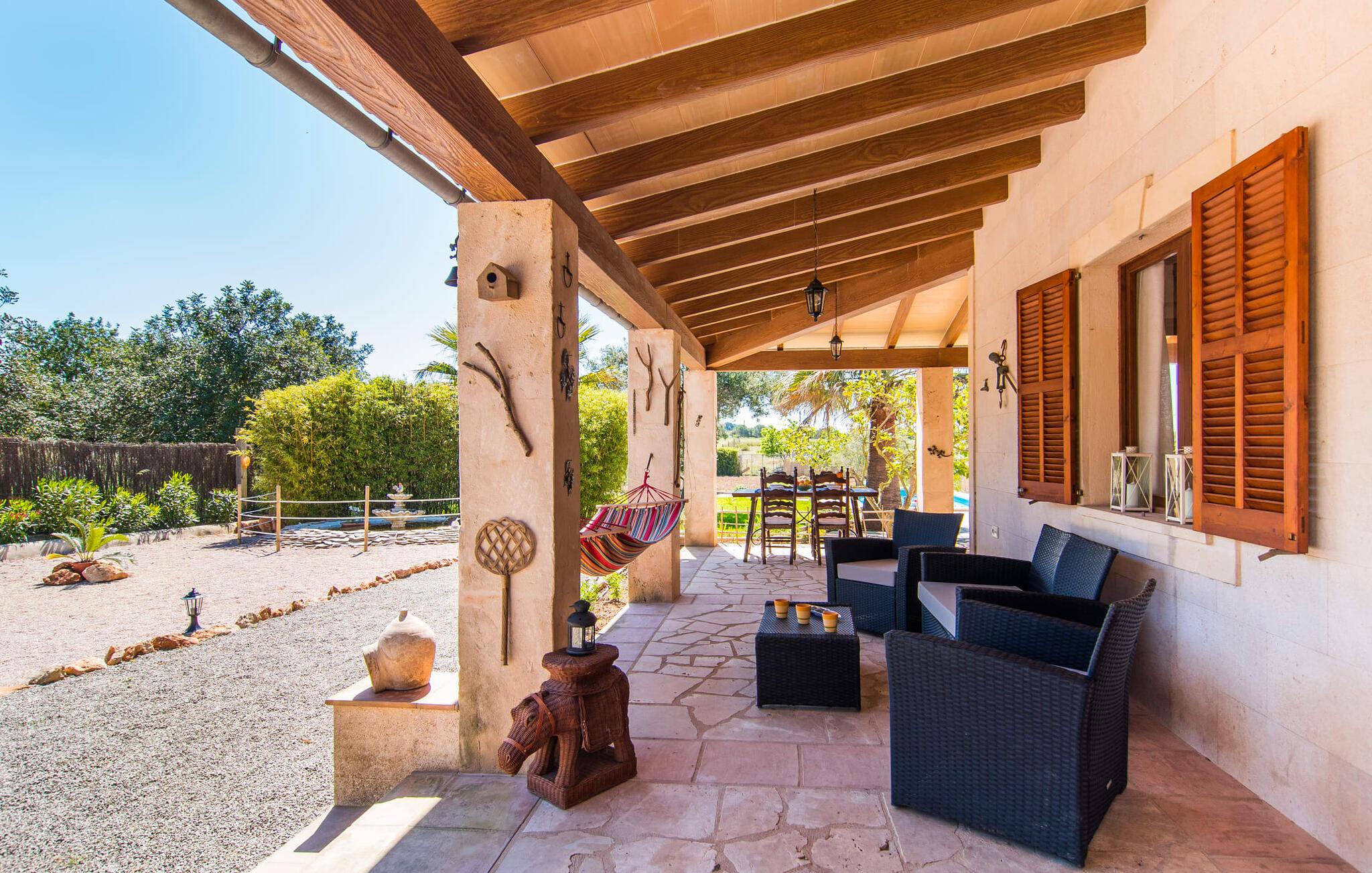 Den indbydende villa "Son Segi" er et lysende eksempel på et typisk mallorcansk landsted med en ekstraordinær flair. Etplansbygningen med sine brune træskodder på vinduer og terrassedøre byder på et velopdelt opholdsrum for en familie eller to-tre par (med eller uden børn). Huset er omgivet af en naturlig have fuld af palmer, bambusgræs og citron- og oliventræer. Et særligt højdepunkt ved den smarte pool er poolbaren i den flade ende - hvor er det bedre at nyde en forfriskende drink end i det kølige vand? Poolen er forbundet med huset med en naturstenterrasse og byder på plads nok til seks liggestole og to parasoller til at køle af i dagens varme. En L-formet overdækket veranda med udsigt over et delikat springvand giver et rummeligt spiseområde, særligt attraktivt på dage, hvor I vil drage fordel af den indbyggede grill. I den anden ende af den rummelige terrasse finder I et afslappet loungeområde med polyrattanmøbler, hvor I kan slappe af i hængekøjen med jeres yndlingsbog, mens jeres familie hygger sig et andet sted. Verandaen byder på flere indgange til villaens veltilrettelagte interiør, hvor I bliver mødt af et klassisk rustikt interiør med terracotta gulvfliser, tunge træbjælker, lette vægge og stensøjler. Rummet er åbent og struktureret ved hjælp af talrige visuelle raffinementer, hvilket skaber en hyggelig og afslappet atmosfære. En yderst hyggelig opholdsstue med en stor hjørnesofa og en nostalgisk brændeovn indbyder bogstaveligt talt til at tilbringe en stille aften foran fjernsynet. En skillevæg med glasindsatser adskiller dette rum fra spisepladsen, som er udstyret med møbler i massivt træ, og forbinder det problemfrit med køkkenet via en slags disk. Bondekøkkenet med sine mørke træfronter er naturligvis udstyret med alt, hvad man kan ønske sig til afslappet selvforsyning – det er trods alt en af grundene til, at man har valgt denne villa. Soveværelserne er alle udstyret med dobbeltsenge og rummelige indbyggede skabe. Uanset om I har jeres feriegarderobe med eller købt på øens markeder, er der masser af opbevaringsplads til den her. Der er to badeværelser, et med badekar og et med bruser. Bruserummet fungerer også som vaskerum og har dør direkte ud til terrassen, hvilket gør den perfekt adgang til huset fra poolen. Alt hvad I ønsker fra en sofistikeret villa kan findes her i dette kompakte hjem fuld af pragmatisme og tradition. Den dejlige landlige beliggenhed "Son Segi" sætter tonen for jeres villaferie, men er alligevel kun fem minutters kørsel fra den smukke landsby Sant Llorenc, hvor I kan shoppe, spise på de lokale restauranter eller nyde atmosfæren på den farverige torsdag marked. Villaen ligger tæt på vejen mellem Manacor og middelalderens Artà (afhængigt af vindretningen kan der være trafikstøj), så selv større byer kan nemt nås til lange indkøbsture eller gåture. En tur til stranden eller en af de mange naturlige bugter er lige så let. Hvis I kan lide at være aktiv, byder denne region på utallige vandre- og cykelstier, der fører forbi førkristne megalittårne, hvis oprindelse går tilbage til Talaiot-kulturen: en juvel af balearisk historie. Vi ønsker jer en begivenhedsrig, varieret og harmonisk ferie i den smukke villa "Son Segi". Den dejlige villa "Son Segi" med sin originale poolbar ligger nær den hyggelige landsby Sant Llorenc på den østlige del af øen. Her kan I gøre jeres daglige indkøb, og der er et farverigt ugentligt marked her om torsdagen. Større byer som Manacor eller den middelalderlige Artà er nemme at nå. Regionens vidunderlige sandstrande - "Calas de Mallorca" - ligger kun en kort køretur fra fincaen; Strandene ved havnebyen Porto Cristo eller S'Illot er blot to eksempler.