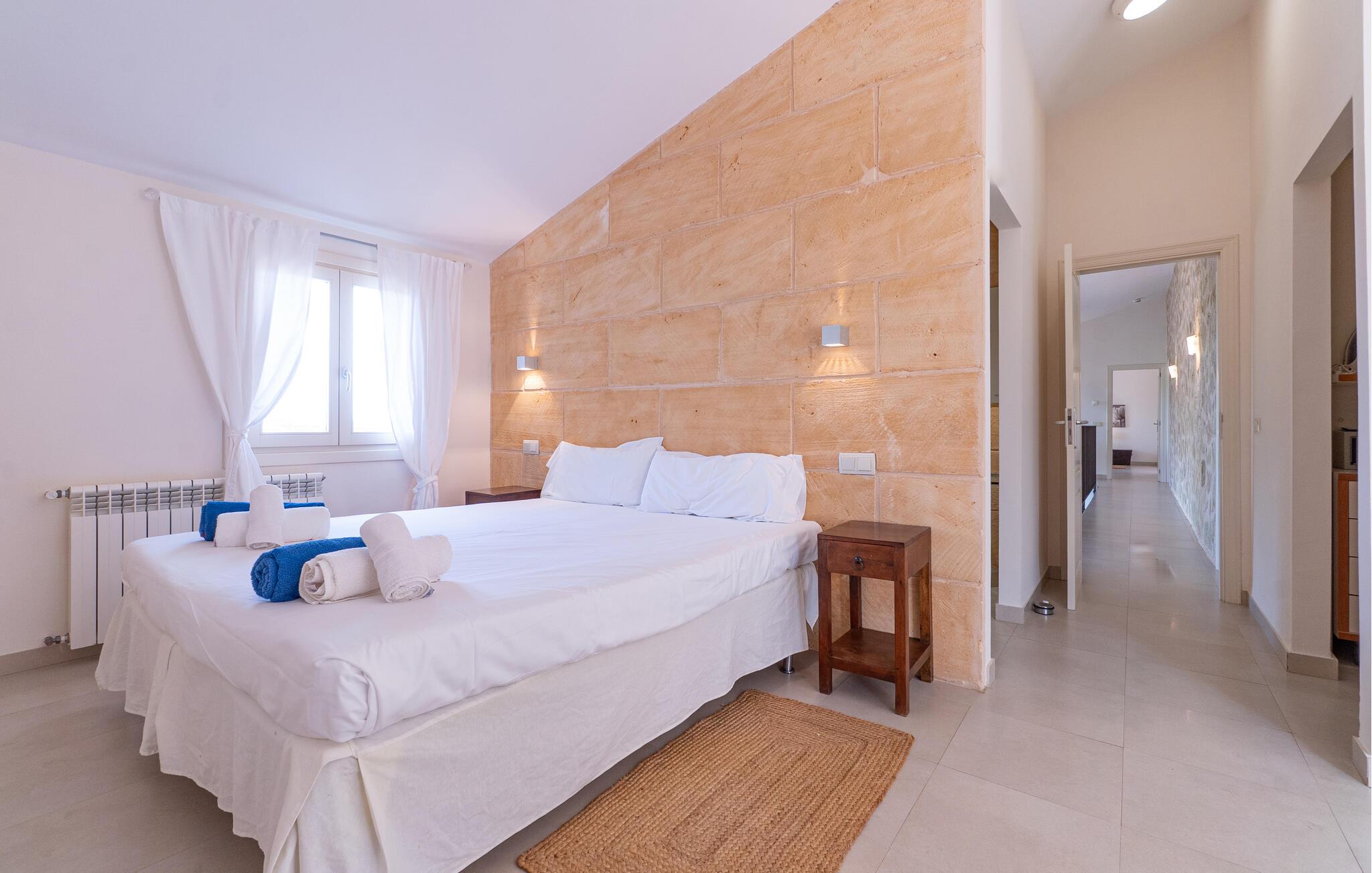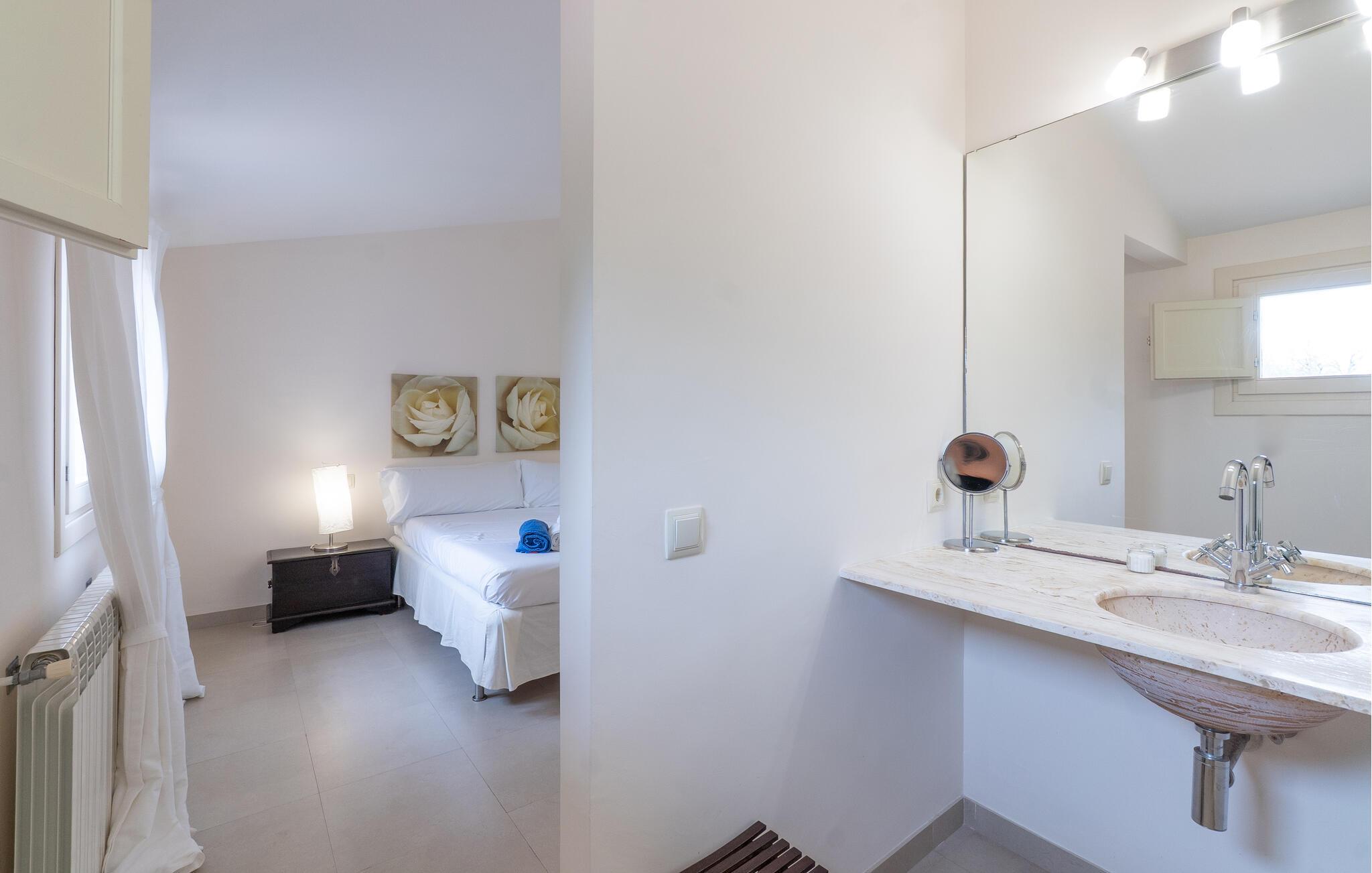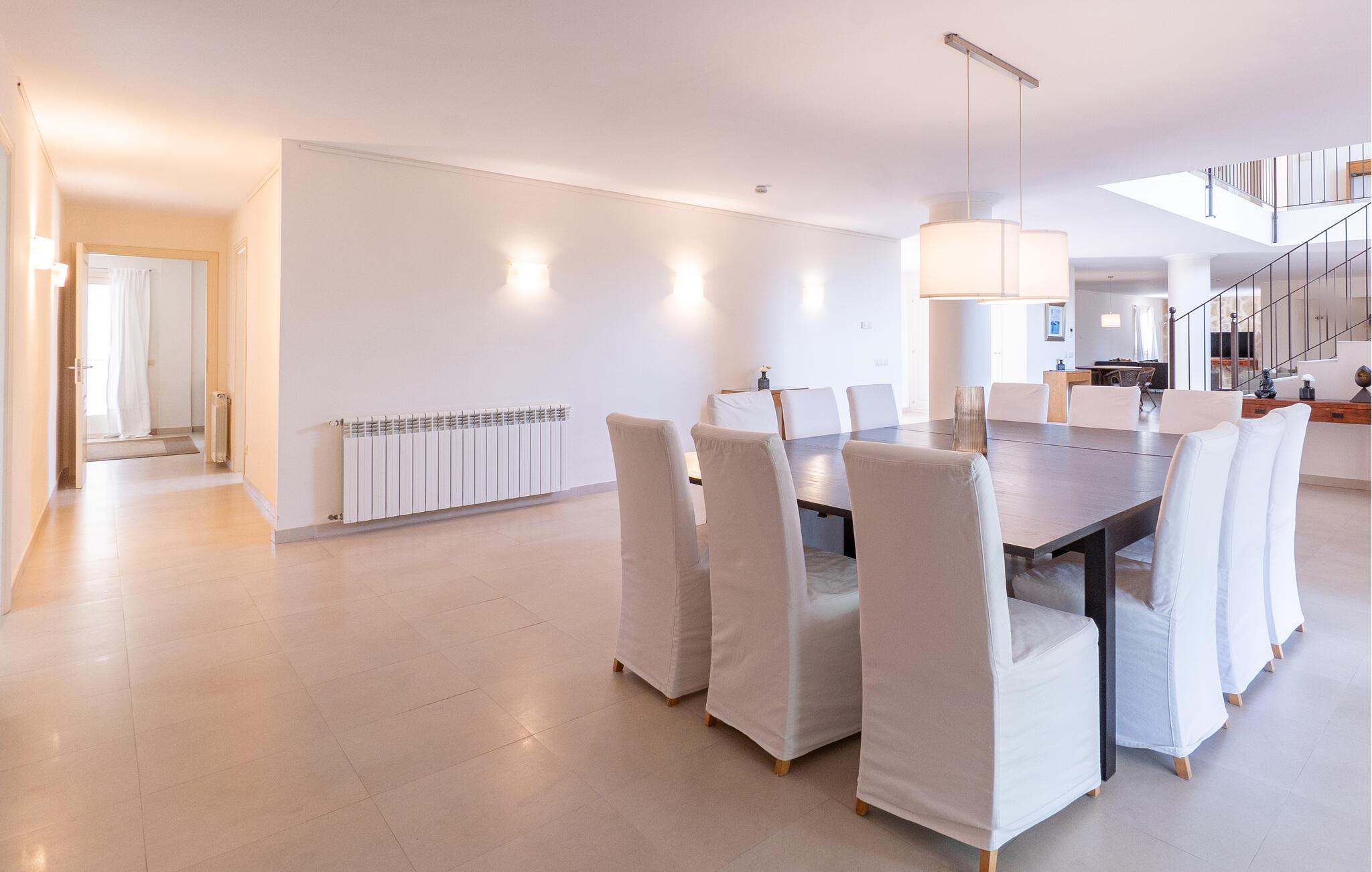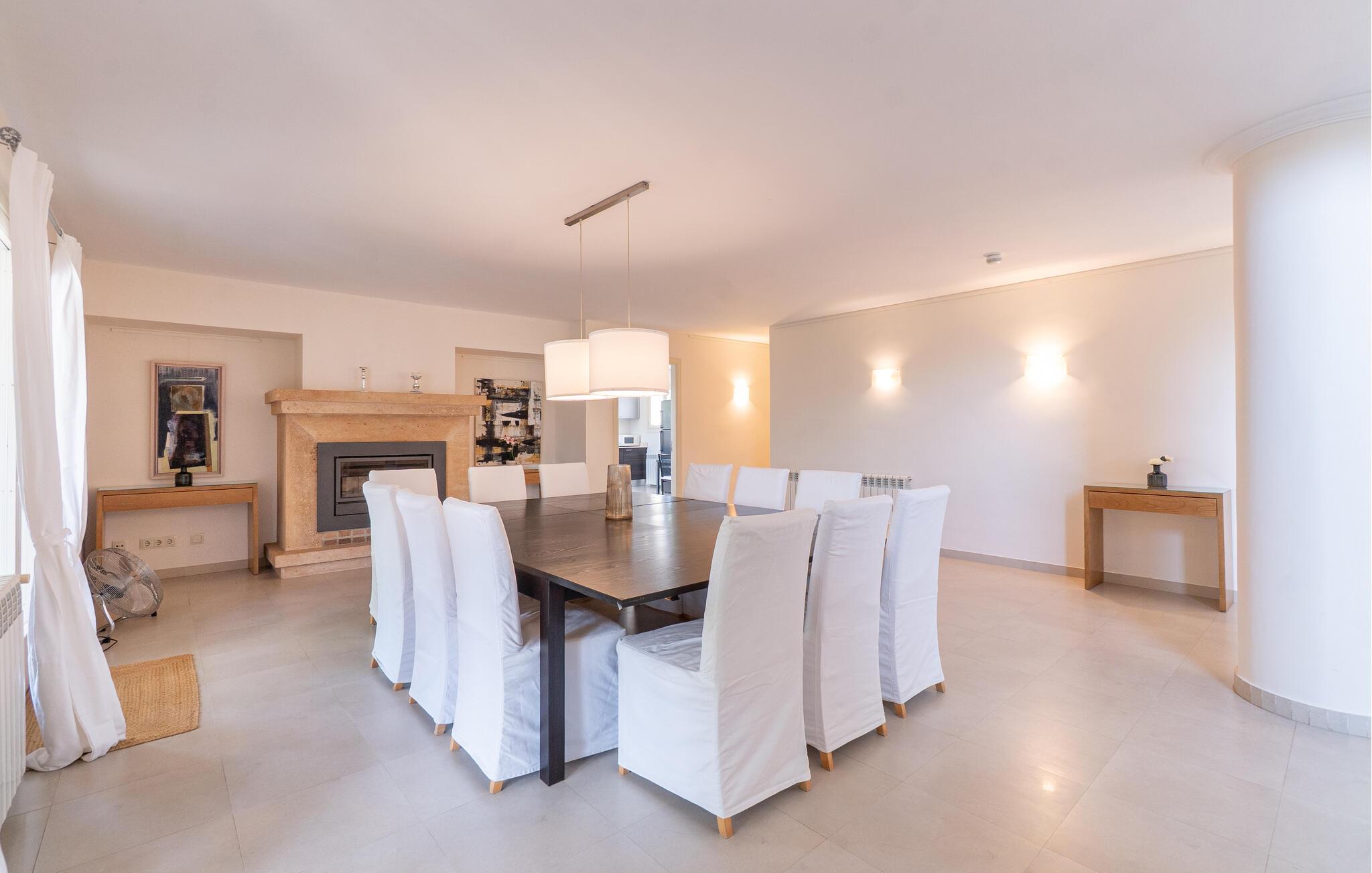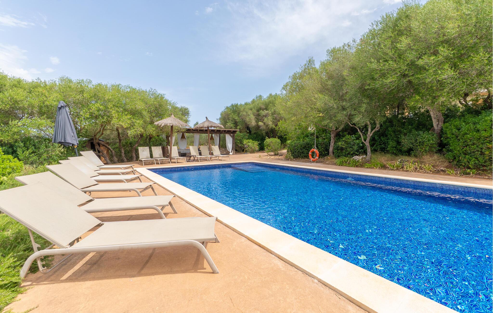 Nyd en uforglemmelig ferie med venner eller familie i dette rummelige feriehus med pool. Beliggende på en stor, idyllisk grund, der tilbyder maksimalt privatliv, byder denne komfortable mallorcanske finca jer velkommen. Denne drømmeagtige ejendom vil forkæle jer med alt, hvad der gør en ferie på denne fortryllende middelhavsø til en uforglemmelig oplevelse, og tilbyder rigelig plads til sociale sammenkomster - selv med en større gruppe, der søger fred og ro. Træd indenfor og lad jer betage af det lyse og smagfuldt indrettede interiør. I det rummelige køkken kan I tilberede kulinariske lækkerier med friske råvarer fra markedet og servere dem i en af de mange spiseområder. Efter lange måltider kan I forkæle jer selv med en afslappende siesta i jeres hyggelige soveværelse eller bruge træningsmaskinerne til en træning. Snak om svundne tider foran pejsen eller træk jer tilbage til den indbydende tv-stue for en film eller stille læsning. Det rummelige og alsidige udendørsområde er perfekt til fuldt ud at nyde middelhavsklimaet. Så snart I vågner, kan I svømme afslappende baner i den smukke, afsidesliggende pool, se solen stå op over havet, mens I nipper til en duftende kaffe på terrassen, og derefter lukke øjnene på liggestolen for at lytte til cikaderne. Server friskpresset appelsinjuice til morgenmad udenfor, og tænd op i grillen ved solnedgang for at slappe af i de lune sommernætter med vin og stearinlys. De romantiske bugter med turkisblåt vand og de lange, børnevenlige sandstrande på Mallorcas østkyst ligger kun en kort køretur fra denne oase af ro. Gå en tur gennem det farverige ugentlige marked i Artà, udforsk de romerske ruiner af Alcúdia - øens ældste by - eller forkæl jer selv med en drink med udsigt over havet i Son Serra. Prøv mallorcansk køkken i en hyggelig restaurant eller nyd en lækker paella serveret i skyggen. Glæd jer til en dejlig ferie i denne fortryllende finca.