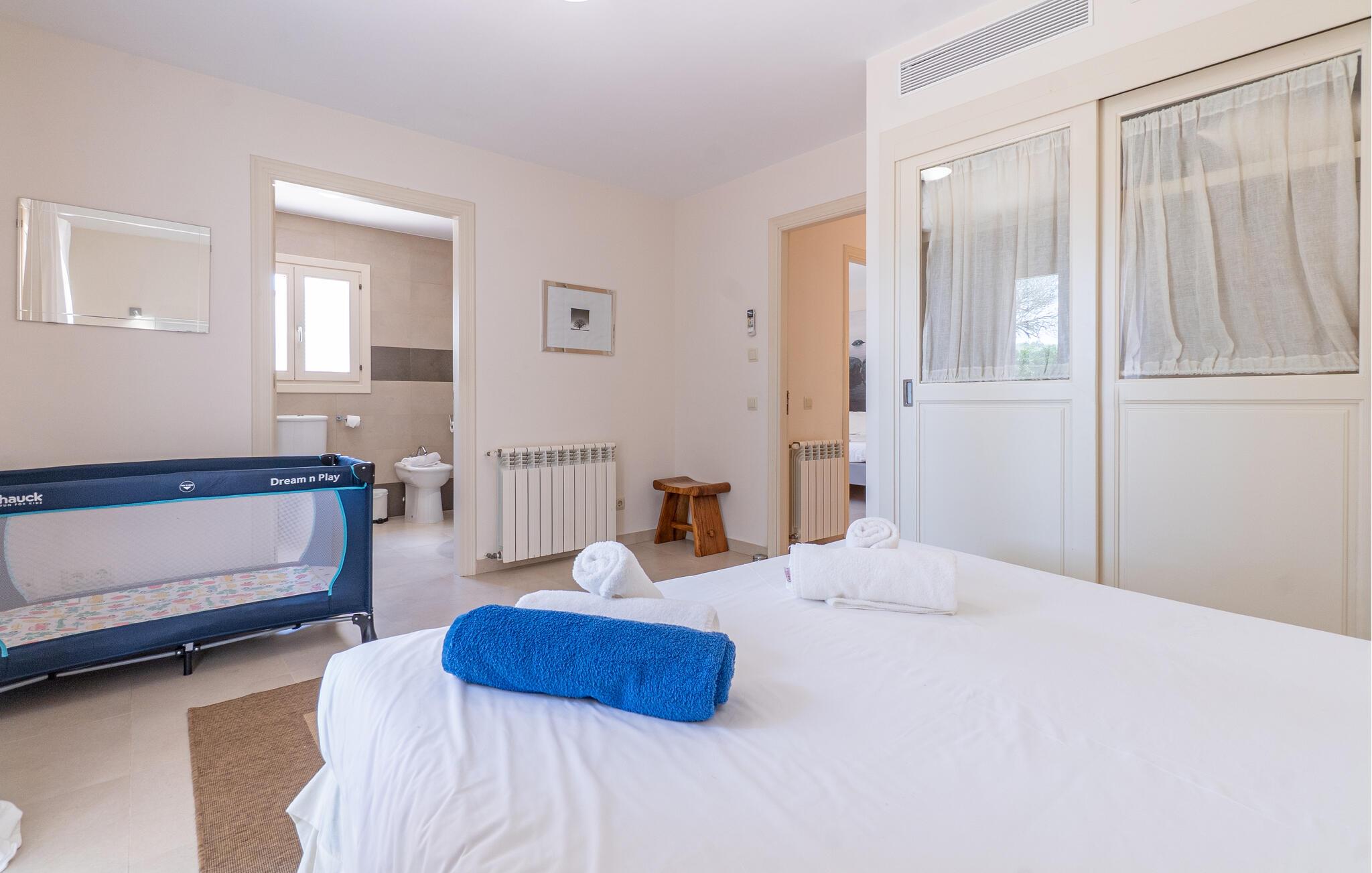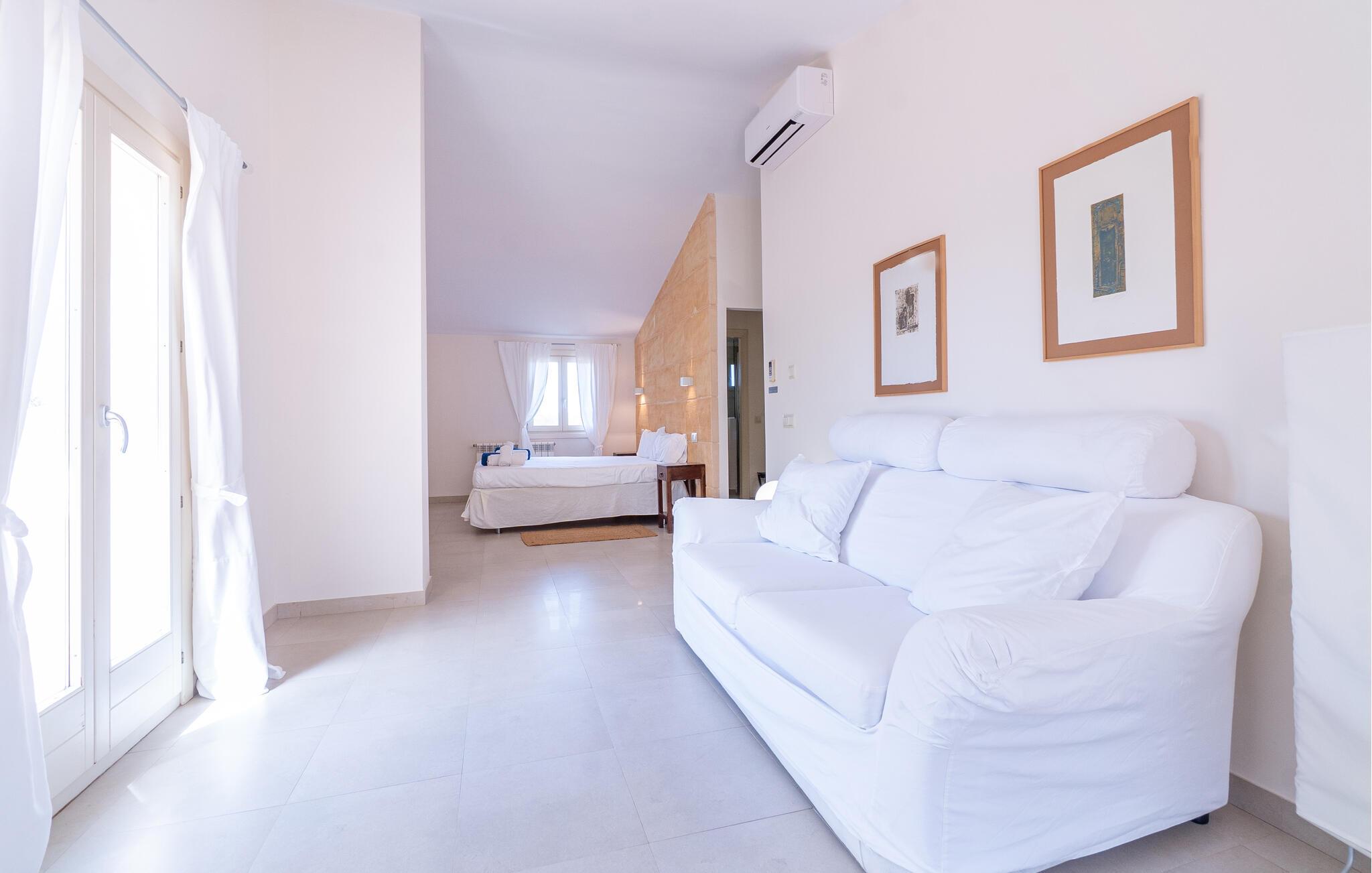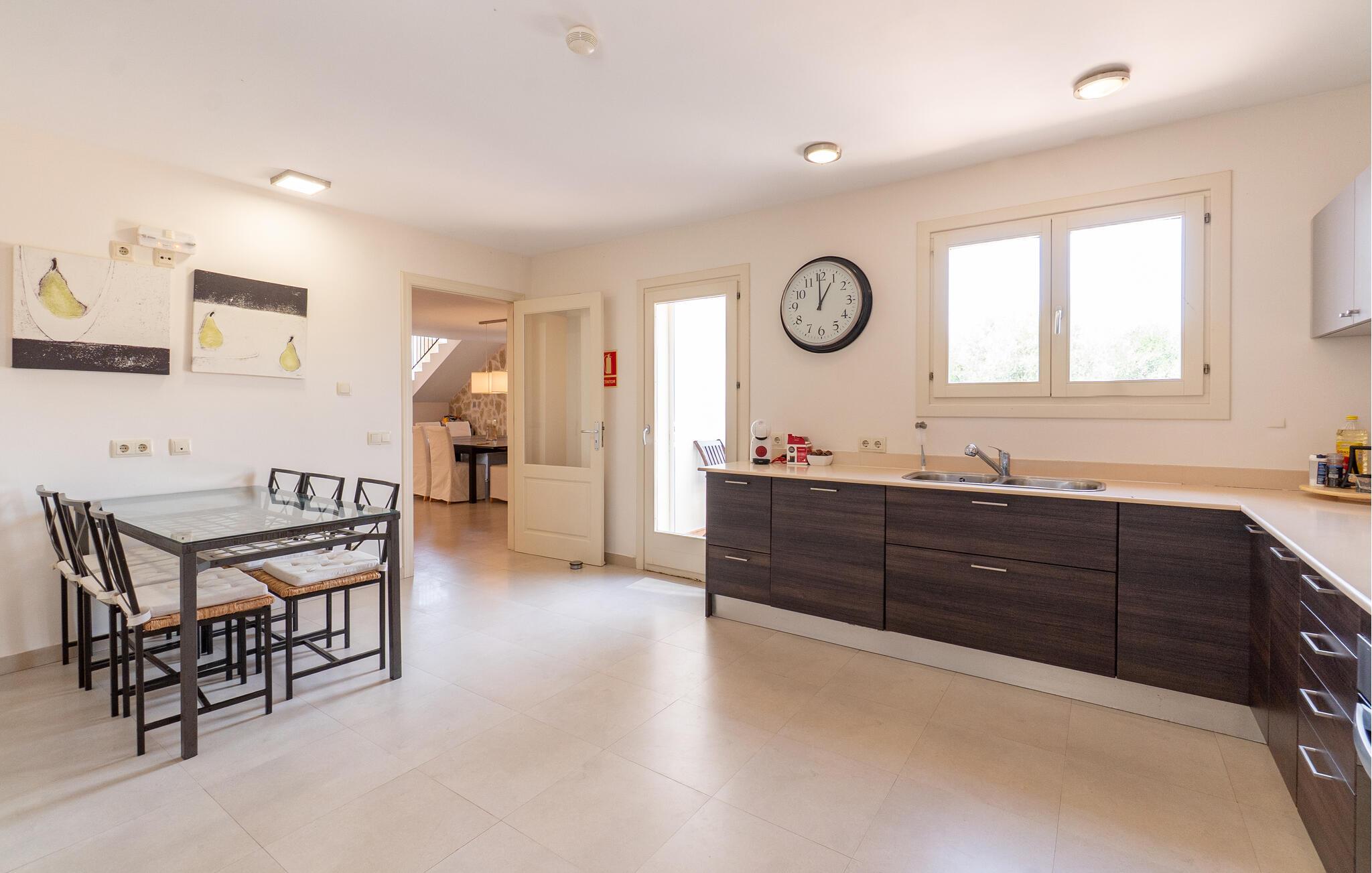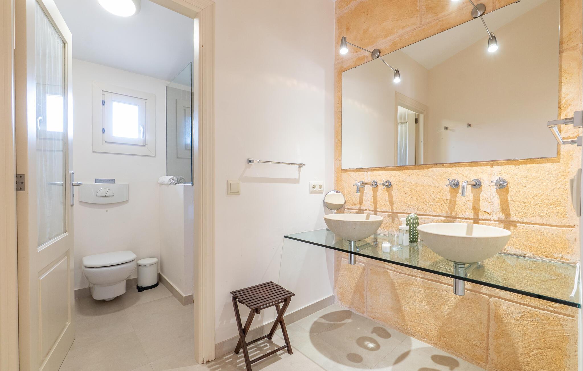 Nyd en uforglemmelig ferie med venner eller familie i dette rummelige feriehus med pool. Beliggende på en stor, idyllisk grund, der tilbyder maksimalt privatliv, byder denne komfortable mallorcanske finca jer velkommen. Denne drømmeagtige ejendom vil forkæle jer med alt, hvad der gør en ferie på denne fortryllende middelhavsø til en uforglemmelig oplevelse, og tilbyder rigelig plads til sociale sammenkomster - selv med en større gruppe, der søger fred og ro. Træd indenfor og lad jer betage af det lyse og smagfuldt indrettede interiør. I det rummelige køkken kan I tilberede kulinariske lækkerier med friske råvarer fra markedet og servere dem i en af de mange spiseområder. Efter lange måltider kan I forkæle jer selv med en afslappende siesta i jeres hyggelige soveværelse eller bruge træningsmaskinerne til en træning. Snak om svundne tider foran pejsen eller træk jer tilbage til den indbydende tv-stue for en film eller stille læsning. Det rummelige og alsidige udendørsområde er perfekt til fuldt ud at nyde middelhavsklimaet. Så snart I vågner, kan I svømme afslappende baner i den smukke, afsidesliggende pool, se solen stå op over havet, mens I nipper til en duftende kaffe på terrassen, og derefter lukke øjnene på liggestolen for at lytte til cikaderne. Server friskpresset appelsinjuice til morgenmad udenfor, og tænd op i grillen ved solnedgang for at slappe af i de lune sommernætter med vin og stearinlys. De romantiske bugter med turkisblåt vand og de lange, børnevenlige sandstrande på Mallorcas østkyst ligger kun en kort køretur fra denne oase af ro. Gå en tur gennem det farverige ugentlige marked i Artà, udforsk de romerske ruiner af Alcúdia - øens ældste by - eller forkæl jer selv med en drink med udsigt over havet i Son Serra. Prøv mallorcansk køkken i en hyggelig restaurant eller nyd en lækker paella serveret i skyggen. Glæd jer til en dejlig ferie i denne fortryllende finca.