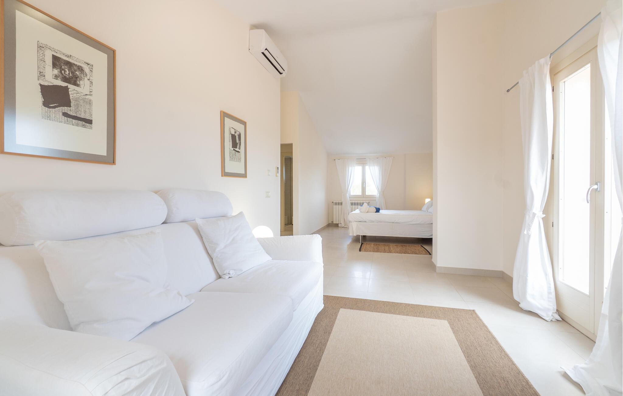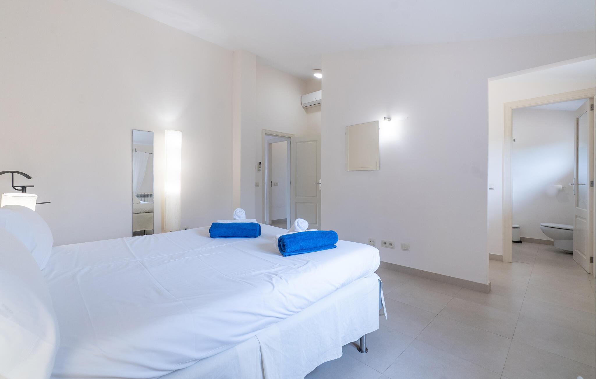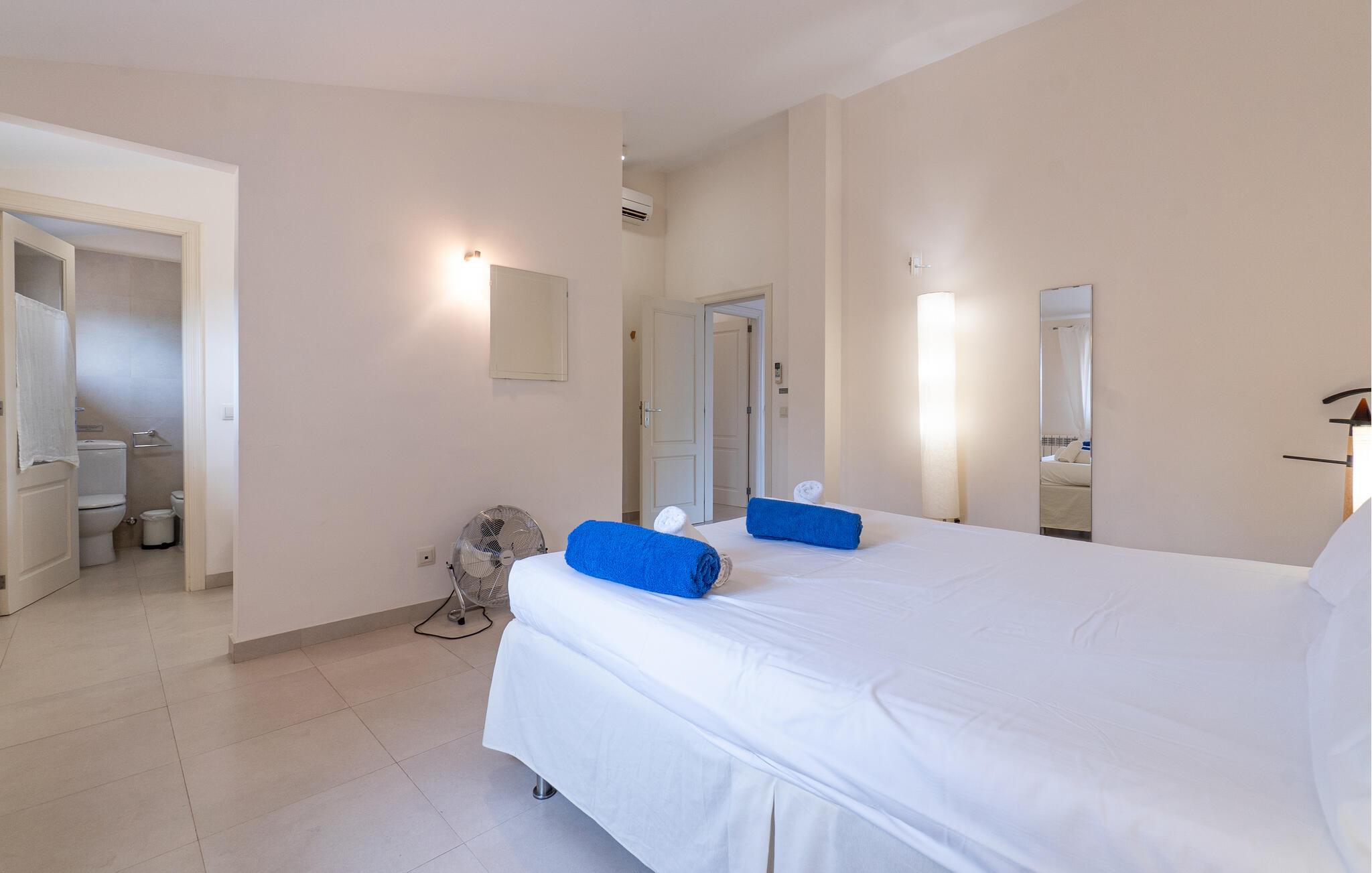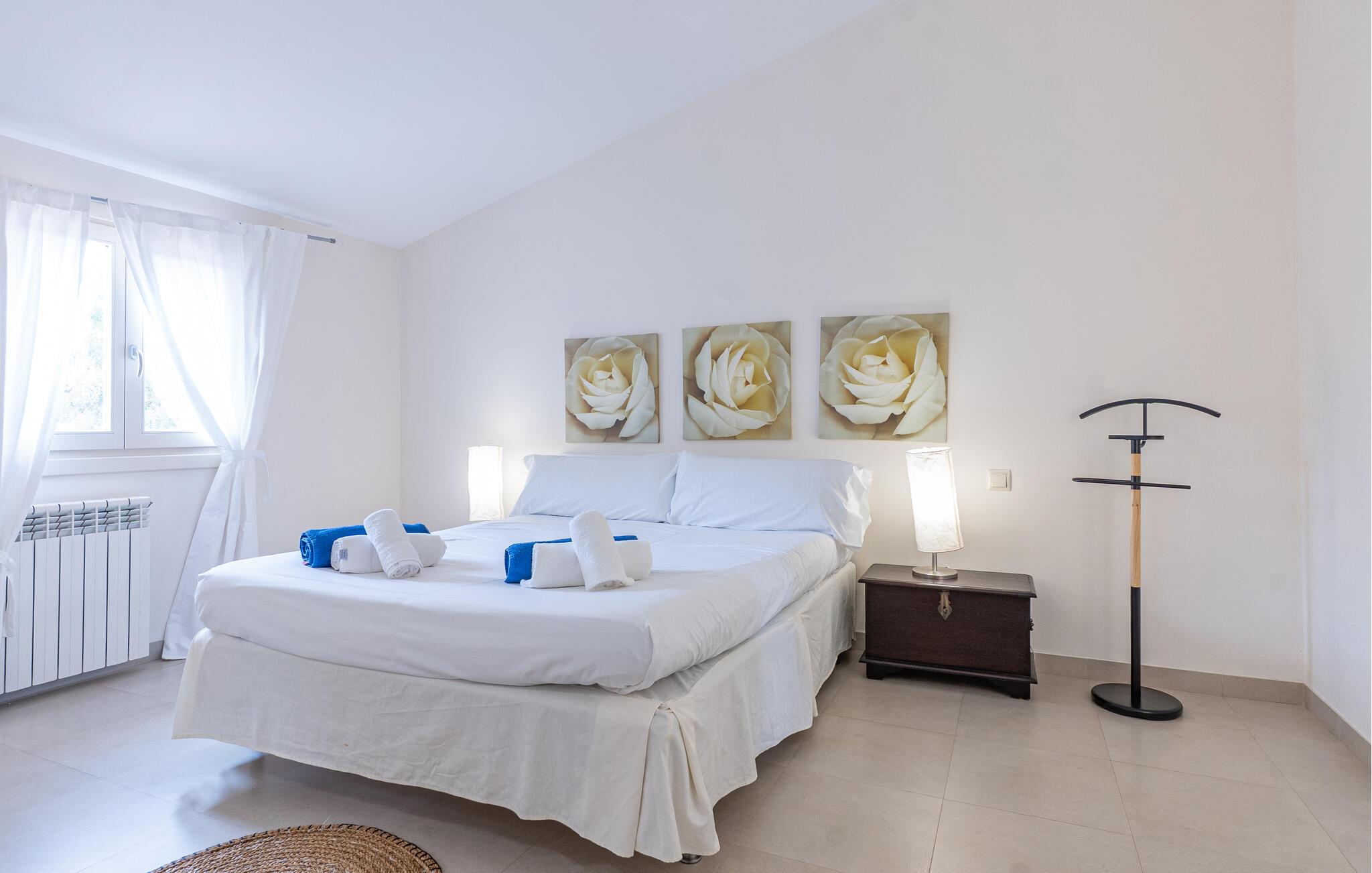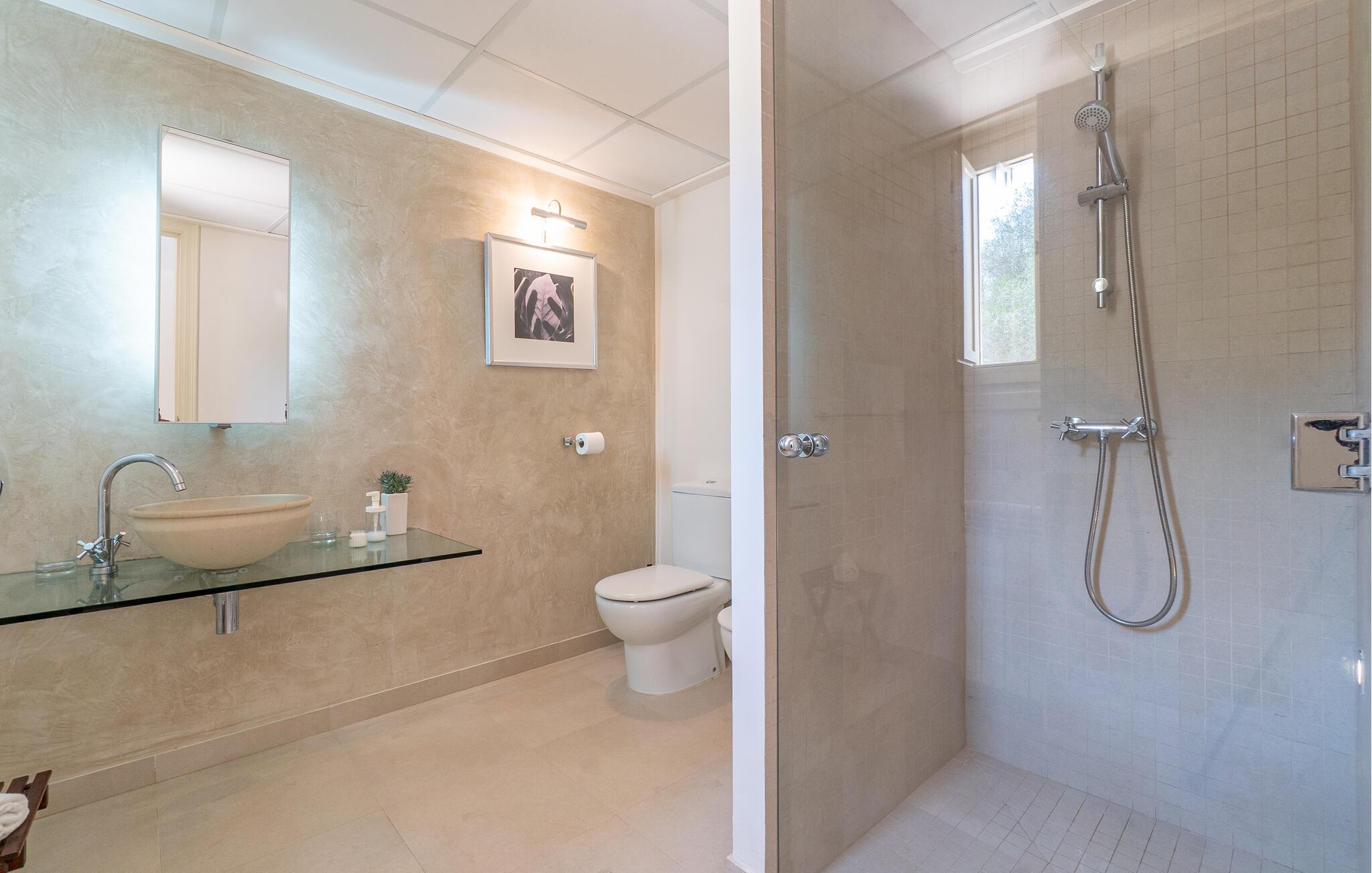 Nyd en uforglemmelig ferie med venner eller familie i dette rummelige feriehus med pool. Beliggende på en stor, idyllisk grund, der tilbyder maksimalt privatliv, byder denne komfortable mallorcanske finca jer velkommen. Denne drømmeagtige ejendom vil forkæle jer med alt, hvad der gør en ferie på denne fortryllende middelhavsø til en uforglemmelig oplevelse, og tilbyder rigelig plads til sociale sammenkomster - selv med en større gruppe, der søger fred og ro. Træd indenfor og lad jer betage af det lyse og smagfuldt indrettede interiør. I det rummelige køkken kan I tilberede kulinariske lækkerier med friske råvarer fra markedet og servere dem i en af de mange spiseområder. Efter lange måltider kan I forkæle jer selv med en afslappende siesta i jeres hyggelige soveværelse eller bruge træningsmaskinerne til en træning. Snak om svundne tider foran pejsen eller træk jer tilbage til den indbydende tv-stue for en film eller stille læsning. Det rummelige og alsidige udendørsområde er perfekt til fuldt ud at nyde middelhavsklimaet. Så snart I vågner, kan I svømme afslappende baner i den smukke, afsidesliggende pool, se solen stå op over havet, mens I nipper til en duftende kaffe på terrassen, og derefter lukke øjnene på liggestolen for at lytte til cikaderne. Server friskpresset appelsinjuice til morgenmad udenfor, og tænd op i grillen ved solnedgang for at slappe af i de lune sommernætter med vin og stearinlys. De romantiske bugter med turkisblåt vand og de lange, børnevenlige sandstrande på Mallorcas østkyst ligger kun en kort køretur fra denne oase af ro. Gå en tur gennem det farverige ugentlige marked i Artà, udforsk de romerske ruiner af Alcúdia - øens ældste by - eller forkæl jer selv med en drink med udsigt over havet i Son Serra. Prøv mallorcansk køkken i en hyggelig restaurant eller nyd en lækker paella serveret i skyggen. Glæd jer til en dejlig ferie i denne fortryllende finca.
