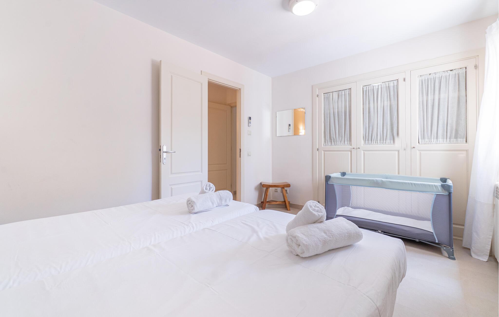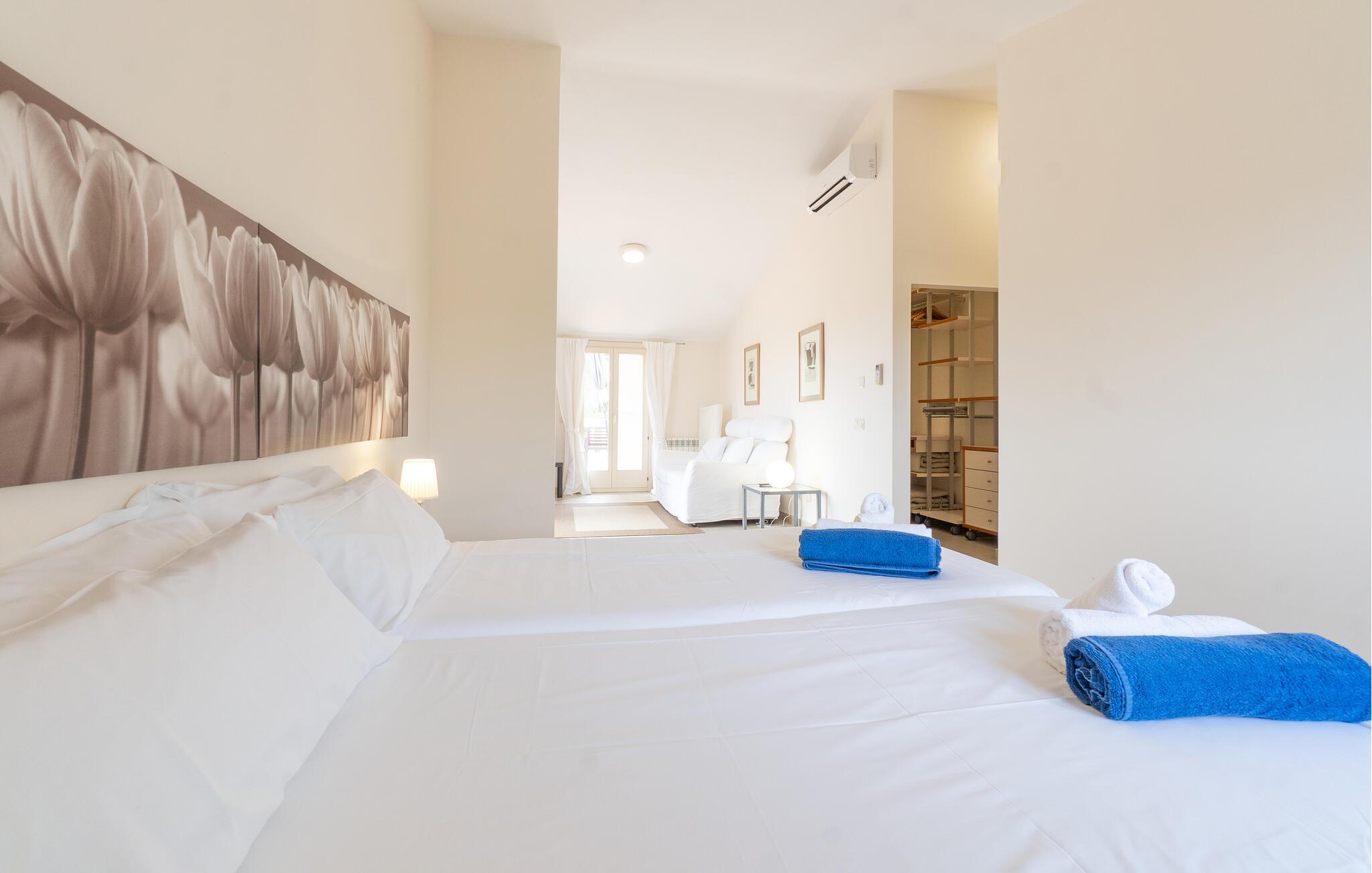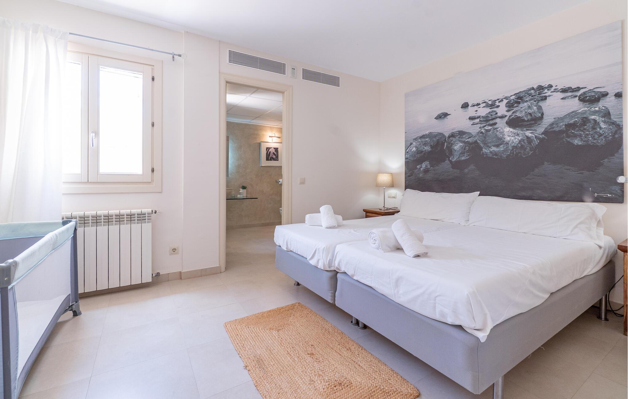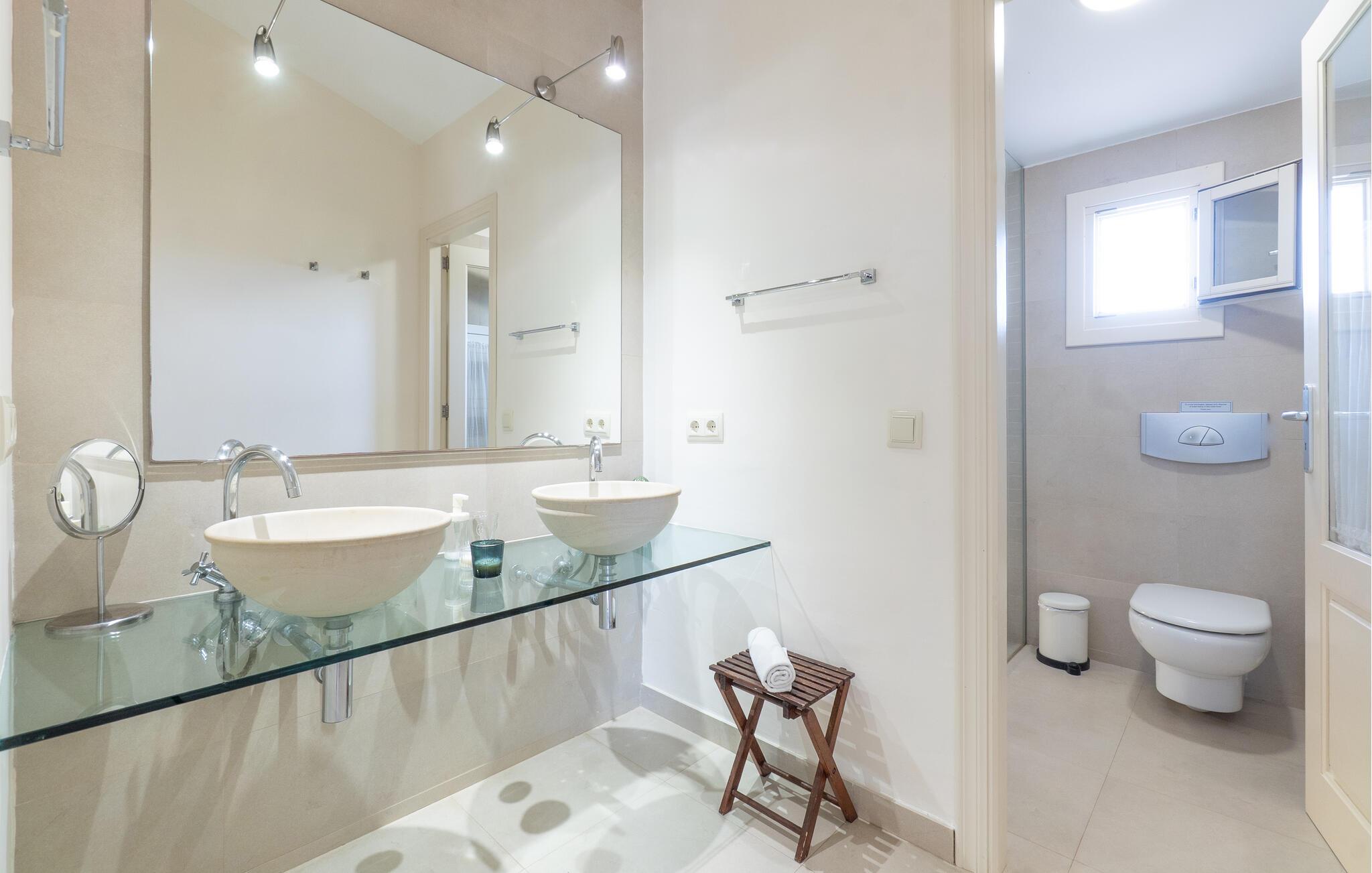 Nyd en uforglemmelig ferie med venner eller familie i dette rummelige feriehus med pool. Beliggende på en stor, idyllisk grund, der tilbyder maksimalt privatliv, byder denne komfortable mallorcanske finca jer velkommen. Denne drømmeagtige ejendom vil forkæle jer med alt, hvad der gør en ferie på denne fortryllende middelhavsø til en uforglemmelig oplevelse, og tilbyder rigelig plads til sociale sammenkomster - selv med en større gruppe, der søger fred og ro. Træd indenfor og lad jer betage af det lyse og smagfuldt indrettede interiør. I det rummelige køkken kan I tilberede kulinariske lækkerier med friske råvarer fra markedet og servere dem i en af de mange spiseområder. Efter lange måltider kan I forkæle jer selv med en afslappende siesta i jeres hyggelige soveværelse eller bruge træningsmaskinerne til en træning. Snak om svundne tider foran pejsen eller træk jer tilbage til den indbydende tv-stue for en film eller stille læsning. Det rummelige og alsidige udendørsområde er perfekt til fuldt ud at nyde middelhavsklimaet. Så snart I vågner, kan I svømme afslappende baner i den smukke, afsidesliggende pool, se solen stå op over havet, mens I nipper til en duftende kaffe på terrassen, og derefter lukke øjnene på liggestolen for at lytte til cikaderne. Server friskpresset appelsinjuice til morgenmad udenfor, og tænd op i grillen ved solnedgang for at slappe af i de lune sommernætter med vin og stearinlys. De romantiske bugter med turkisblåt vand og de lange, børnevenlige sandstrande på Mallorcas østkyst ligger kun en kort køretur fra denne oase af ro. Gå en tur gennem det farverige ugentlige marked i Artà, udforsk de romerske ruiner af Alcúdia - øens ældste by - eller forkæl jer selv med en drink med udsigt over havet i Son Serra. Prøv mallorcansk køkken i en hyggelig restaurant eller nyd en lækker paella serveret i skyggen. Glæd jer til en dejlig ferie i denne fortryllende finca.