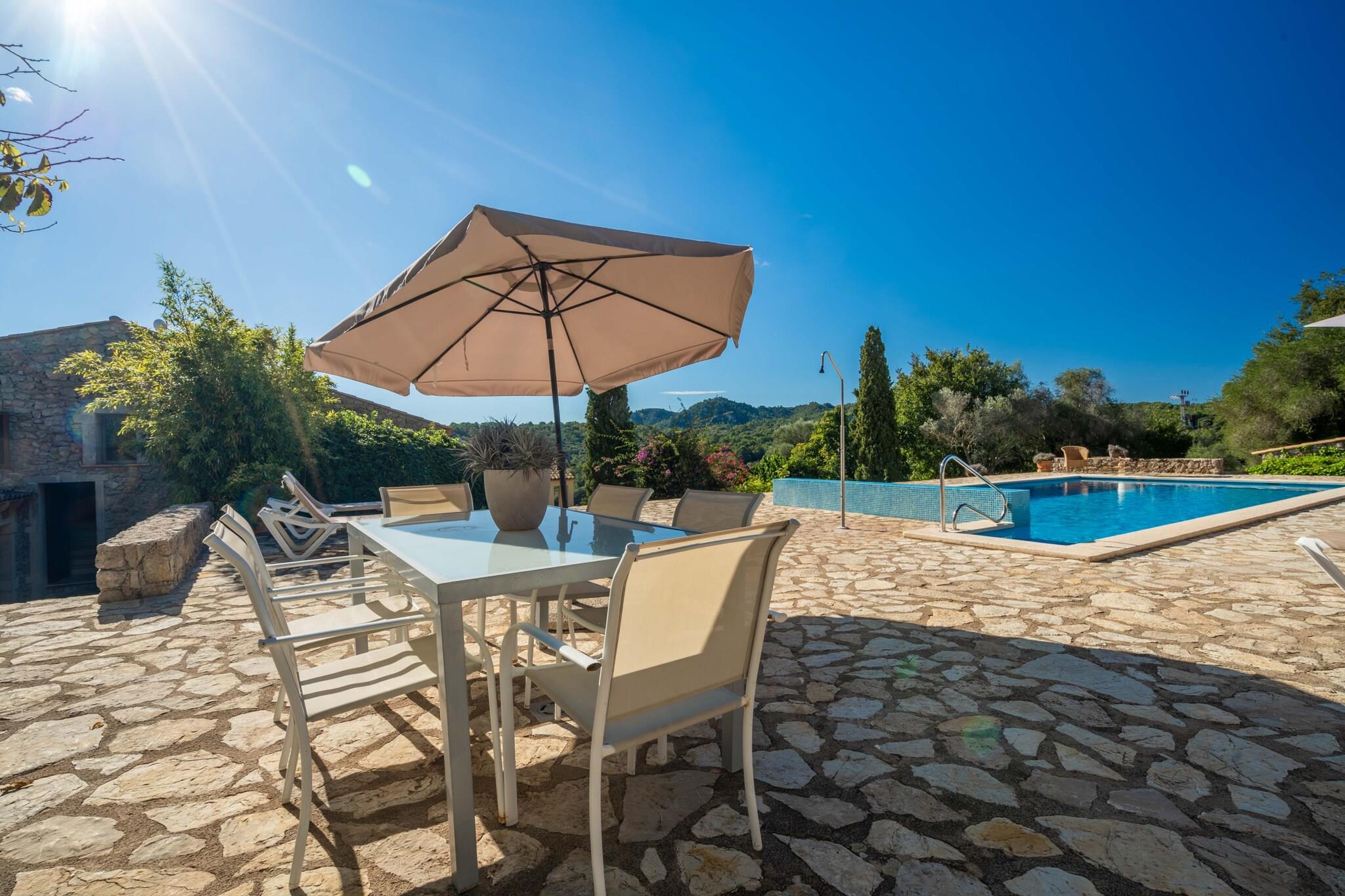 Denne indbydende LeXiclati-villa på 300 m² i Son Servera er perfekt til familier eller grupper på op til 12 gæster, og tilbyder seks soveværelser og fredelige landlige omgivelser med udsigt over bjergene og haven. Ejendommen er ideelt placeret i nærheden af ??topattraktioner - kun 5 km fra Golf de Pula, 13 km fra Cala Agulla-stranden og inden for rækkevidde af naturreservater, vandparker og charmerende byer som Artà og Manacor. Villaen har en privat swimmingpool, indhegnet have og terrasse med udendørsmøbler, ideel til at slappe af eller spise udendørs. Indenfor finder du en hyggelig opholdsstue med pejs, satellit-tv (spansk og tysk) og Wi-Fi. Det uafhængige køkken er fuldt udstyret med keramisk kogeplade, opvaskemaskine, kaffemaskine, brødrister og mere - perfekt til hjemmelavede måltider. Yderligere faciliteter omfatter centralvarme, vaskemaskine, grill, strygejern, pengeskab og udendørs parkering. Med sin familievenlige indretning og nærhed til strande, golf og kulturelle steder tilbyder denne villa en velafrundet mallorcansk flugt. Lejelicensnummeret er VT/1844