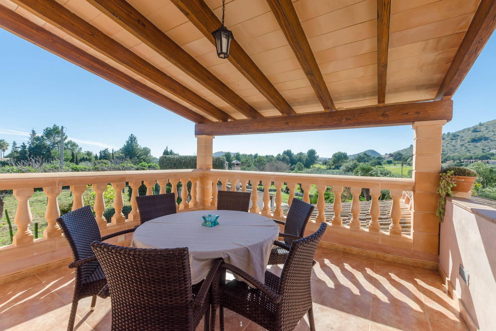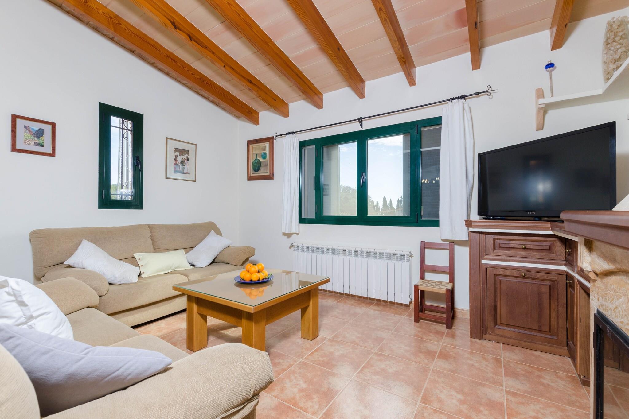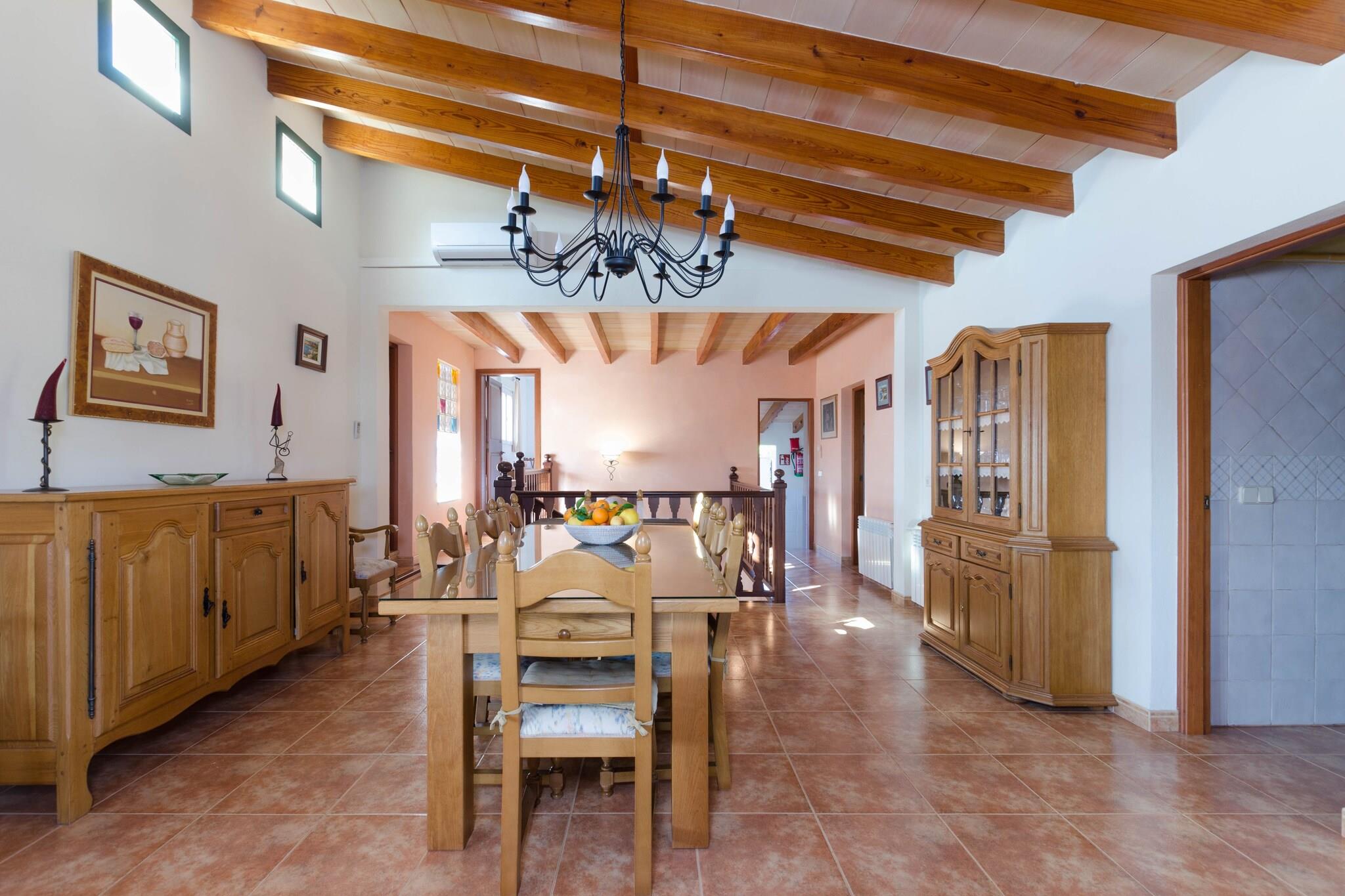 Indbydende udendørs rum Træd ud i det fri og opdag en privat saltvandspool, 9 x 4 meter, med en dybde på 1,3-1,7 meter, ideel til forfriskende svømmeture. Omkring poolen er 8 liggestole perfekte til at sole sig i solen eller læse under pergolaen. Nyd måltider på den rummelige terrasse med grill og siddepladser, eller tag til den øverste terrasse for at nyde panoramaudsigten over landskabet. Hvert hjørne af haven er designet til at skabe rolige øjeblikke med venner eller familie. Komfortable opholdsområder Ovenpå byder villaen dig velkommen med en lys stue-spisestue med AC og satellit-tv. Tilstødende er køkkenet, fuldt udstyret med en keramisk kogeplade, plus et vaskerum med vaskemaskine, tørretumbler, strygejern og strygebræt. Den øverste etage har også to soveværelser, hver med en-suite badeværelser og AC. I stueetagen rummer yderligere tre soveværelser resten af ??familien eller gruppen, med to med to enkeltsenge og en dobbeltseng. En barneseng og høj stol er til rådighed, og huset har olie centralvarme for at sikre komfort under hele dit ophold. Praktisk beliggenhed i nærheden Villaen ligger 4 km fra Son Servera, hvor barer, restauranter og supermarkeder er nemme at nå. Stranden Platja sa Marjal ligger kun 5 km væk, perfekt til en dag ved havet. Golfentusiaster vil sætte pris på Son Servera Golfbane, kun 6 km fra huset. Uanset om du udforsker kysten, nyder det lokale køkken eller slapper af derhjemme, tilbyder denne ejendom et fredeligt tilflugtssted med alt det væsentlige inden for rækkevidde.