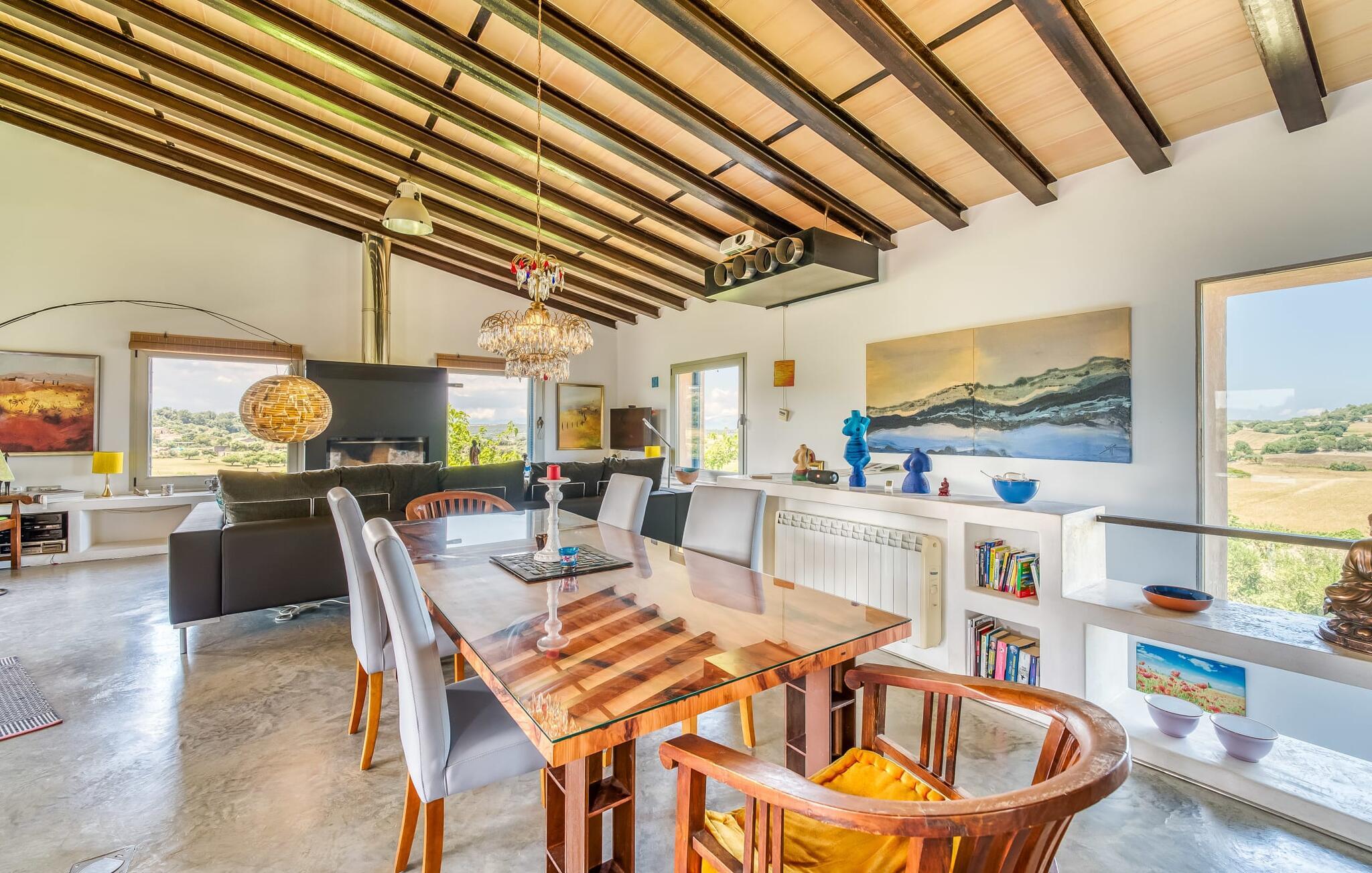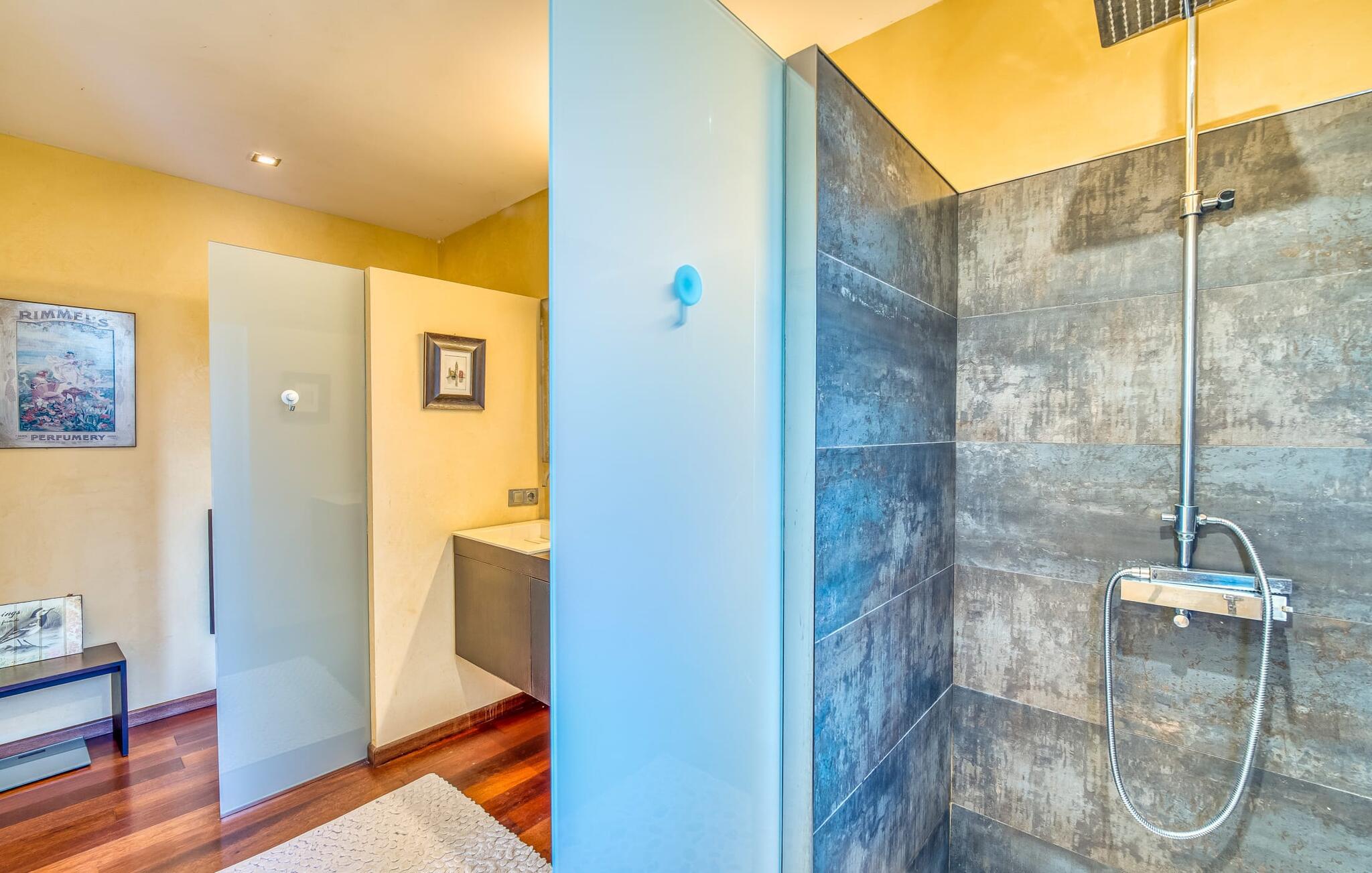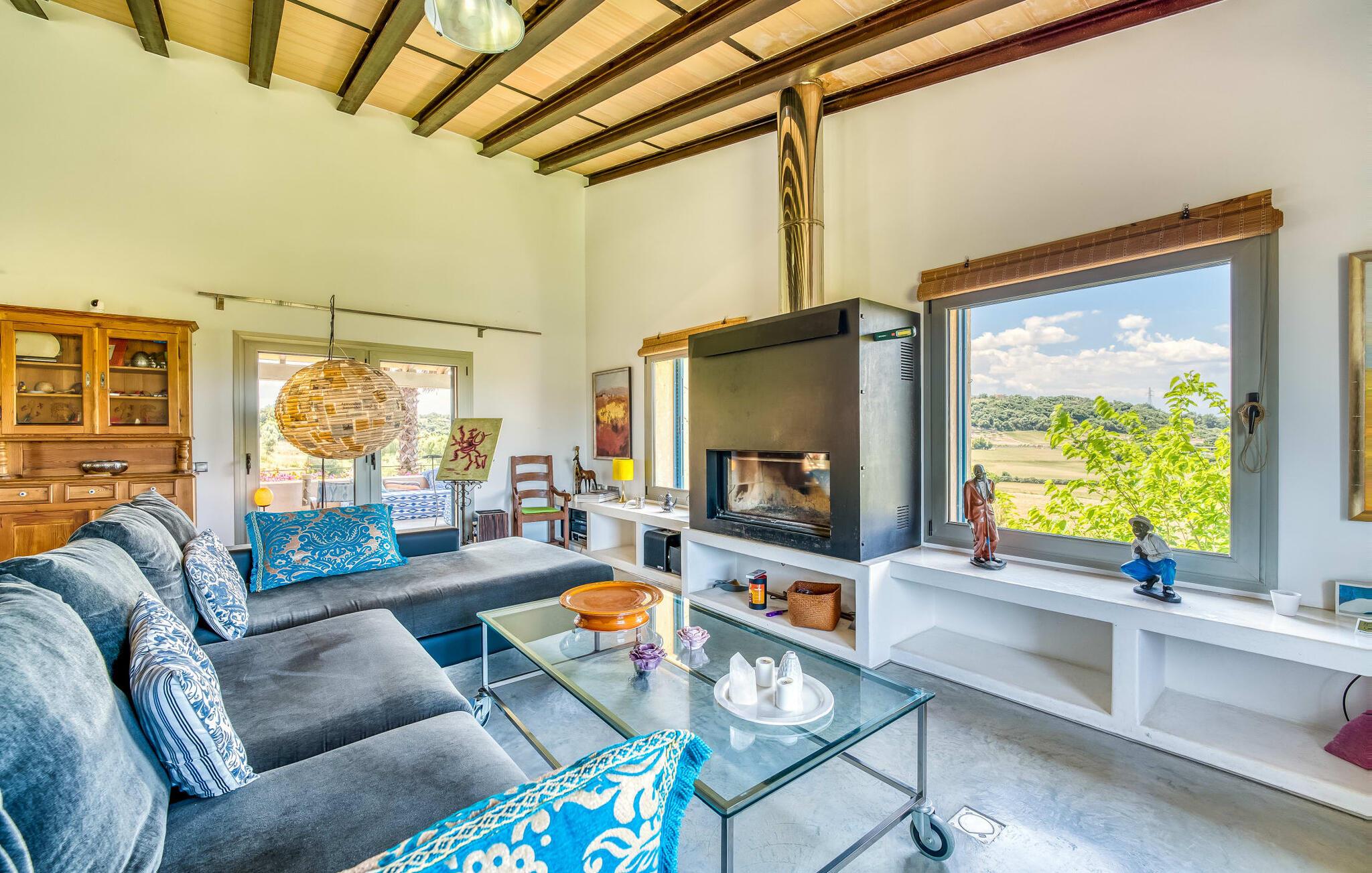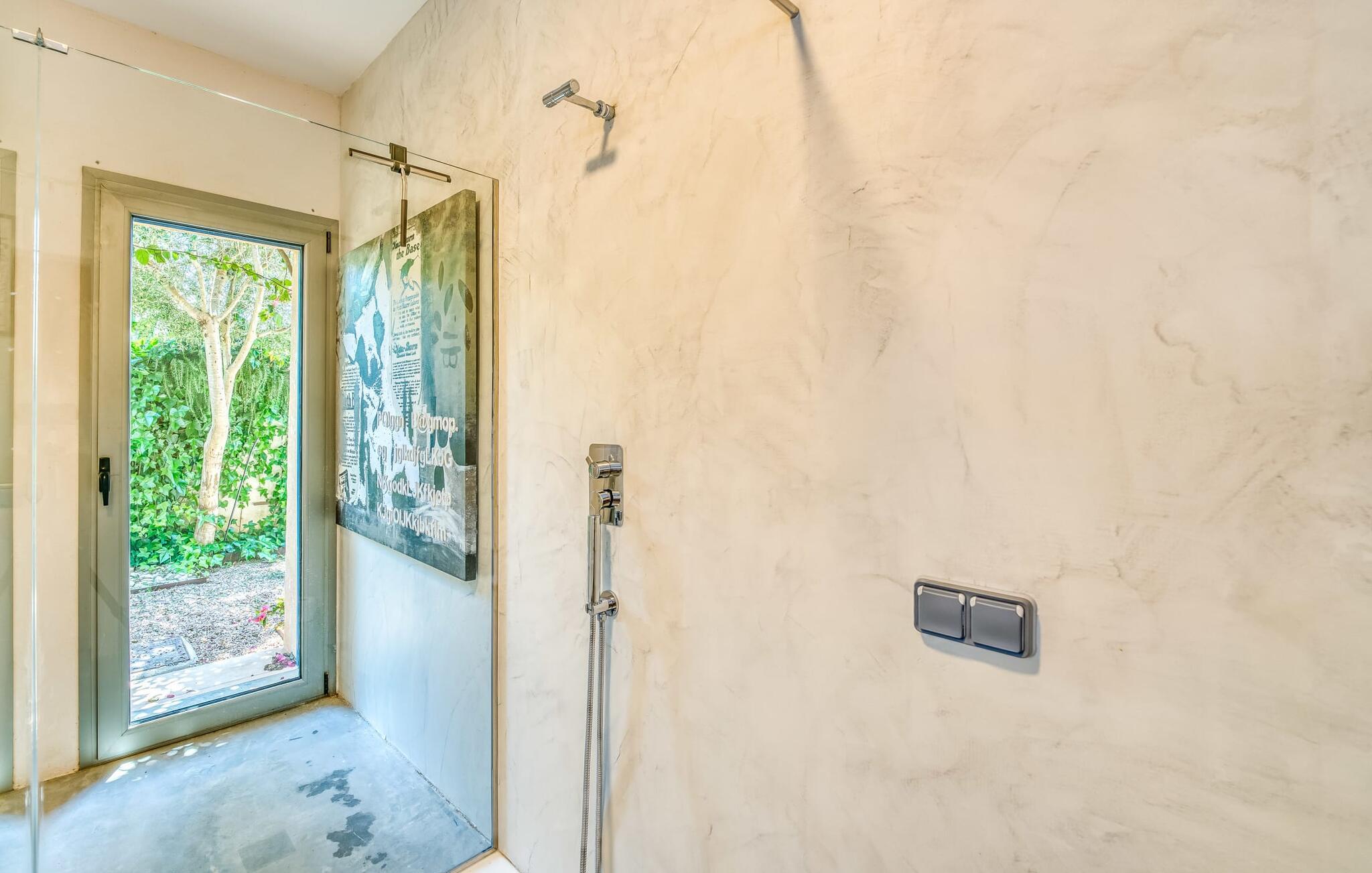 Feriehuset "Son Talent" har en sensationel beliggenhed på en bjergskråning midt i det smukke landskab på den østlige del af Mallorca. Terrasserne byder på en fantastisk udsigt over Tramuntana-bjergene. Haven er hjemsted for duftende citron-, mandarin- og appelsintræer og gemmer på hyggelige steder i skyggen af palmer, oleandere og oliventræer. Takket være en let brise inviterer den overdækkede terrasse langs huset jer til at blive hængende, mens I spiser og tage en afslappet lur i den hyggelige lounge. På den anden side af poolen er der endnu en halvcirkelformet terrasse. Den er udstyret med et udendørs køkken med grill og en smuk udendørs bruser. Poolen har et modstrømssystem og en vandfaldsbruser. Kan I forestille jer, hvordan det er at forfriske jer selv i denne oplyste pool under en imponerende stjernehimmel på varme sommernætter? Det indre af ferieboligen er lige så kærligt designet som det ydre. Den farverige, kreative udsmykning formidler livsglæde og en hjemlig følelse. Den rummelige, lyse opholdsstue med specialfremstillede hylder, en behagelig lædersofa og en imponerende pejs flyder glat ind i spisepladsen og et åbent, moderne køkken. Alle vinduer har en vidunderlig udsigt over landskabet. Fra stuen fører en trappe ned til kælderen. Der er fire individuelt indrettede soveområder. Tre af dem har hver deres udgang til haven og aircondition. To af dobbeltværelserne har eget badeværelse. De to andre deler eget badeværelse. Der er også et gæstetoilet på øverste stueplan. Huset er udstyret med varme, musikanlæg og stabilt WiFi. Feriehuset ligger på en stor kuperet grund på den østlige del af Mallorca. Manacor, 6 km væk, byder på gode indkøbsmuligheder. Forskellige sandstrande på østkysten ligger 20-25 km væk.