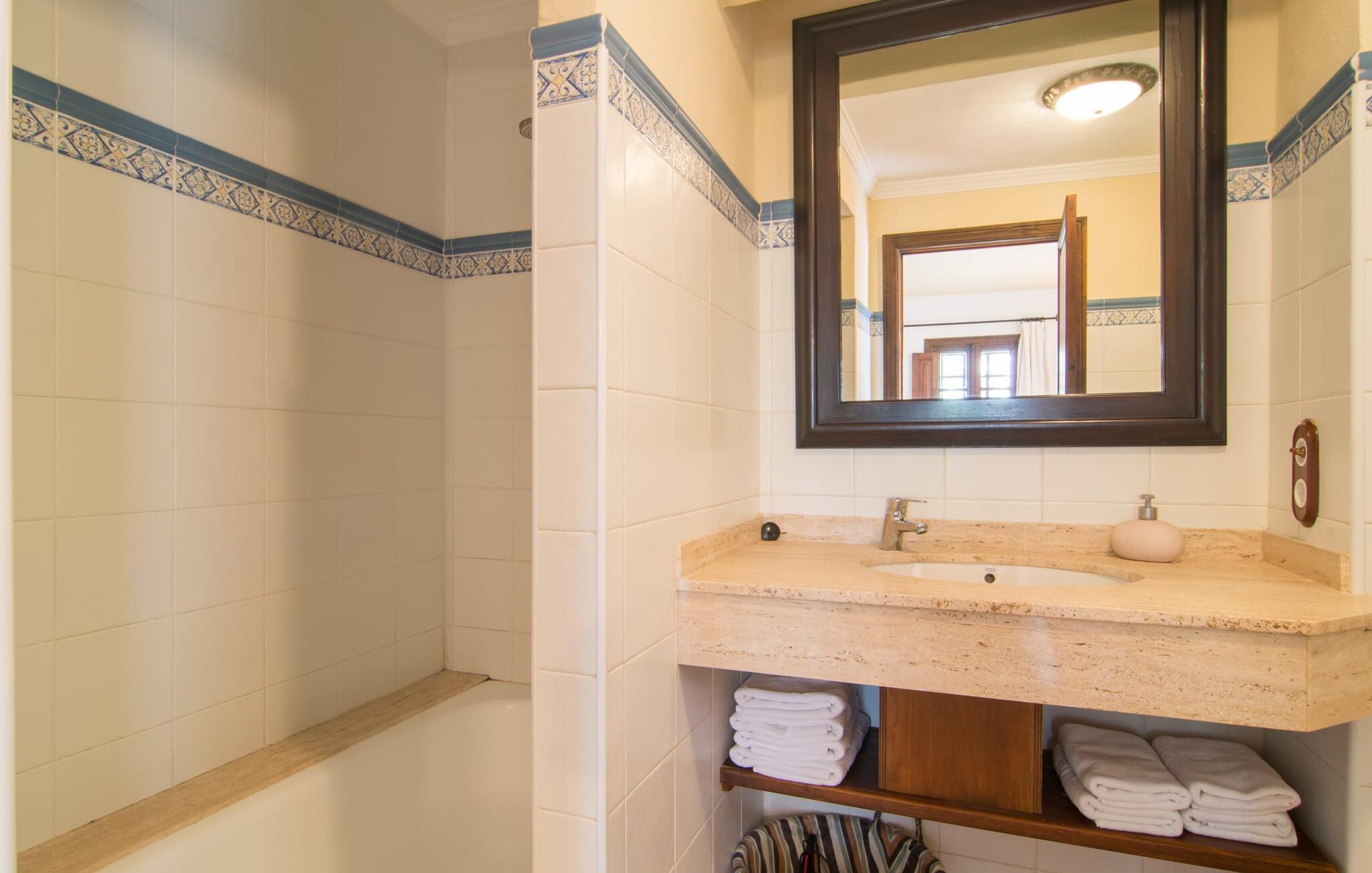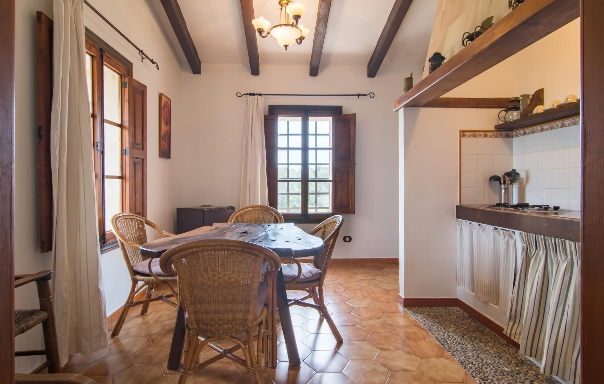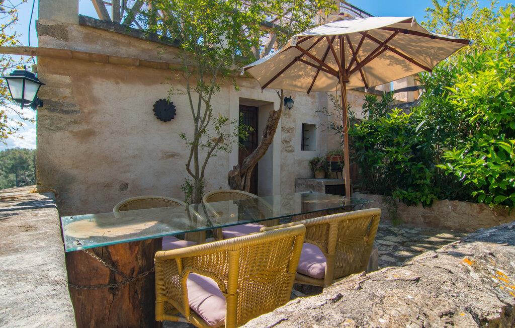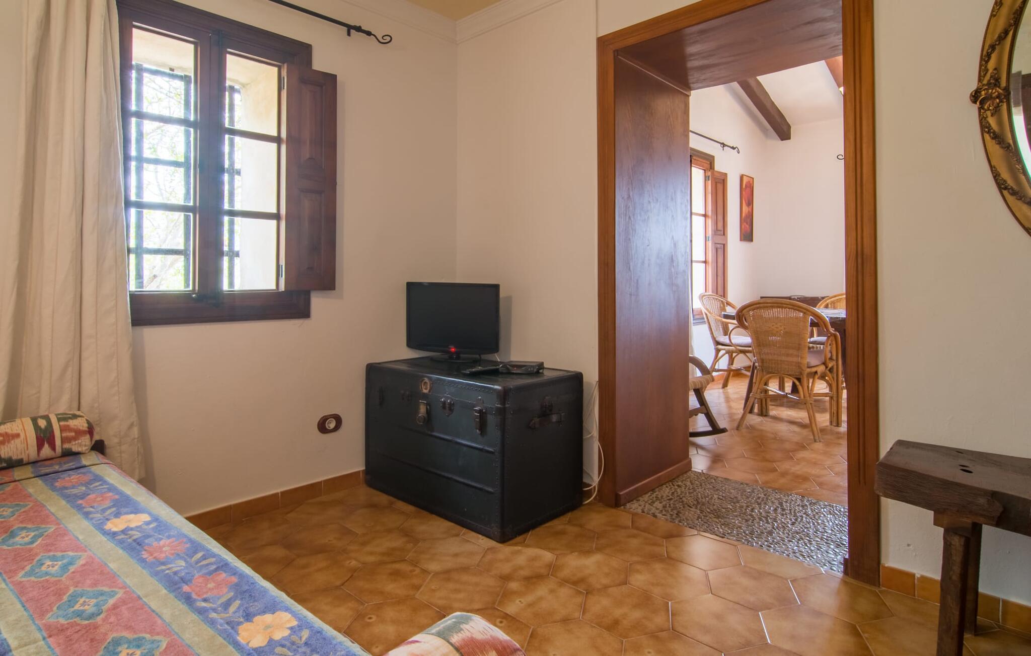Lejligheden "Son Torrat Es Sostre" er et charmerende minihus i det maleriske agriturismeresort "Son Torrat" i det landlige Mallorca, nær Petra. Ejendommen ligger på en bjergskråning og har rustikke naturstensbygninger omgivet af frodigt middelhavslandskab og har sin egen frugthave. Gæsterne har masser af plads til at slappe af og nyde udendørs aktiviteter som bordtennis og volleyball samt en fælles pool med liggestole og parasoller. En særlig babypool er tilgængelig for yngre besøgende, mens et unikt spabad i læ af en stenhule giver et romantisk tilflugtssted. Lejligheden har en privat solterrasse med spisemøbler, der beriger udendørsoplevelsen. Indenfor afspejler møblerne en harmonisk blanding af rustik charme og komfort med lyse vægge, synlige bjælker og naturstenselementer. Opholdsstuen har en komfortabel sofa og et spisebord lavet af træskiver samt et praktisk køkken med terracotta vaske. Layoutet er praktisk, med alle bekvemmeligheder på ét plan, herunder et soveværelse med dobbeltseng og et badeværelse med brusebad. For optimal adgang til resortet anbefaler vi en terrænudlejningsbil. Hvis I elsker fred og natur og sætter pris på smukke landskaber, så er I kommet til det rette sted. Den smukke, maleriske og rustikke ferielejlighed "Son Torrat Es Sostre" er beliggende i en absolut rolig beliggenhed på en blid skråning, omgivet af smuk natur i den landlige centrum af øen, som er særligt berømt for sin regionalt dyrkede vine Cabernet Sauvignon og Chardonnay og Merlot ligger 4,2 km derfra, mens den nærmeste strand ligger 20 km derfra.