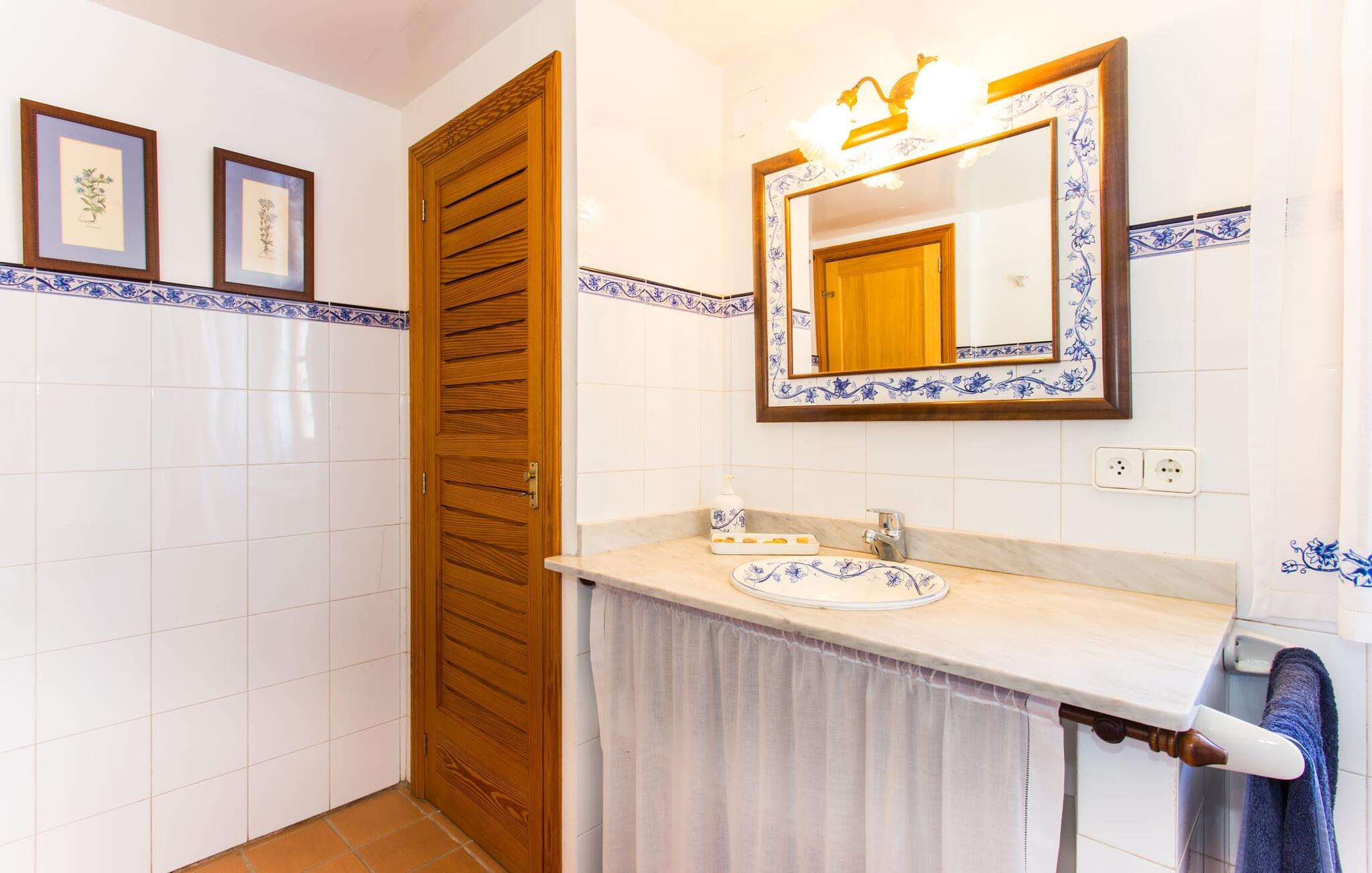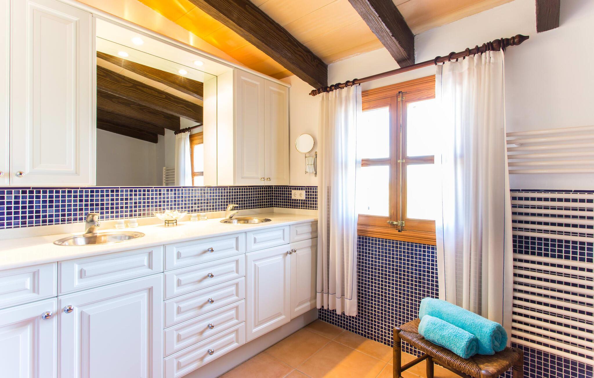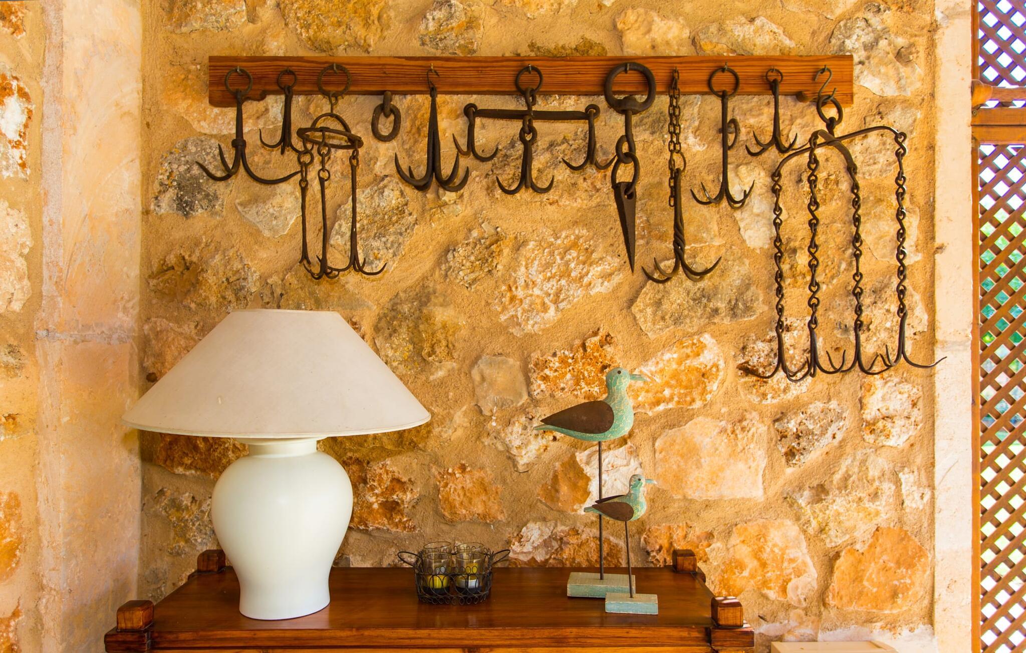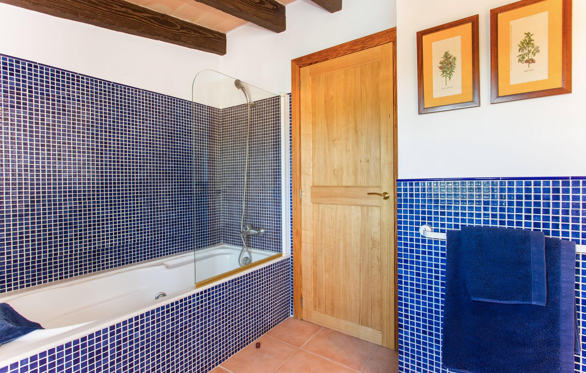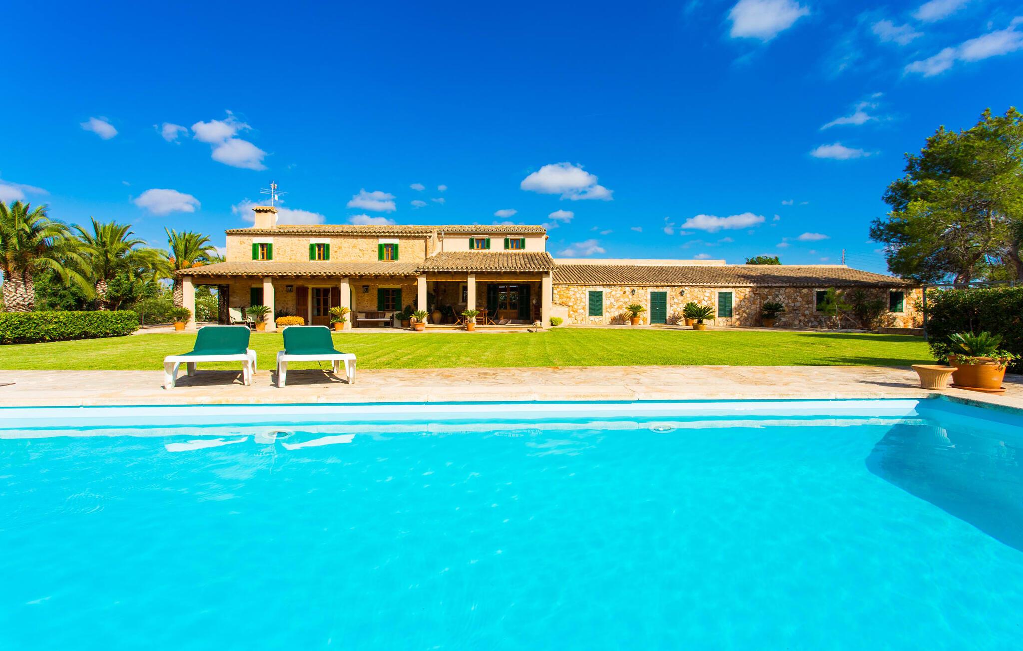 Har I altid drømt om en afslappende ferie i rolige omgivelser, en landlig idyl og nem adgang til de typiske østrande? Så er villaen "Son Viquet" lige noget for jer! I kan forvente en yderst hyggelig, kærligt møbleret atmosfære og en behagelig forbindelse til bekvemt forbundne områder. Den private ejendom er beliggende i en tyndt befolket villaregion og er let tilgængelig via asfalteret vej. En stor og velholdt have byder på en stor velkomst og inviterer til at gå på opdagelse i omgivelserne. Mange palmer og andre middelhavsplanter dekorerer rummene og skaber en fortryllende atmosfære, hvor I vil nyde at tilbringe tid. En hængekøje tilføjer til den indbydende atmosfære. Der er endda et fodboldmål for unge og gamle spillere. Det 10 m store bassin, som nemt kan nås via en halvcirkelformet trappe, giver den nødvendige forfriskning på varme sommerdage: Svøm om morgenen, svøm et par længder og nyd forfriskningen, der breder sig i hele jeres krop! Glem ikke at læse en god bog og nyde timers udendørs aktivitet eller under det smukke træloft med en drink inden for rækkevidde! En stor overdækket terrasse er placeret foran huset og har et spisebord med yderligere siddepladser: dette er det rigtige sted til morgenmad, hvor I kan sidde sammen og planlægge resten af dagen med udsigt til haven og den blå himmel . Men det er også hyggeligt at sidde her om aftenen, og hvis I tænder for grillen i tide, kan I fejre en kulinarisk BBQ sidst på dagen. En rustik, hyggelig atmosfære venter jer inde i villaen: traditionelle synlige bjælker, terracotta flisegulve og naturstenselementer på væggene skaber en individuel og meget hyggelig atmosfære. Brugen af diskrete, lyse farver understreger den indbydende effekt, det samme gør de nøje udvalgte antikke møbler og den klassiske udsmykning. I stueetagen er der et rummeligt køkken med en ø og et stort spisebord, der indbyder til at lave mad og spise sammen. Det lyst indrettede værelse er fuldt udstyret med ovn, komfur, køle/fryseskab kombination, mikroovn, opvaskemaskine, elkedel og filterkaffemaskine og giver derfor et godt grundlag for selvstændig selvforsyning. Find jeres personlige yndlingssted i den hyggelige stue med et separat læsehjørne under trappen og nyd afslapningsstunderne – pejsen er ikke i brug, men skaber stadig en hjemlig atmosfære. På dette niveau er der også et badeværelse med badekar, mens der på øverste etage er tre separate soveværelser, alle med gule vægge og yderligere to rummelige badeværelser, et af dem en-suite. Til en afslappende nat er der to 1,80 x 2,00 m senge og to 0,90 m x 2,00 m senge til rådighed. Et strygejern og to hårtørrere er tilgængelige på stedet, og I behøver ikke at tage dem med jer - det sparer plads i jeres kuffert! Campos selv er en ret fredelig by, men den er meget livlig på markedsdage (torsdage og lørdage). Udover regionale landbrugsprodukter som frugt og grønt tilbydes der også andre ting som souvenirs. Havneområdet i den tidligere fiskerby Colonia de Sant Jordi (21 km) er meget indbydende, måske vil I tage et kig? Hvis I elsker en badeferie, er denne villa det rigtige sted for dig: de indbydende strande på sydøstkysten, herunder den familievenlige Es Trenc strand, er nemme at nå med en lejebil. Den rummelige villa "Son Viquet" er beliggende i landlige omgivelser på en malerisk ejendom, kun 10 minutter i bil øst for Campos. I Campos finder I barer, restauranter og butikker til jeres daglige behov. Køreturen til Mallorcas sydlige strande er ikke langt fra dette feriehus. Mallorcas livlige hovedstad Palma kan nås på omkring 40 minutter i bil.