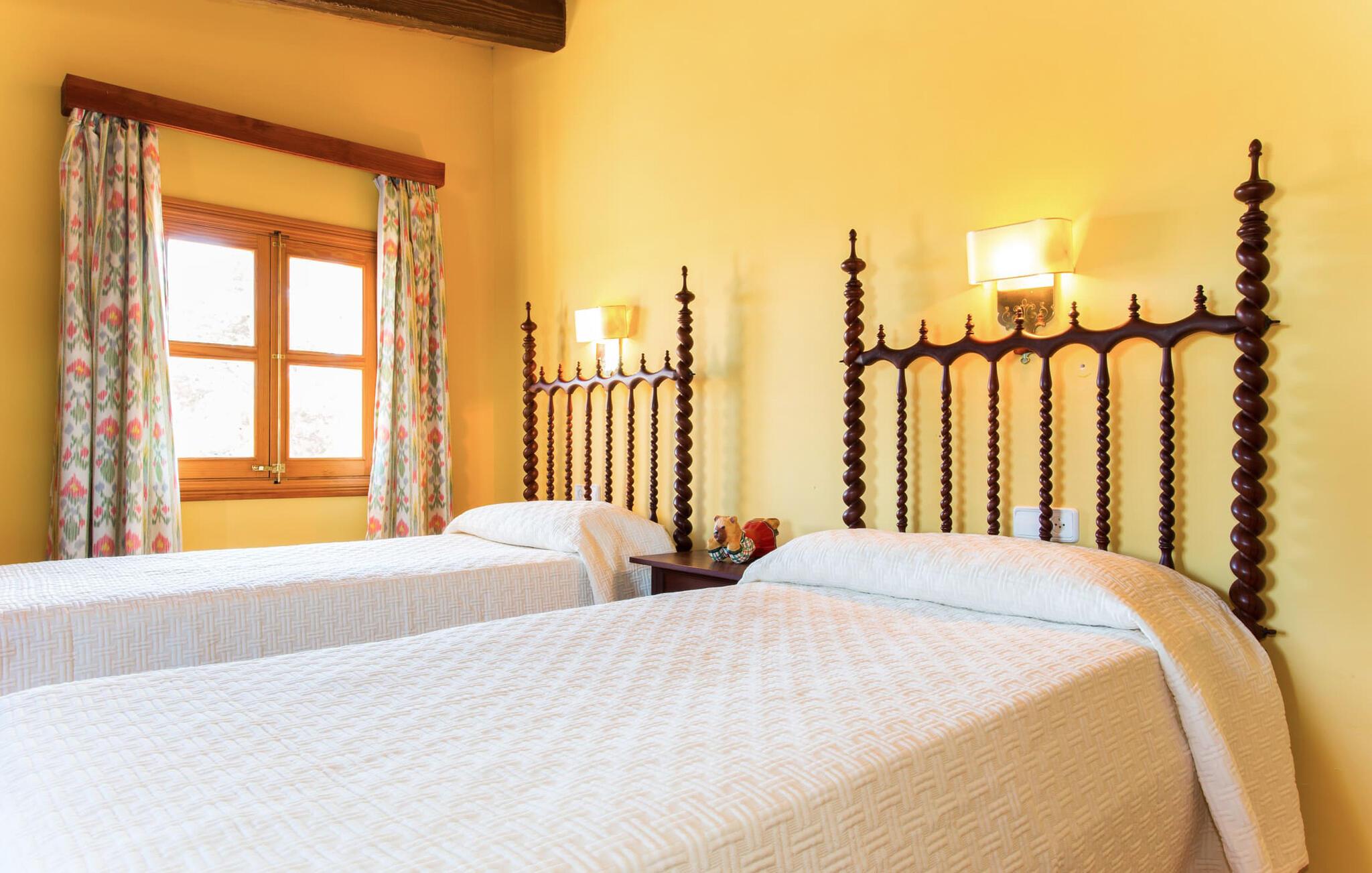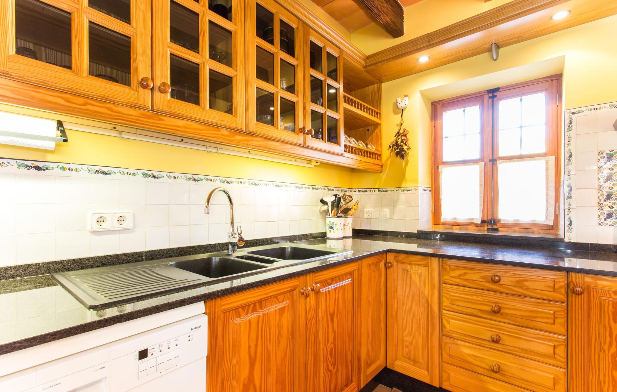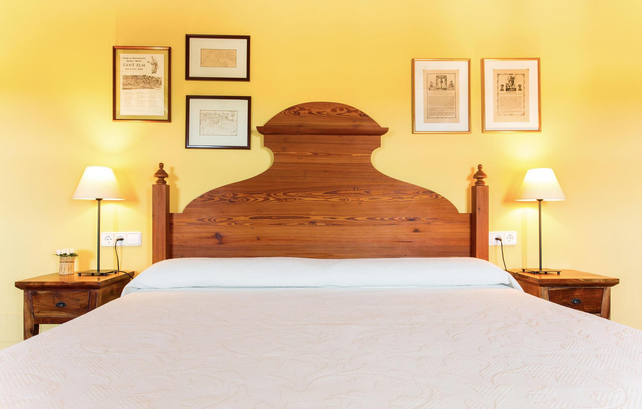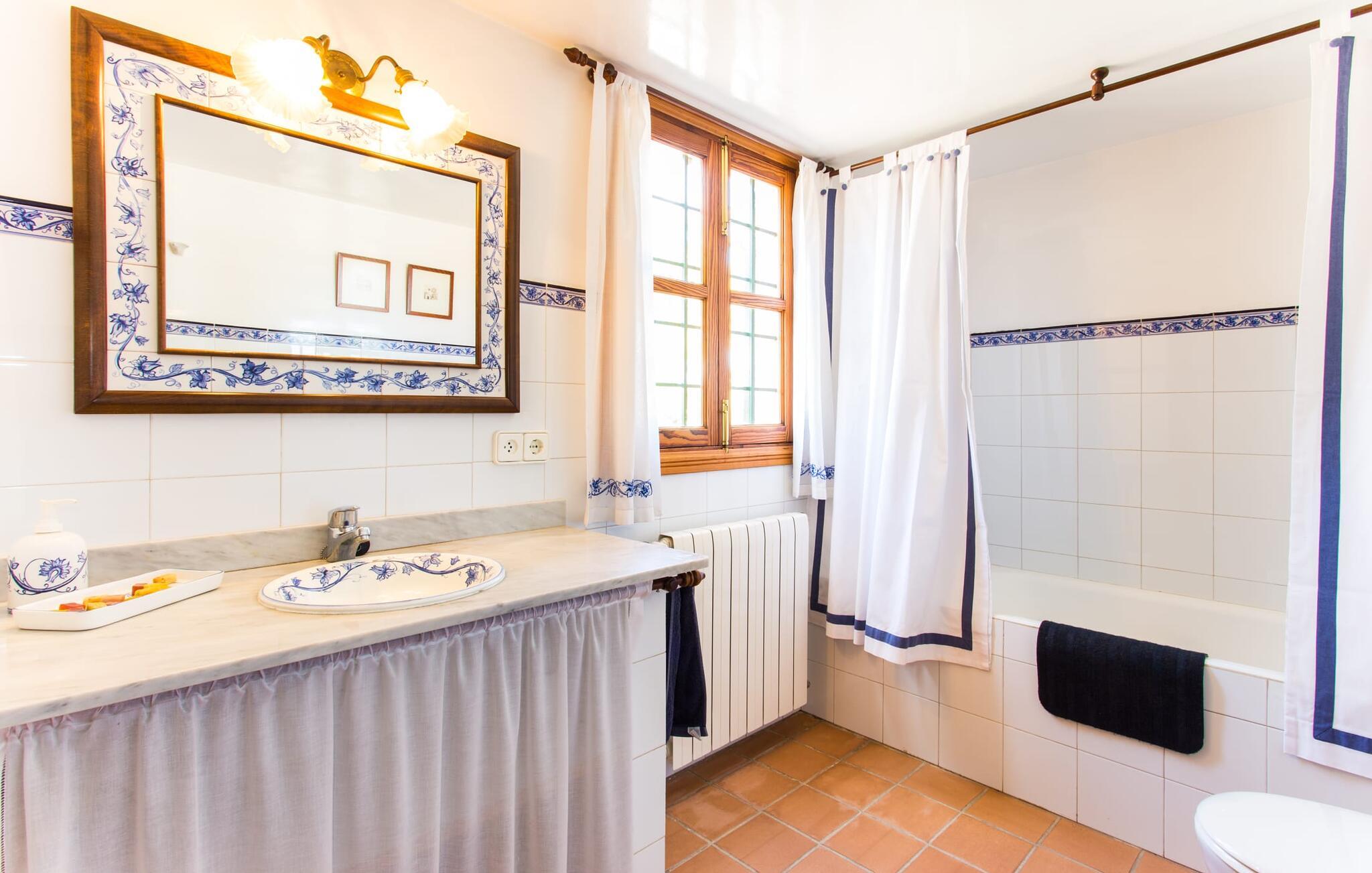 Har I altid drømt om en afslappende ferie i rolige omgivelser, en landlig idyl og nem adgang til de typiske østrande? Så er villaen "Son Viquet" lige noget for jer! I kan forvente en yderst hyggelig, kærligt møbleret atmosfære og en behagelig forbindelse til bekvemt forbundne områder. Den private ejendom er beliggende i en tyndt befolket villaregion og er let tilgængelig via asfalteret vej. En stor og velholdt have byder på en stor velkomst og inviterer til at gå på opdagelse i omgivelserne. Mange palmer og andre middelhavsplanter dekorerer rummene og skaber en fortryllende atmosfære, hvor I vil nyde at tilbringe tid. En hængekøje tilføjer til den indbydende atmosfære. Der er endda et fodboldmål for unge og gamle spillere. Det 10 m store bassin, som nemt kan nås via en halvcirkelformet trappe, giver den nødvendige forfriskning på varme sommerdage: Svøm om morgenen, svøm et par længder og nyd forfriskningen, der breder sig i hele jeres krop! Glem ikke at læse en god bog og nyde timers udendørs aktivitet eller under det smukke træloft med en drink inden for rækkevidde! En stor overdækket terrasse er placeret foran huset og har et spisebord med yderligere siddepladser: dette er det rigtige sted til morgenmad, hvor I kan sidde sammen og planlægge resten af dagen med udsigt til haven og den blå himmel . Men det er også hyggeligt at sidde her om aftenen, og hvis I tænder for grillen i tide, kan I fejre en kulinarisk BBQ sidst på dagen. En rustik, hyggelig atmosfære venter jer inde i villaen: traditionelle synlige bjælker, terracotta flisegulve og naturstenselementer på væggene skaber en individuel og meget hyggelig atmosfære. Brugen af diskrete, lyse farver understreger den indbydende effekt, det samme gør de nøje udvalgte antikke møbler og den klassiske udsmykning. I stueetagen er der et rummeligt køkken med en ø og et stort spisebord, der indbyder til at lave mad og spise sammen. Det lyst indrettede værelse er fuldt udstyret med ovn, komfur, køle/fryseskab kombination, mikroovn, opvaskemaskine, elkedel og filterkaffemaskine og giver derfor et godt grundlag for selvstændig selvforsyning. Find jeres personlige yndlingssted i den hyggelige stue med et separat læsehjørne under trappen og nyd afslapningsstunderne – pejsen er ikke i brug, men skaber stadig en hjemlig atmosfære. På dette niveau er der også et badeværelse med badekar, mens der på øverste etage er tre separate soveværelser, alle med gule vægge og yderligere to rummelige badeværelser, et af dem en-suite. Til en afslappende nat er der to 1,80 x 2,00 m senge og to 0,90 m x 2,00 m senge til rådighed. Et strygejern og to hårtørrere er tilgængelige på stedet, og I behøver ikke at tage dem med jer - det sparer plads i jeres kuffert! Campos selv er en ret fredelig by, men den er meget livlig på markedsdage (torsdage og lørdage). Udover regionale landbrugsprodukter som frugt og grønt tilbydes der også andre ting som souvenirs. Havneområdet i den tidligere fiskerby Colonia de Sant Jordi (21 km) er meget indbydende, måske vil I tage et kig? Hvis I elsker en badeferie, er denne villa det rigtige sted for dig: de indbydende strande på sydøstkysten, herunder den familievenlige Es Trenc strand, er nemme at nå med en lejebil. Den rummelige villa "Son Viquet" er beliggende i landlige omgivelser på en malerisk ejendom, kun 10 minutter i bil øst for Campos. I Campos finder I barer, restauranter og butikker til jeres daglige behov. Køreturen til Mallorcas sydlige strande er ikke langt fra dette feriehus. Mallorcas livlige hovedstad Palma kan nås på omkring 40 minutter i bil.