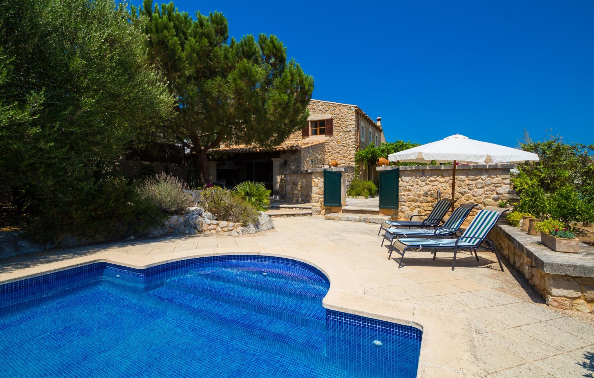 Villa "Sos Monjos" er en skjult perle, perfekt for dem, der sætter pris på charmen ved Artà. Denne smukt renoverede villa udstråler den typiske mallorcanske karakter. dekoreret med klatreplanter og duftende citron- og appelsintræer Den frodige vegetation inviterer jer til at nyde friske, lækre frugter samt en række af Grøntsager fra det tilstødende bed Udearealet har en solterrasse, der er sømløst forbundet med villaens naturhave, hvor I kan slappe af i solen eller på skyggefulde steder og nyde en forfriskende drink I Varme sommeraftener til kulinariske eventyr Gå ind gennem den brede indgang og opdag et rummeligt opholdsområde med pejs og satellit-tv, perfekt til hyggelige stunder indendørs. Køkkenet af høj kvalitet, udstyret med moderne hårde hvidevarer, byder på et åbent design, der flyder ud i spisepladsen og den overdækkede terrasse. På øverste etage finder I tre venligt møblerede soveværelser, der sikrer et afslappende feriested. Villaen "Sos Monjos" blev bygget for 250 år siden i den høje kant af bjergbyen Artà og fuldstændig restaureret i 2005. Den har en høj, idyllisk beliggenhed vest for Artà på en 4.000 m² stor grund med fantastisk udsigt over de grønne bakker. Den maleriske Den gamle bydel i Artà med sine smalle gader, barer, restauranter og butikker er let tilgængelig til fods. Om tirsdagen er der et ugentligt marked i byens centrum I stedet kan I nå flere naturlige strande på kun 10-15 minutter i bil.