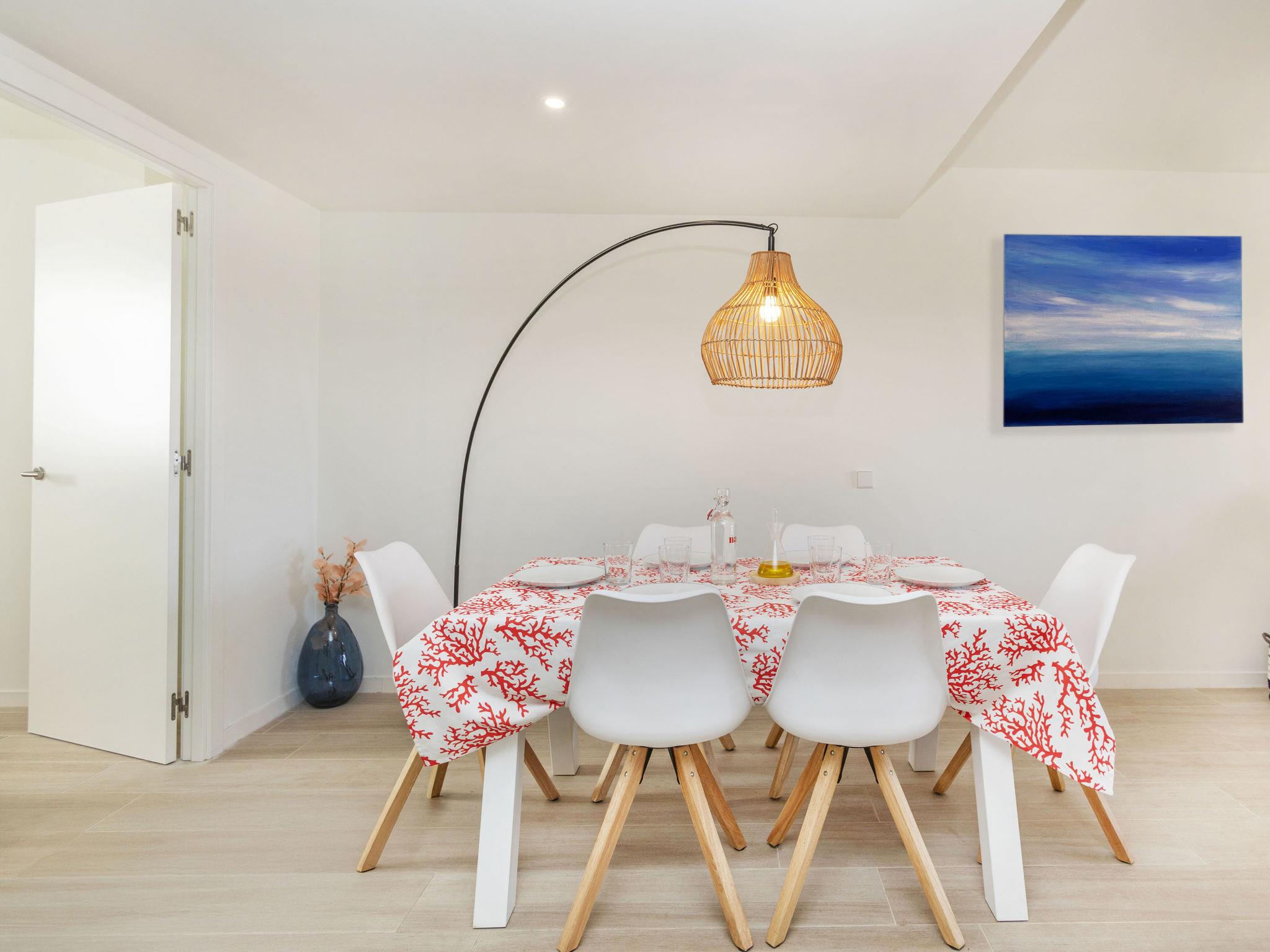 "El Fenua", 4-room apartment 109 m2 on 2nd floor. Very comfortable and cosy furnishings: living/dining room with dining table, satellite TV and air conditioning. Exit to the loggia. 1 room with 1 french bed (140 cm, length 190 cm), shower/WC, air conditioning and electric shutters. Exit to the loggia. 1 room with 1 bed (80 cm, length 190 cm), air conditioning and electric shutters. Exit to the loggia. 1 room with 1 french bed (140 cm, length 190 cm), air conditioning and electric shutters. Open kitchen (oven, dishwasher, 3 induction hot plates, kettle, microwave, freezer, electric coffee machine). Shower/WC. Heating, air-conditioning. Large balcony. Terrace furniture, deck chairs (2). Very beautiful view of the sea. Facilities: washing machine, iron, children's high chair, baby cot for up to 2 year olds, hair dryer. Internet (WiFi, free). Parking space n 10 (roofed). Please note: non-smokers only. HUTG-064723 // Reg. Nr.: ESFCTU00001701500055442200000000000000000HUTG-0647239