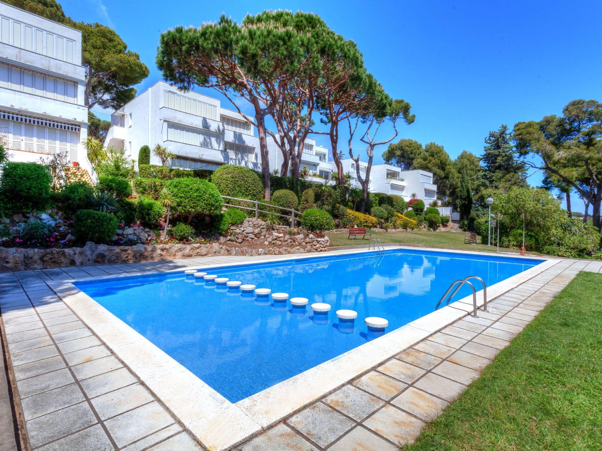 Comptat de Sant Jordi 2 km from Calonge: Apartment block "Byblos". In a quiet, sunny position, 120 m from the sea, 120 m from the beach, road to cross. For shared use: garden (fenced) with lawn, swimming pool angular (12 x 6 m, seasonal availability: 15.May. - 15.Oct.). Outdoor shower. Stepped path to the house. Public parking on the road. Shop 2 km, supermarket 2 km, bar 200 m, bus stop 300 m, sandy beach "Playa" 150 m. Sports harbour 7 km, golf course (18 hole) 5 km. Nearby attractions: Parque Acuatico Aquadiver 2 km. The owner does not accept any youth groups.
