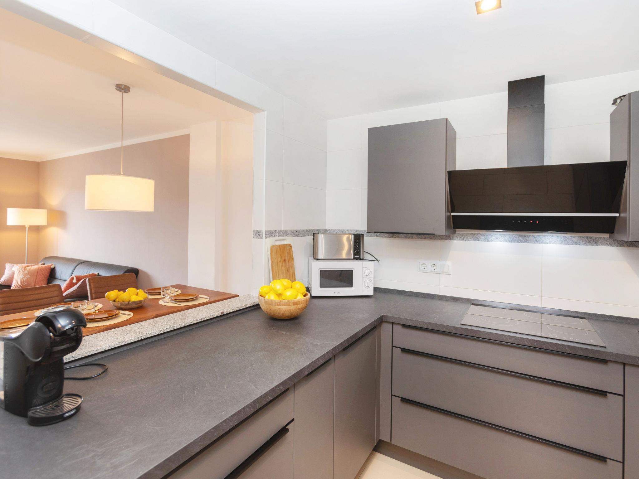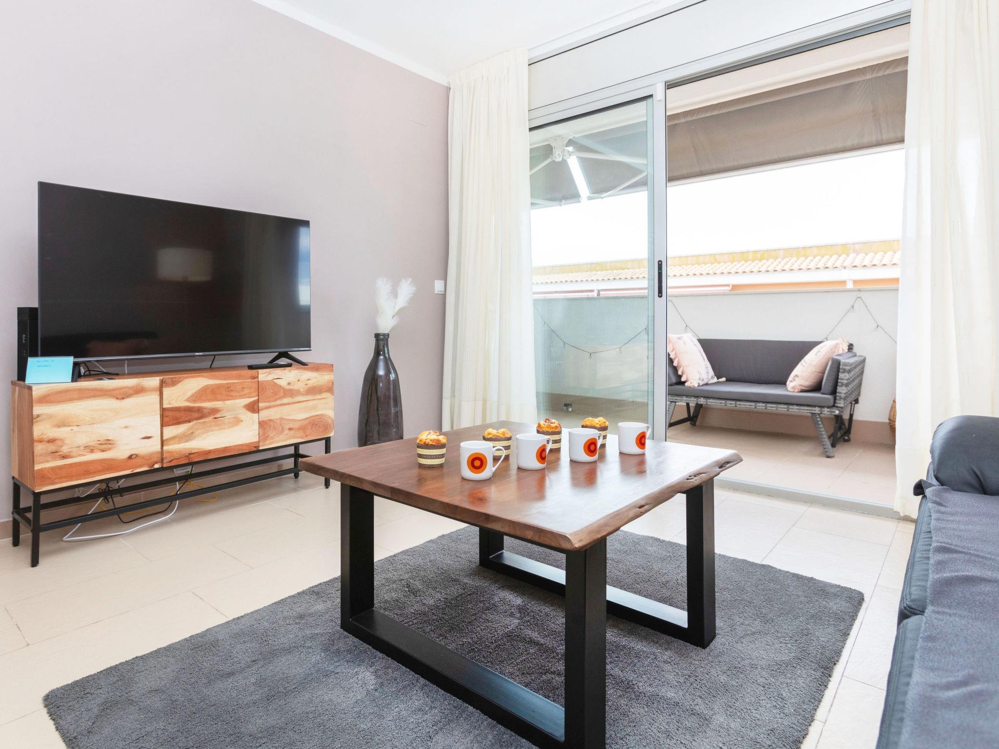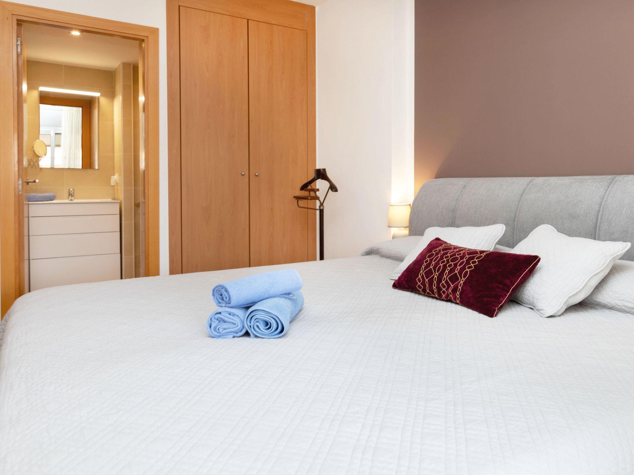 4-room apartment 65 m2 on 4th floor. Practical furnishings: living/dining room with digital TV and air conditioning. Exit to the terrace. 2 rooms, each room with 1 french bed (150 cm, length 190 cm), shower/WC. 1 room with 2 beds (90 cm, length 190 cm). Open kitchen (oven, dishwasher, 4 ceramic glass hob hotplates, toaster, kettle, microwave, electric coffee machine). Exit to the terrace. Shower/WC. No heating option. Terrace. Terrace furniture. Facilities: washing machine, iron, children's high chair, baby cot, hair dryer. Internet (WiFi, free). Parking space n 22. Please note: non-smokers only. HUTG-070421 // Reg. Nr.: ESFCTU0000170150004286860000000000000000HUTG070421831