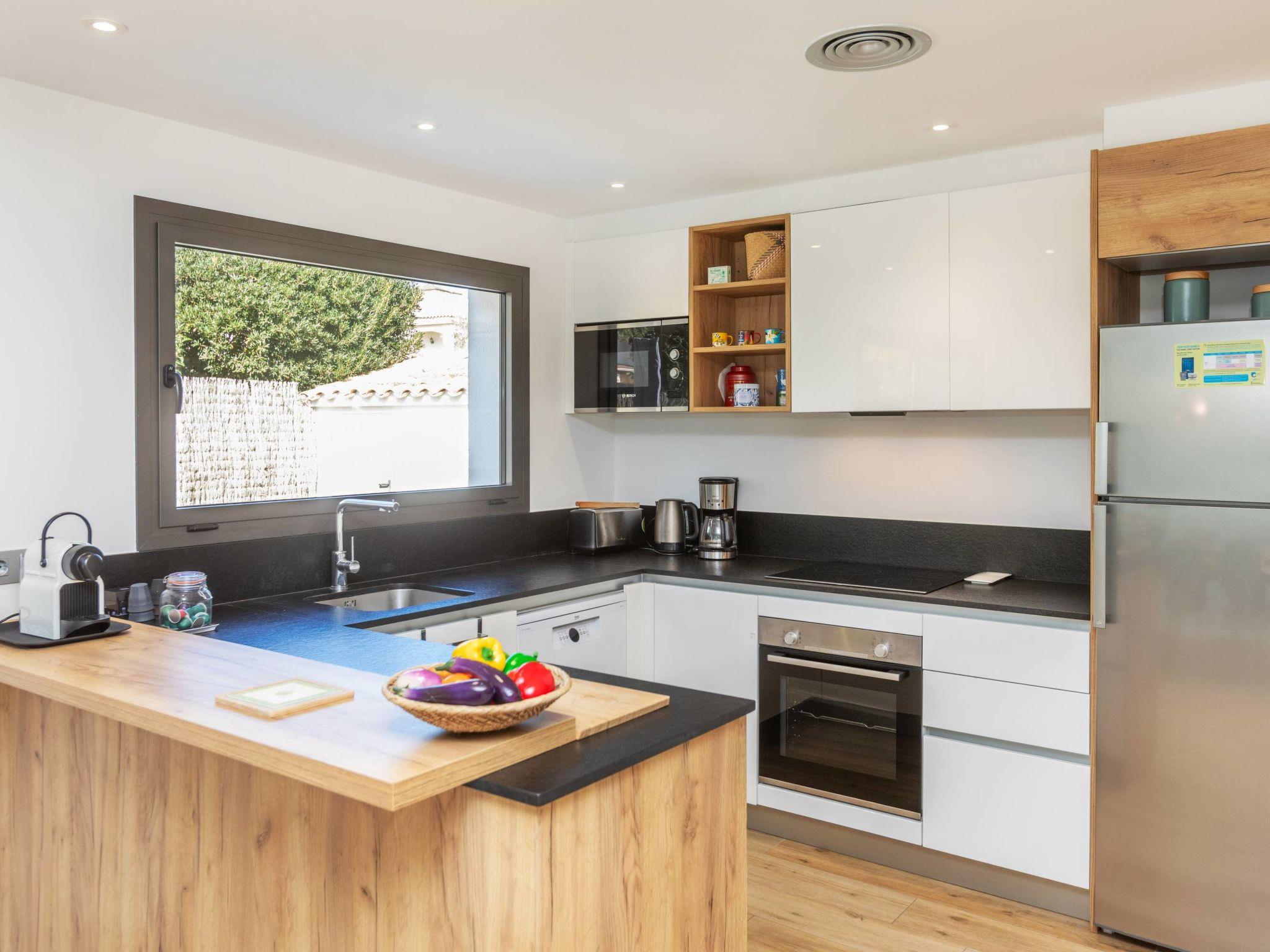 4-room house 120 m2. Spacious, fully renovated, beautiful and cosy furnishings: living/dining room with dining table, satellite TV, flat screen, hi-fi system, air conditioning, forced-air heating and electric shutters. Exit to the swimming pool. 1 room with 1 french bed (150 cm, length 190 cm), shower/WC, air conditioning, forced-air heating and electric shutters. Exit to the terrace, to the swimming pool. 1 room with 1 french bed (150 cm, length 190 cm), air conditioning, forced-air heating and electric shutters. 1 room with 2 beds (90 cm, length 190 cm), air conditioning, forced-air heating and electric shutters. Open kitchen (oven, dishwasher, 4 ceramic glass hob hotplates, toaster, kettle, microwave, freezer, electric coffee machine). Shower/WC. Small terrace, large patio. Terrace furniture, barbecue, deck chairs. Facilities: washing machine, iron, hair dryer. Internet (WiFi, free). Parking (fenced). Please note: non-smoking house. HUTG-042709 // Reg. Nr.: ESFCTU00001701500012613100000000000000000HUTG-0427093