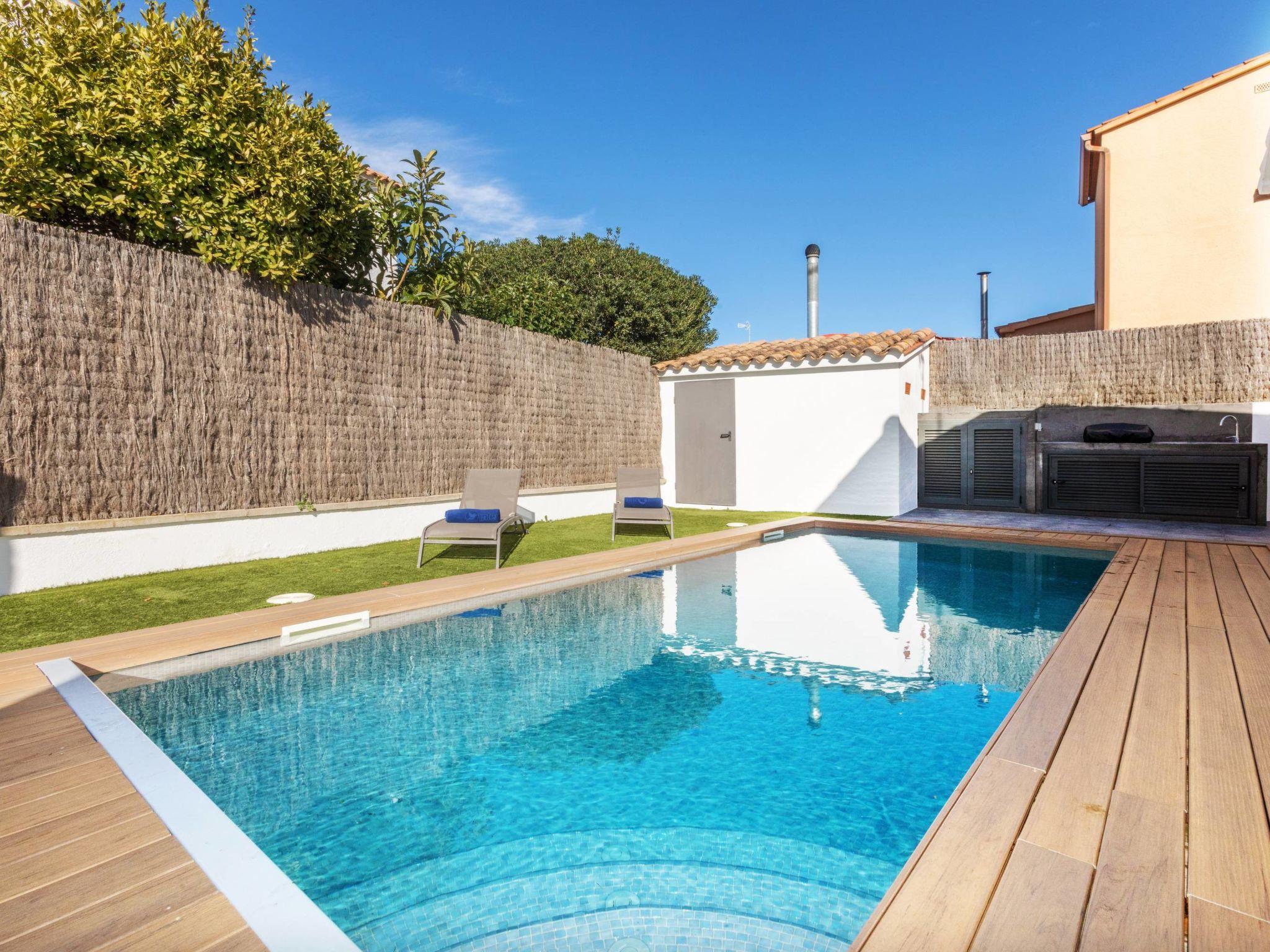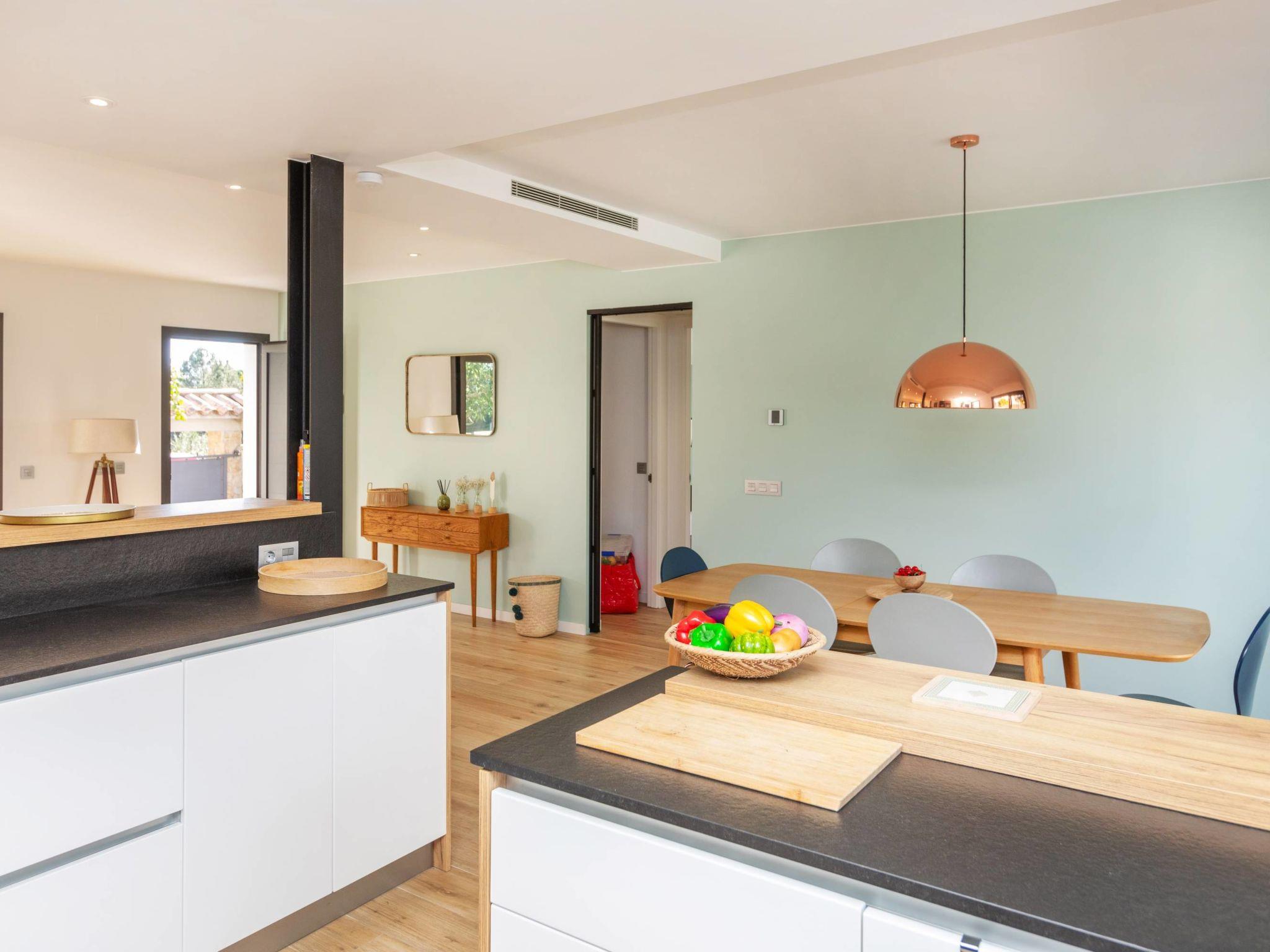 Puig ses forques 1 km from Sant Antoni de Calonge: Modern, beautiful, cosy single-family house "La Manzaneta", renovated. In the resort 1 km from the centre of Sant Antoni de Calonge, in a quiet, sunny position residential area (villas), traffic calmed area, 800 m from the sea. Private: garden (fenced) with lawn and trees, swimming pool angular (7 x 3 m, depth 100 - 200 cm, seasonal availability: 01.May. - 31.Oct.) with alarm system. Outdoor shower, garden furniture, barbecue, parking at the house on the premises. Supermarket 1 km, restaurant 1 km, bar 1 km, bus stop 500 m, railway station "Girona" 45 km, sandy beach "Sant Antoni de Calonge" 800 m. Sports harbour 5 km, golf course (18 hole) 15 km, tennis 4 km, minigolf 4 km, riding stable 12 km. Nearby attractions: Palamós - Centro, puerto y playa 2 km, Camí de Ronda - Calas Preciosas 3 km, Water Park Aquadiver 5 km, Via ferrata Cala del Molí 17 km, Peratallada - Pueblo medieval 18 km. The owner does not accept any youth groups. Neighbourhood highly sensitive to noise. Quietness and good behaviour expected.
