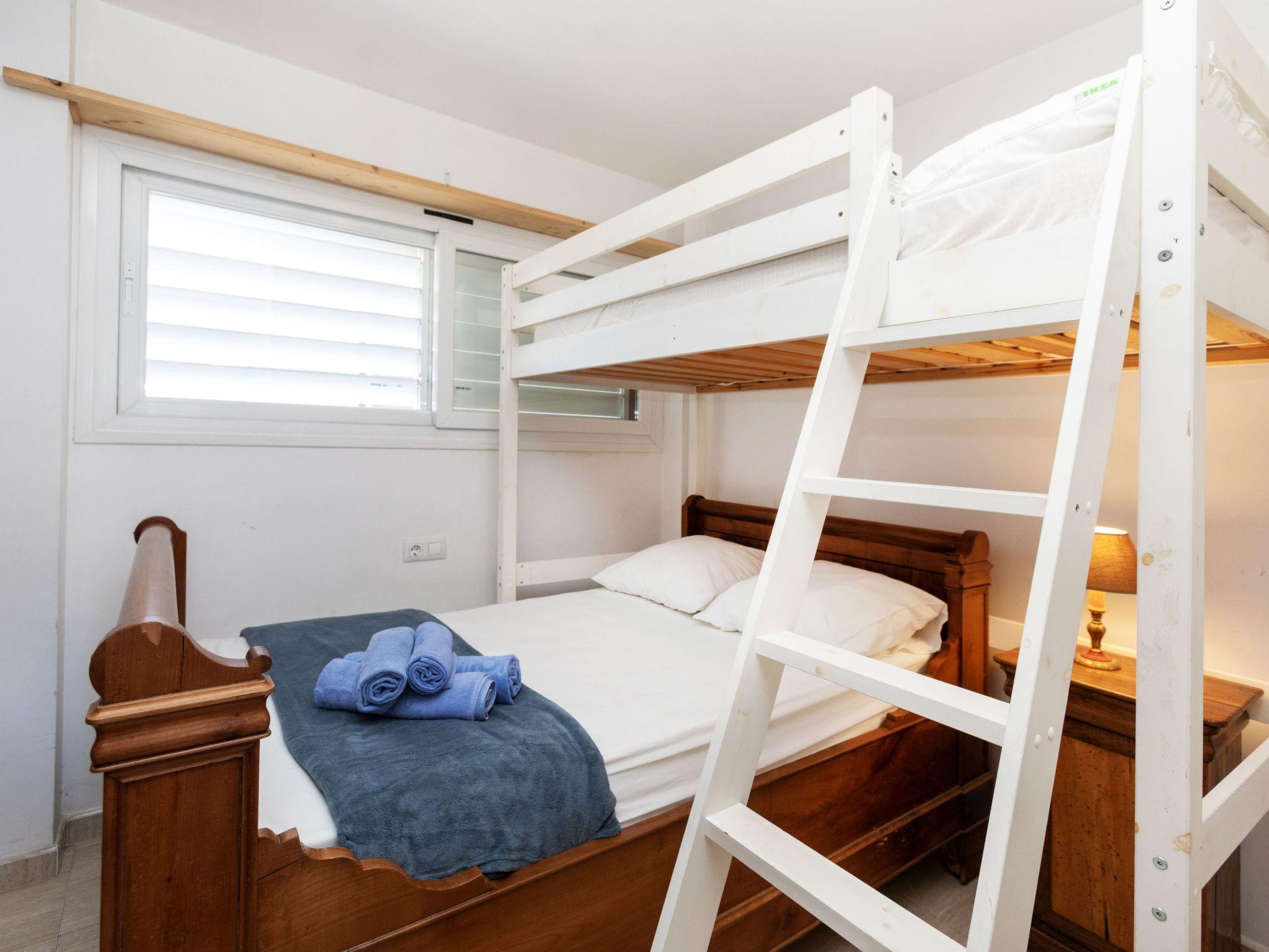 "El Moli", 3-room apartment 55 m2, on the ground floor. Practical furnishings: living/dining room with satellite TV. Exit to the terrace. 1 room with 1 bed (120 cm, length 190 cm), 1 x 1 bunk beds (90 cm, length 190 cm). 1 room with 1 french bed (140 cm, length 190 cm). Exit to the terrace. Kitchen (oven, dishwasher, 3 induction hot plates, toaster, kettle, microwave, electric coffee machine). Bath/WC. Air-conditioning, forced-air heating. Terrace. Terrace furniture. View of the swimming pool and the garden. Facilities: washing machine, iron, children's high chair, baby cot, hair dryer. Internet (WiFi, free). Parking space n 8. Please note: non-smokers only. TV only ES, FR. HUTG-039237 // Reg. Nr.: ESFCTU00001701500045674000000000000000000HUTG-0392379
