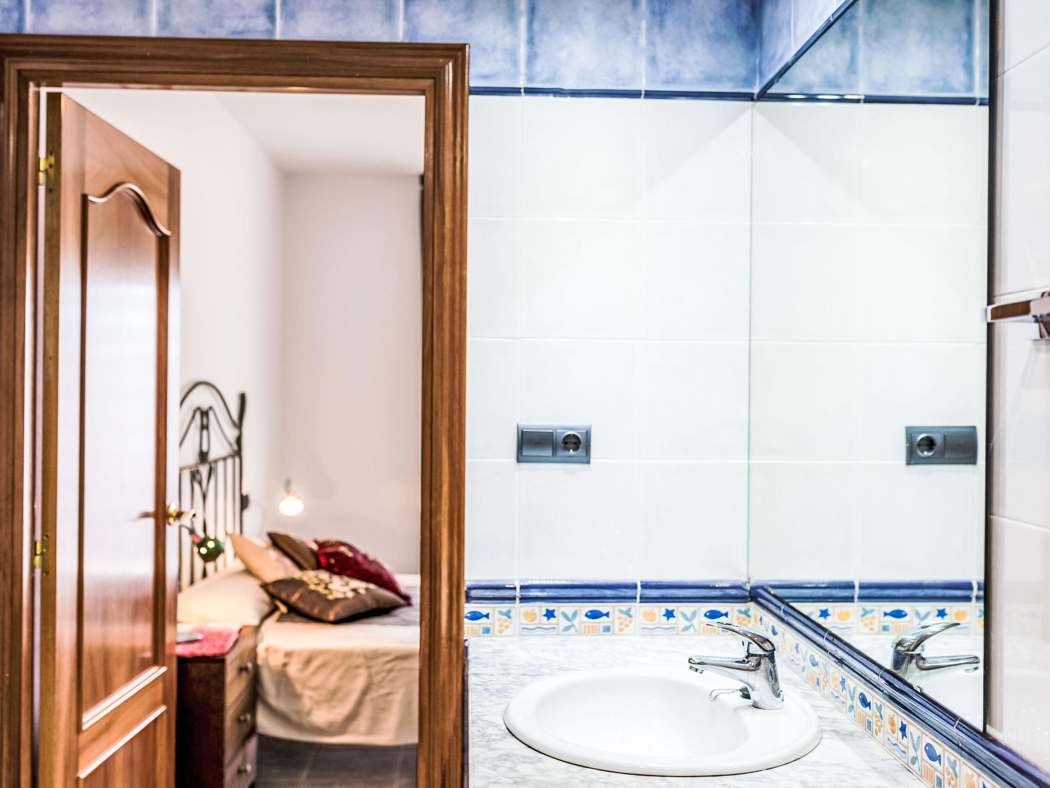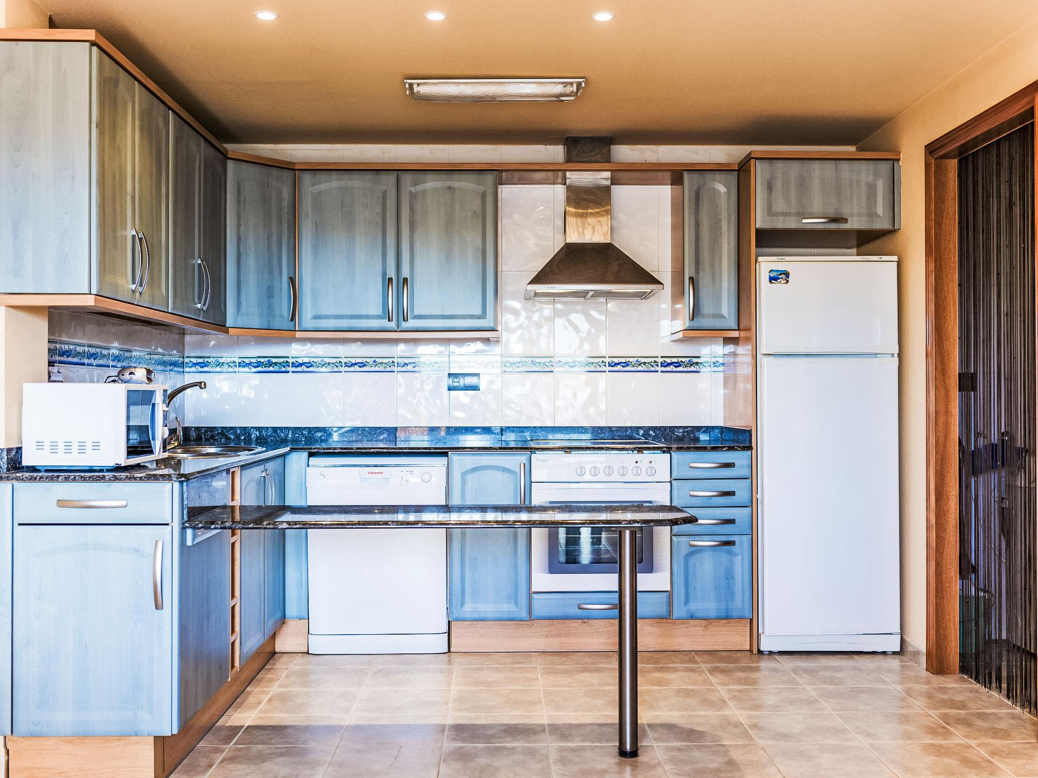 "Playa Delicias", 3-room apartment 58 m2 on 1st floor. Spacious and bright, fully, beautiful and cosy furnishings: living/dining room with digital TV, air conditioning and forced-air heating. Exit to the balcony. 1 room with 1 double bed (1 x 150 cm, length 190 cm), bath/bidet/WC, air conditioning and forced-air heating. Exit to the balcony. 1 room with 2 beds (90 cm, length 190 cm), air conditioning and forced-air heating. Open kitchen (oven, dishwasher, 4 ceramic glass hob hotplates, microwave, freezer, electric coffee machine). Exit to the balcony. Shower/WC. Natural stone floors. Balcony 12 m2. Balcony furniture. Side view of the sea and the mountains. Facilities: washing machine, iron. Internet (WiFi, free). Parking space n 12. HUTTE002153 // Reg. Nr.: ESFCTU0000430100005320620000000000000000HUTTE-0021530
