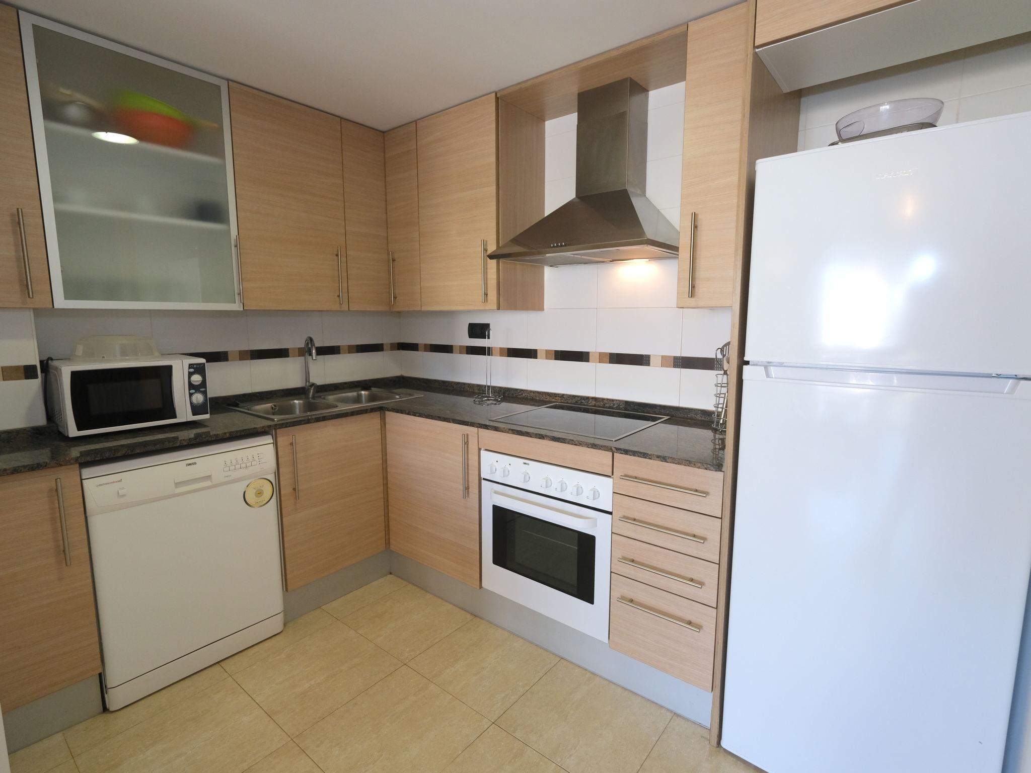 Golden Beach: Apartment block "Golden Beach". In the resort 400 m from the centre of Sant Carles de la Rapita, 400 m from the sea, 400 m from the beach, east facing position. For shared use: large garden, swimming pool (12 x 8 m, depth 80 - 200 cm, seasonal availability: 01.Apr. - 31.Oct. pool opening hours: 10:00-21:00). Outdoor shower, pool maintenance by the owner/gardener. In the house: lift. Communal covered parking space n 32. Shop, supermarket, shopping centre 550 m, restaurant 200 m, bar 100 m, pedestrian zone 10 m, 10 minute walk to the centre, bus stop "Delicies" 300 m, railway station "l'Aldea" 20 km, sandy beach "Delicies" 400 m, indoor swimming pool 1 km, thermal baths 80 km. Sports harbour 1 km, marina 1 km, golf course (18 hole) 30 km, sailing school 1 km, sports centre 1 km. Nearby attractions: Parque Natural del Delta de l'Ebre 20 km, Peñiscola 40 km, Vinaroz 20 km, Port Aventura Salou 80 km. Hiking paths: La Foradada Sant Carlos de la Rapita 6 km. Please note: car recommended. Groups of teenagers on request only.