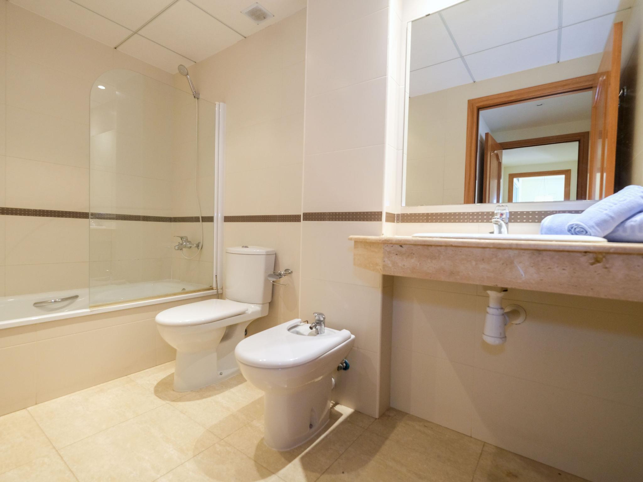"Golden Beach", 3-room apartment 92 m2. Comfortable and cosy furnishings: living/dining room with dining table, digital TV and air conditioning. Exit to the balcony. 1 room with 1 french bed (1 x 135 cm), air conditioning. Exit to the balcony. 1 room with 2 beds (90 cm), air conditioning. Kitchen (oven, dishwasher, 4 ceramic glass hob hotplates, toaster, kettle, microwave, electric coffee machine). Bath/bidet/WC, shower/WC. Balcony. Balcony furniture. Side view of the sea. Facilities: washing machine, iron. Internet (WiFi, free). HUTTE000119 // Reg. Nr.: ESFCTU00004301000061544400000000000000000HUTTE0001191