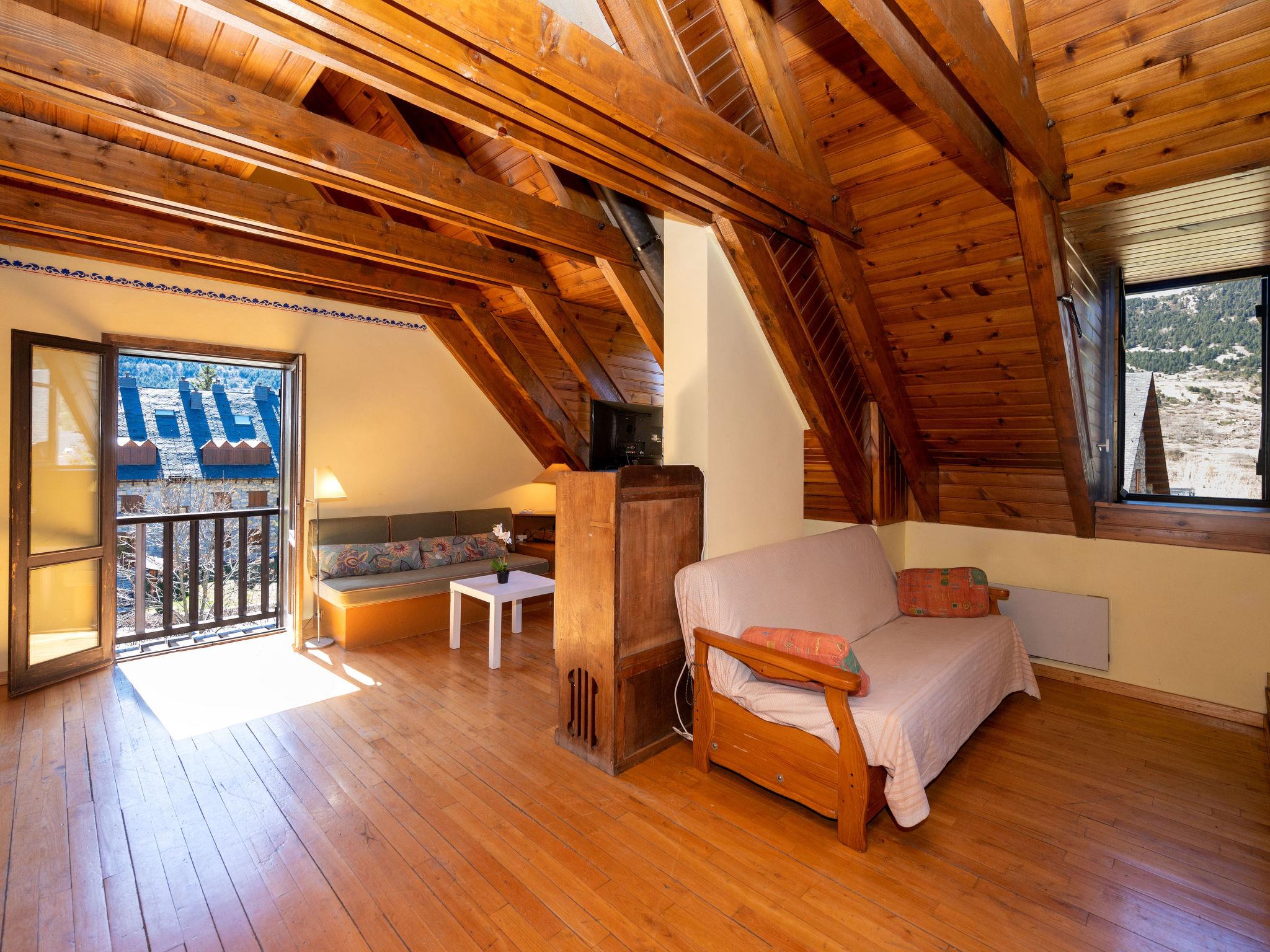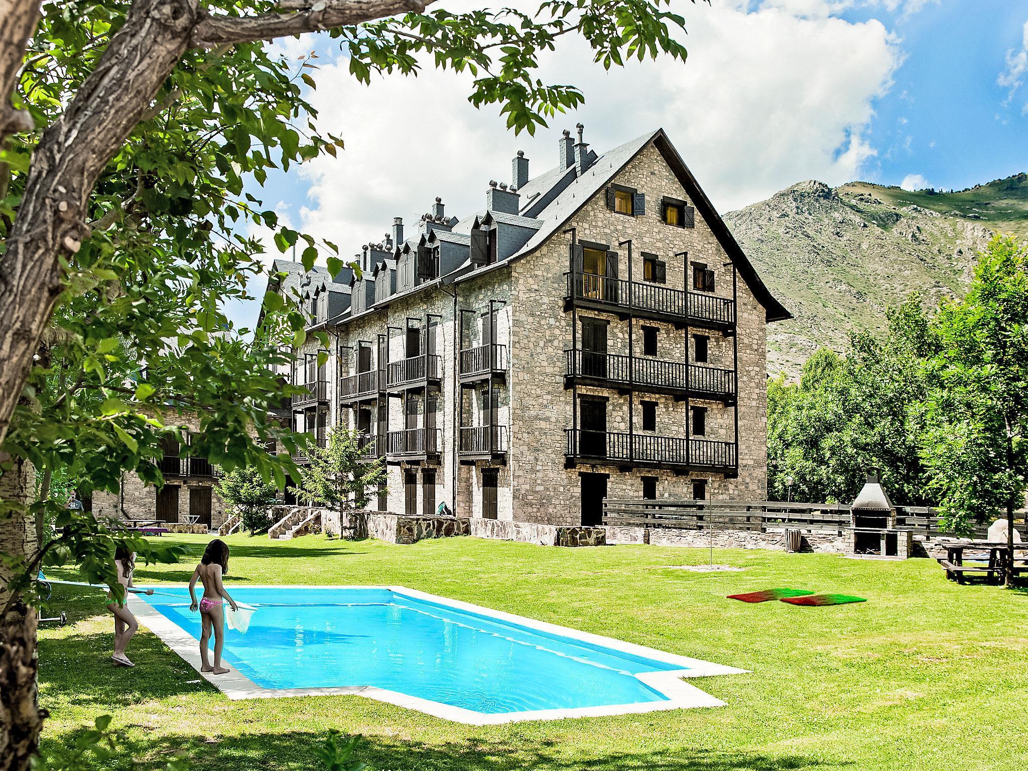 Pla de l'Ermita 2 km from Taüll: Apartment block "Herbasabina", 4 storeys. For shared use: garden with lawn, swimming pool (4 x 9 m, depth 2 - 10 cm, seasonal availability: 01.Jun. - 11.Sep.). Outdoor shower, children's playground. In the complex: lift. Bus stop "Pla De Ermita" 300 m. Slopes 7 km. The owner does not accept any youth groups. Please note: Additional accommodations can be booked. The pool is heated from 01.07 to 31.08. The "Pla de l'Ermita" residential complex has access to 3 shared swimming pools (extra, July-September).