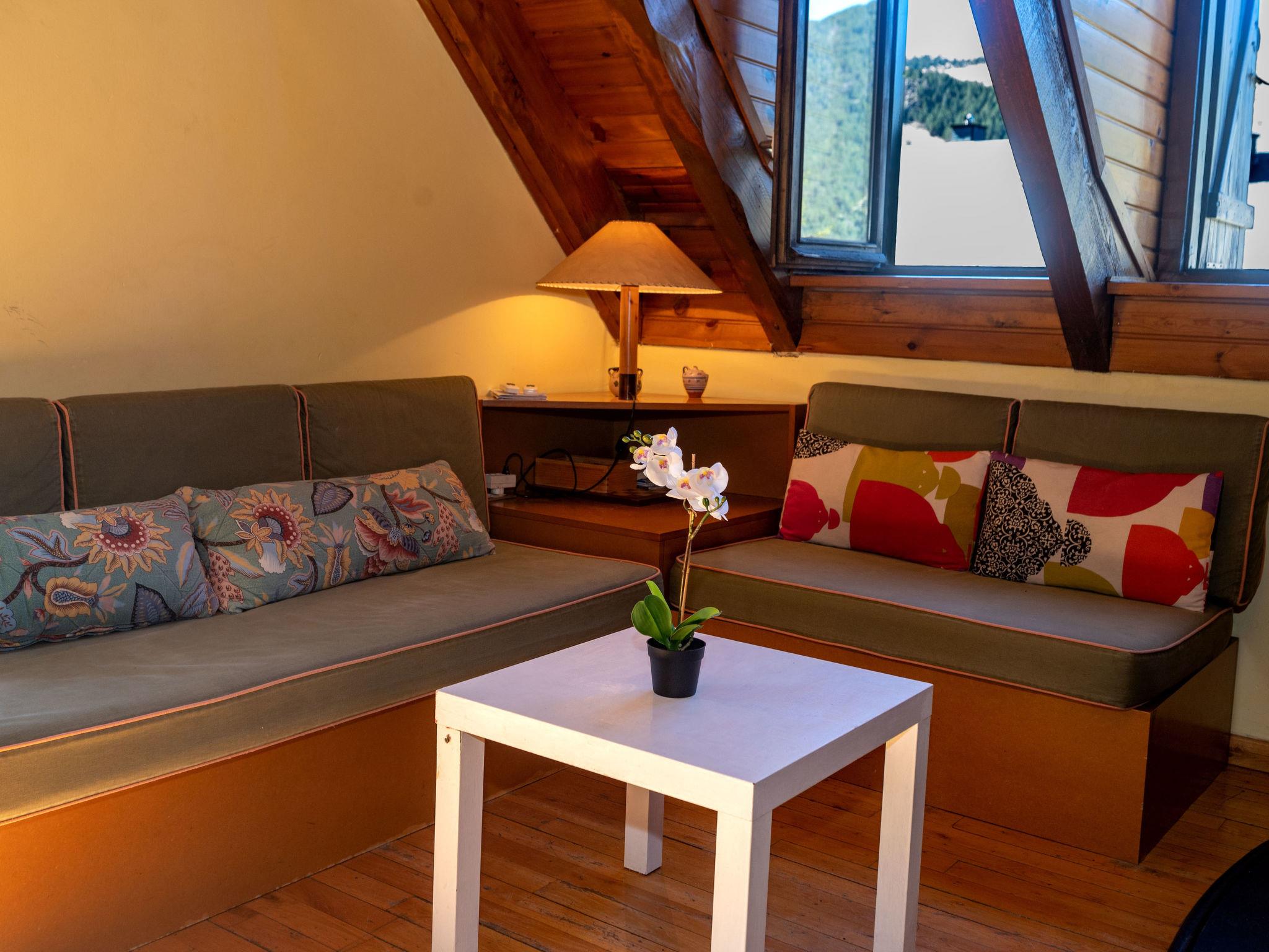 3-room apartment 90 m2 on 2 levels on 3rd floor. Rustic furnishings: living/dining room 30 m2 with digital TV and wood-burning stove. Exit to the balcony. 1 room with 1 french bed and fan. 1 room with 1 pull-out bed (2 pers. 2 x 190 cm). Kitchenette (oven, 4 ceramic glass hob hotplates, microwave). Bath/bidet/WC. Electric heating. Upper floor: 1 open room with sloping ceilings with 1 french bed and bath/bidet/WC. Parquet floors. Balcony. View of the mountains and the ski run. Facilities: Internet (WiFi, free). Garage. Maximum 1 pet/ dog allowed. HUTL000419 // Reg. Nr.: ESFCTU000025008000125579000000000000000000HUTL0004197