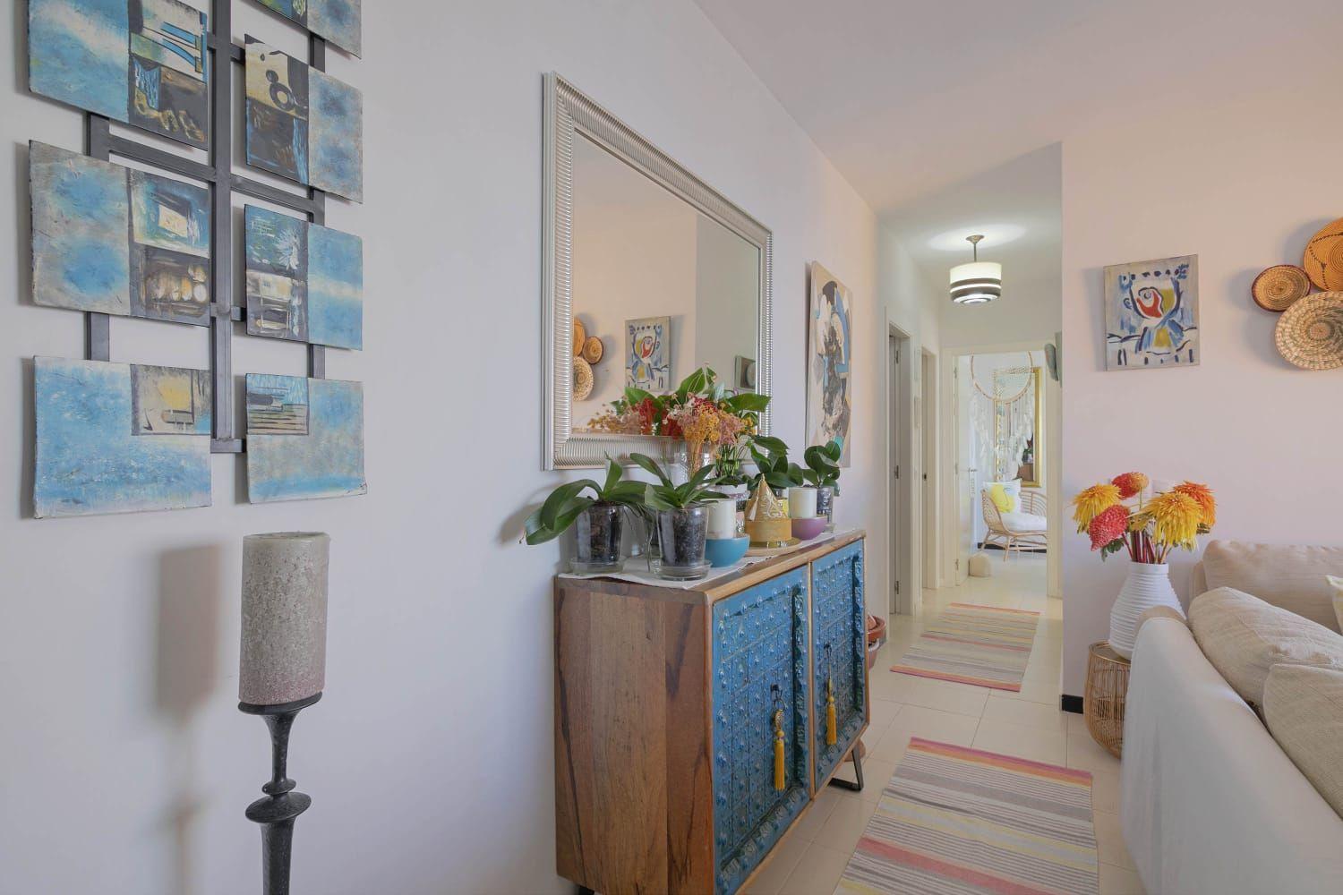 A picture is worth a thousand words"... so I invite you to take a look at the pictures published. What you are going to see is what you get !.... And I can assure you that those who have been here have wanted to stay and make the space their own. It is a beautiful three bedroom fully furnished flat on the sea front with communal pool, just a few minutes walk from several beaches with a sunny climate almost all year round, very well connected by road covering the south and north of the island and only eight minutes from the capital, Santa Cruz de Tenerife, and five minutes from shopping centres. The area has two diving schools, four small beaches, a large one and a natural water swimming pool next to a maritime park which also has a children's playground with a beautiful coastal path that runs along all the beaches and leisure areas where you can enjoy the typical Canarian gastronomy. A perfect place for those who are looking for absolute tranquillity away from the hustle and bustle of the big tourist crowds where you only hear the sound of the sea and enjoy unbeatable views. The flat measures approximately 115 square meters, has two terraces, one of them with table and chairs to enjoy a beautiful view of the ocean during meals. The other terrace has a hammock for sunbathing, the kitchen (microwave, oven, ceramic hob, crockery, utensils...), utility room (washing machine and dryer), living room (TV, internet, DVD...), a bedroom with double bed, wardrobe and desk, another bedroom has a double bed, wardrobe and access to the second terrace and the last bedroom also has access to the second terrace, wardrobe, futon, Tv and DvD.