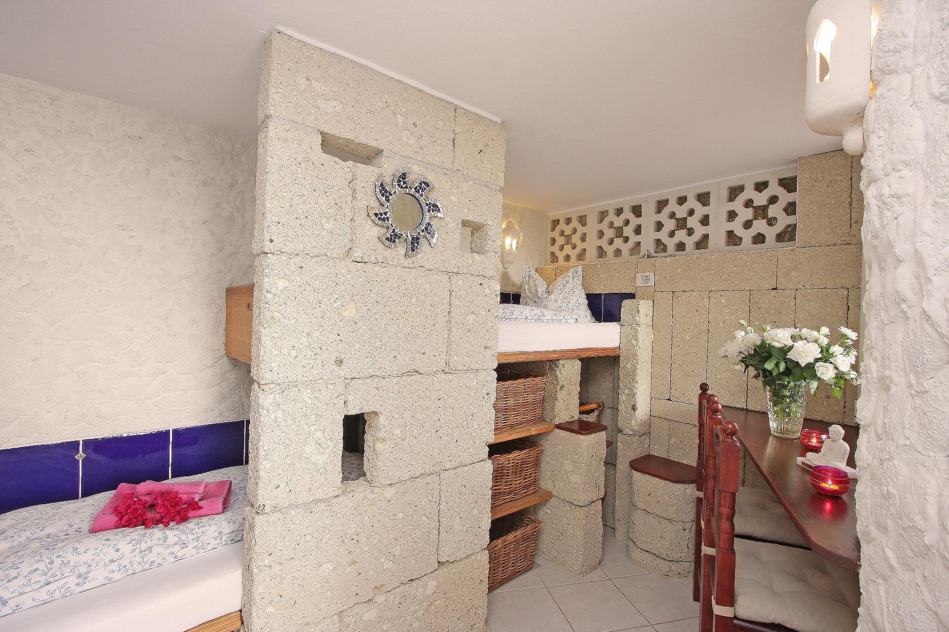 The outdoor area of Villa Castillo is an oasis of peace and relaxation. The magnificent garden and cosy terraces offer plenty of space to enjoy the sun or relax in the balmy evening breezes. Guests have the opportunity to work in harmony with nature or simply unwind. From the terraces, they can enjoy the impressive view of the Atlantic, while the garden with its palm trees and bougainvilleas invites you to dream.