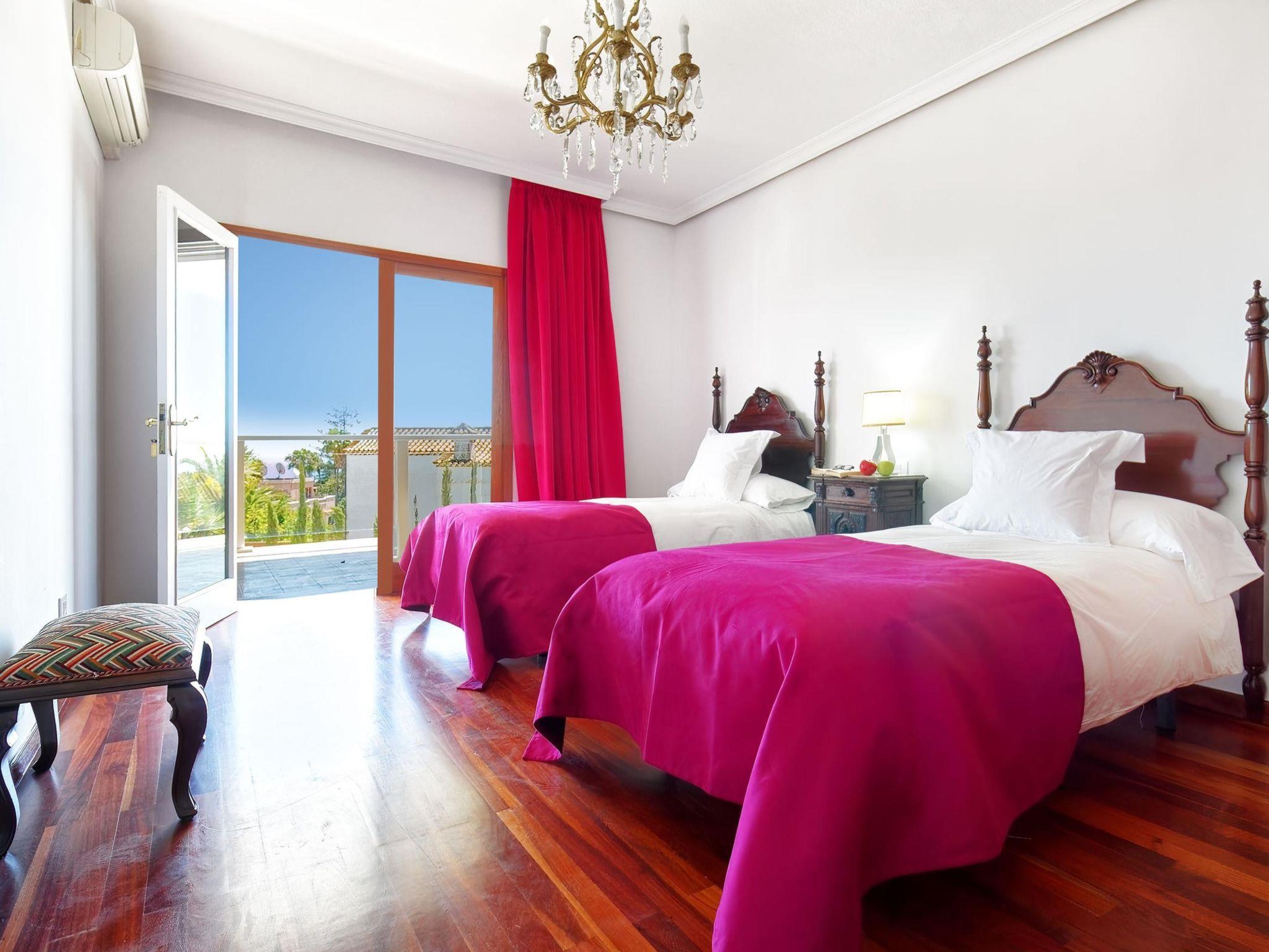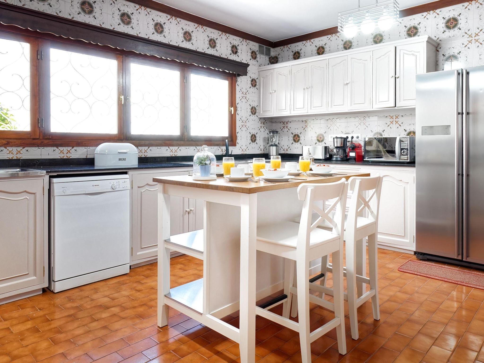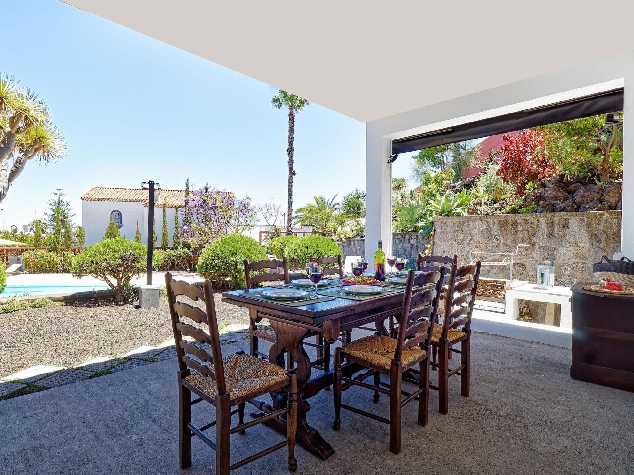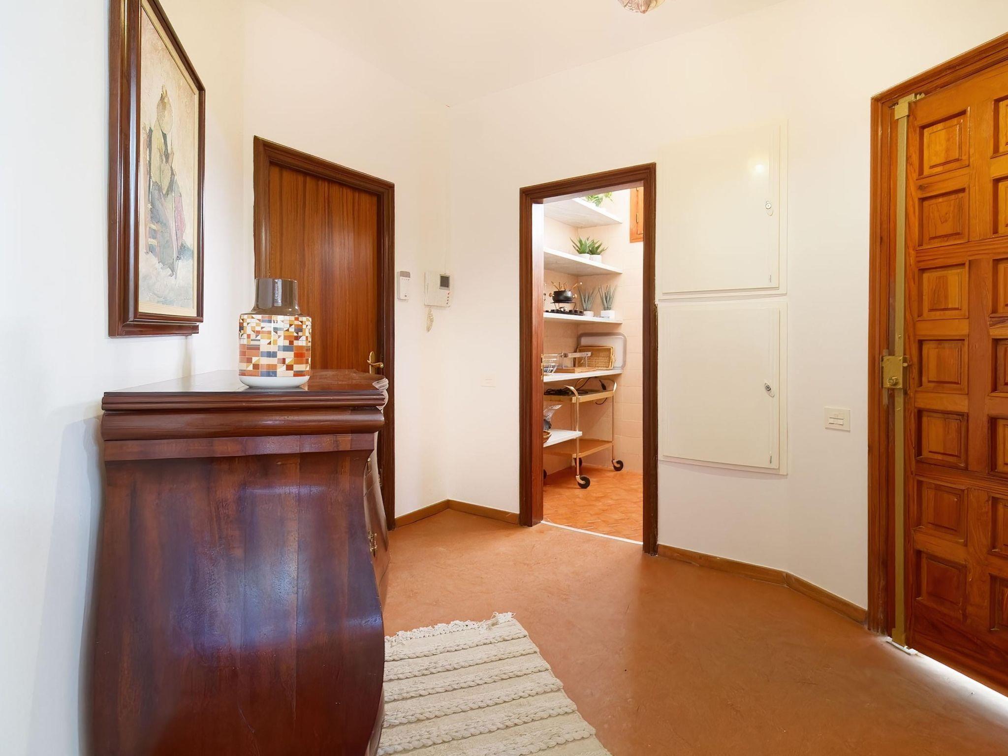 "La Ideal", 6-room house 500 m2. Rustic and antique furnishings: living/dining room with dining table, digital TV and air conditioning. Exit to the patio. 1 room with 1 french bed and bath/WC. 2 rooms, each room with 1 french bed. 2 rooms, each room with 2 beds and air conditioning. Kitchen (oven, dishwasher, 3 ceramic glass hob hotplates, toaster, kettle, microwave, freezer, electric coffee machine) with dining table. 2 showers/WC, sep. WC. Balcony, patio. Terrace furniture, balcony furniture, barbecue, deck chairs. View of the swimming pool and the garden. Facilities: washing machine, dryer, safe, iron, children's high chair, baby cot for up to 2 year olds, hair dryer. Internet (WiFi, free). Parking. Please note: non-smoking house. Maximum 1 pet/ dog allowed. 2023-T4717 // Reg. Nr.: ESFCTU0000350070007679150000000000000VV-35-1-00195689