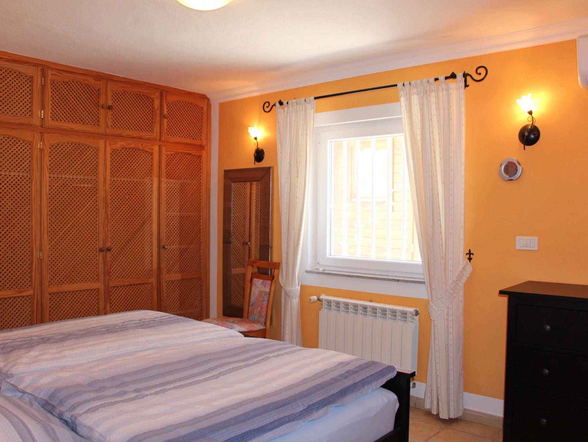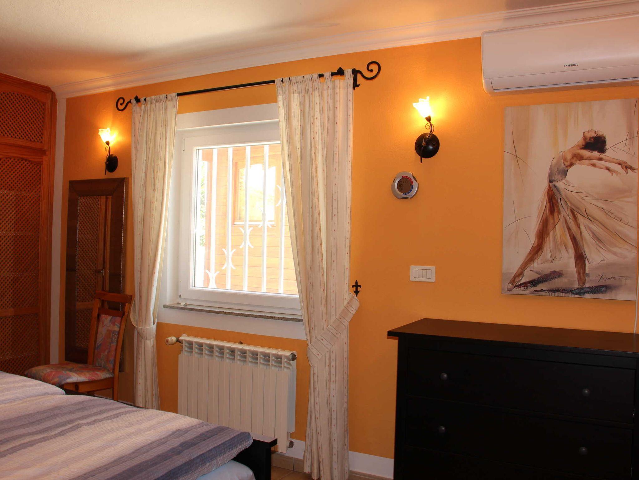 Die beiden Schlafzimmer verfügen über Doppelbetten mit hochwertigen Matratzen sowie große Kleiderschränke. Im Safe können Wertgegenstände weggeschlossen werden. Das Hauptschlafzimmer ist mit einer Klimaanlage ausgestattet, für das zweite Schlafzimmer gibt es bei Bedarf einen Elektroradiator.
