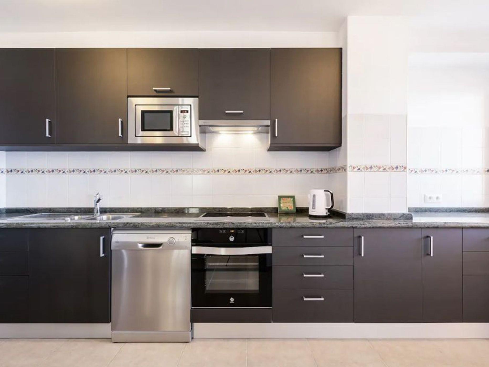 • offene Küche mit Cerankochfeld (4 Felder), Backofen, Dunstabzug, Cafetera, Toaster, Kühlschrank, Spülmaschine, Mikrowelle