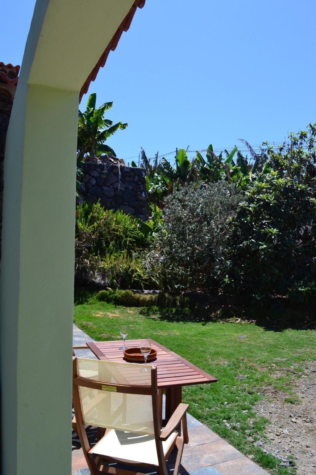 This typical Canarian detached holiday home dates back to the end of the 18th century and was completely restored in 2000 respecting its original construction. However, the walls are still carved in stone and some of the original wooden ceilings and tiles have been preserved. The house is situated in the west of the island near the beach and is at the end of a road near a 10.000 m² banana plantation. It is easily accessible by car. Thanks to its location at only 200 m above sea level, the climate is good all year round and temperatures rarely drop below 20 °C.