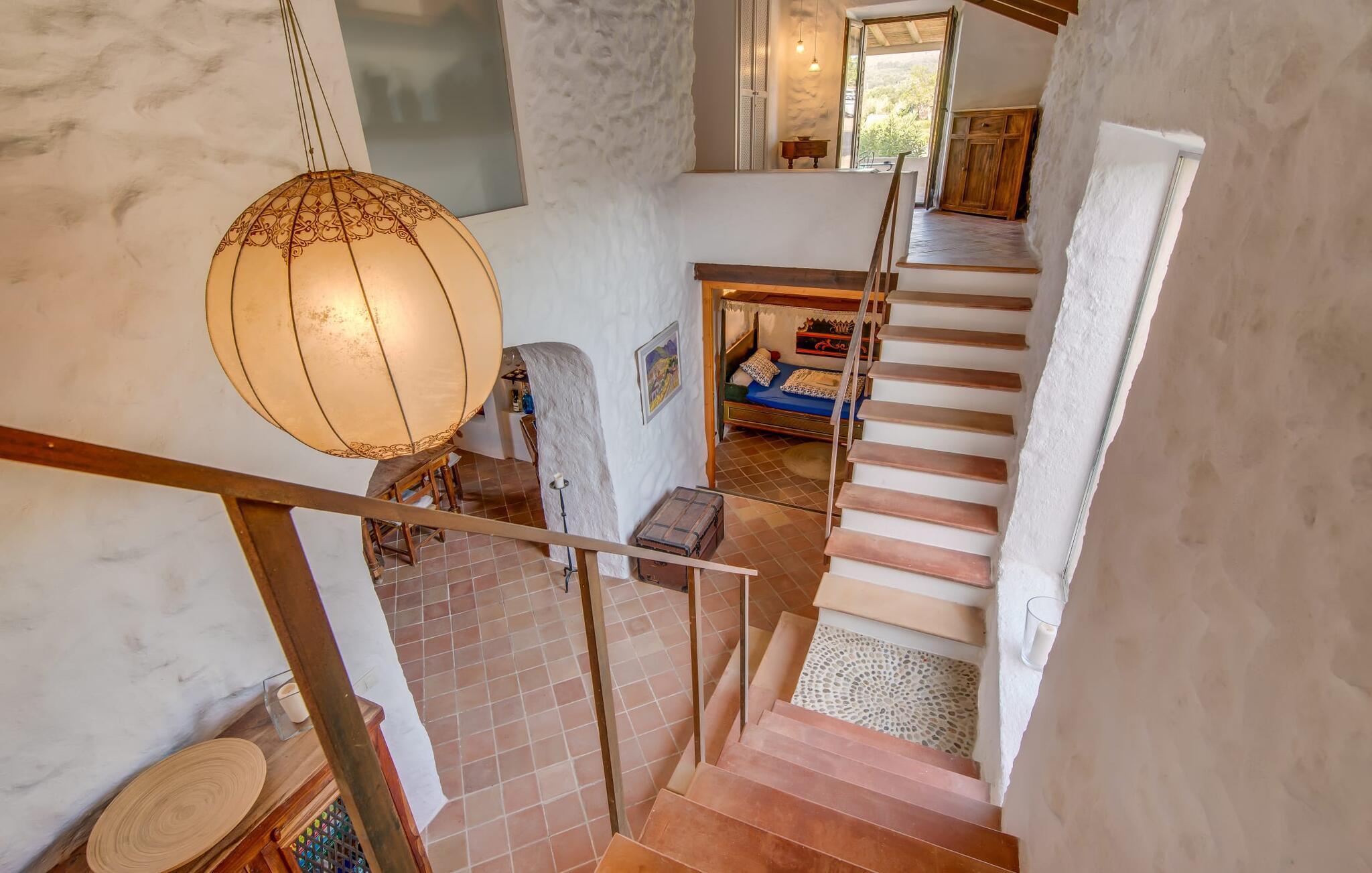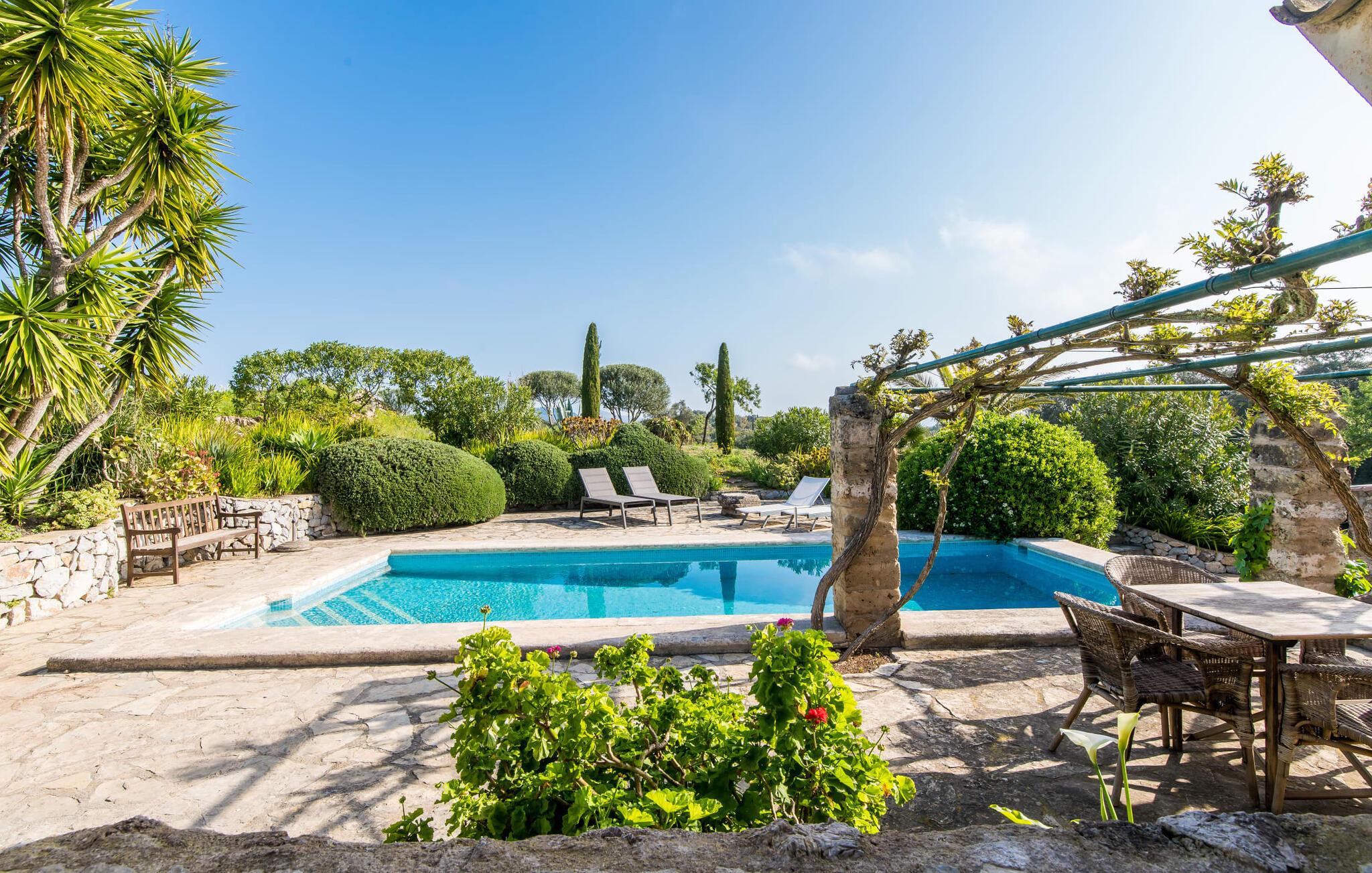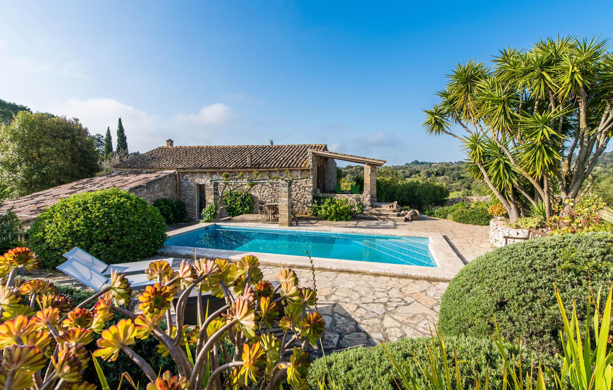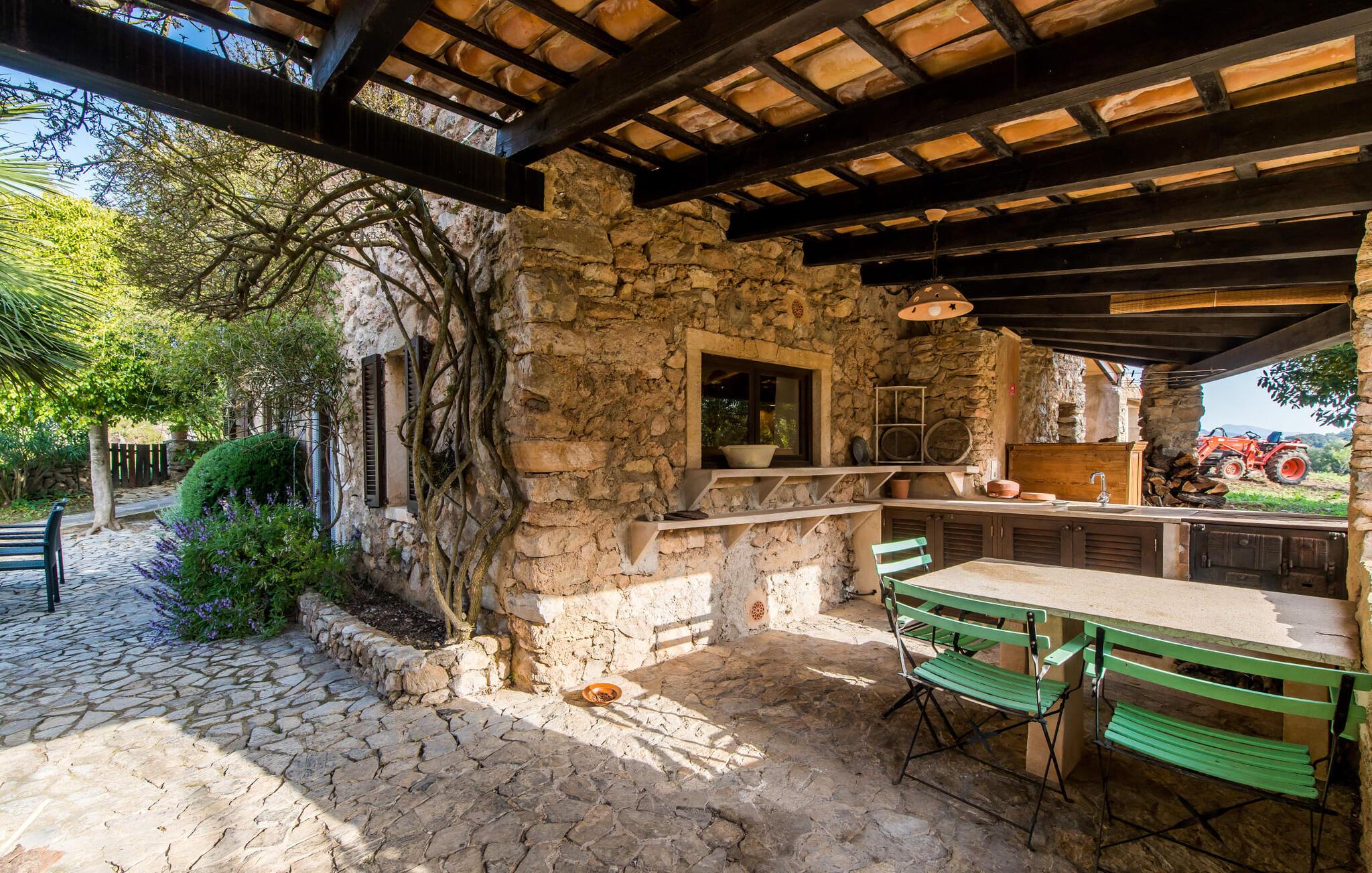 Både naturelskere og dem, der søger fred og ro, vil blive særligt imponeret over denne ejendom. Det gamle og smukt byggede stenhus byder på privatliv i en smagfuld atmosfære og ligner en lille, meget personlig oase – og desuden er det tæt på havet. Den frodigt anlagte, ugenerte ejendom omfatter større enge og storslåede middelhavsplanter nær villaen, som indrammer udeområdet på en hjemlig måde. Terrassearealerne og små vægge af natursten passer også harmonisk ind i huset. Poolen er omgivet af en idyllisk solterrasse, hvor I kan sole jer i solen eller slappe af i skyggen. Der er fire liggestole, en komfortabel træbænk og stole og to parasoller. Afhængigt af tidspunktet på dagen kan I også nyde naturlig skygge. Poolen har fantastisk, nem adgang via trapper i det ene hjørne. Yderligere indbydende siddepladser, både overdækkede og åbne, kan findes på forskellige sider af villaen. De forskellige niveauer og forbindelsestrappen skaber en stemningsfuld atmosfære og giver mulighed for en bred vifte af designmuligheder. Et særligt træk er den indre gårdhave, der næsten ligner en mindre udgave af en malerisk landsbyplads med sine smukke havemøbler og flotte træer. Hvis I ønsker det, kan I nyde jeres morgenmad under åben himmel eller endda se stjernehimlen om natten. Når I træder ind i Villa "Tina", byder den rustikke kombination af gammelt murværk og moderne møbler et imponerende syn. I stuen putter en super behagelig sofa i naturfarver sig for eksempel op ad en rustik stenvæg – og det ser bare helt vildt hyggeligt ud. At man kan sidde lige ved siden af den åbne pejs, runder den hjemlige stemning af. Samtidig kan I kigge ind i haven gennem en stor glasdør. På den anden side er der en original alkove, som kan lukkes af med en foldedør, med en traditionel, gammel og romantisk himmelseng. Dette hjørne af huset ligner næsten en del af et museum. Køkkenet er meget rummeligt og fuldt udstyret med ovn/komfur, stort køleskab, opvaskemaskine, elkedel, brødrister og masser af opbevaringsplads. Herfra fører en bred, halvcirkelformet gang ind i en åben spisestue. Pejsen med glasrude, som er opvarmet fra stuen, er også tydeligt synlig og mærkbar herfra. De tre dobbeltværelser på øverste etage er enkelt, men smagfuldt indrettet. Et badeværelse - det ene nyrenoveret i 2018, det andet helt nyinstalleret samme år - er placeret i stueetagen og på første sal, så I kan nyde maksimal komfort, selv når I er fuldt besat. De smukkeste strande på Mallorca ligger kun få minutter væk i bil. For eksempel kan I tage til den smukke Cala Agulla i Cala Ratjada eller bugten Canyamel. Den hvide strand i Cala Mesquida er heller ikke langt væk. Fire af de smukkeste golfbaner (Canyamel, Capdepera Roca Viva, Sera de Pula og Son Servera) er også tæt på villaen. Den middelalderlige by Artà med sin smukke promenade, mange caféer og restauranter ligger kun omkring 4 km væk. Denne rustikke, lille landvilla med en stor grund ligger i Llevant-regionen, nær Artà. En overvejende naturlig have omgiver det kærligt indrettede feriehus. De smukke naturlige sandstrande omkring Artà og den livlige havnepromenade i Cala Ratjada ligger kun få minutters kørsel derfra. Her finder I en række barer, restauranter og supermarkeder.