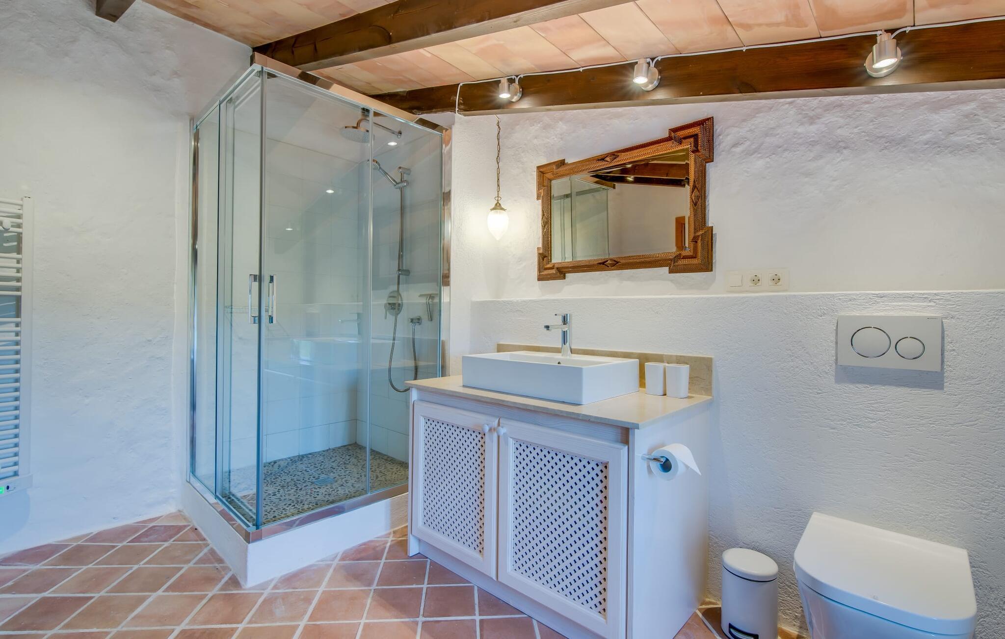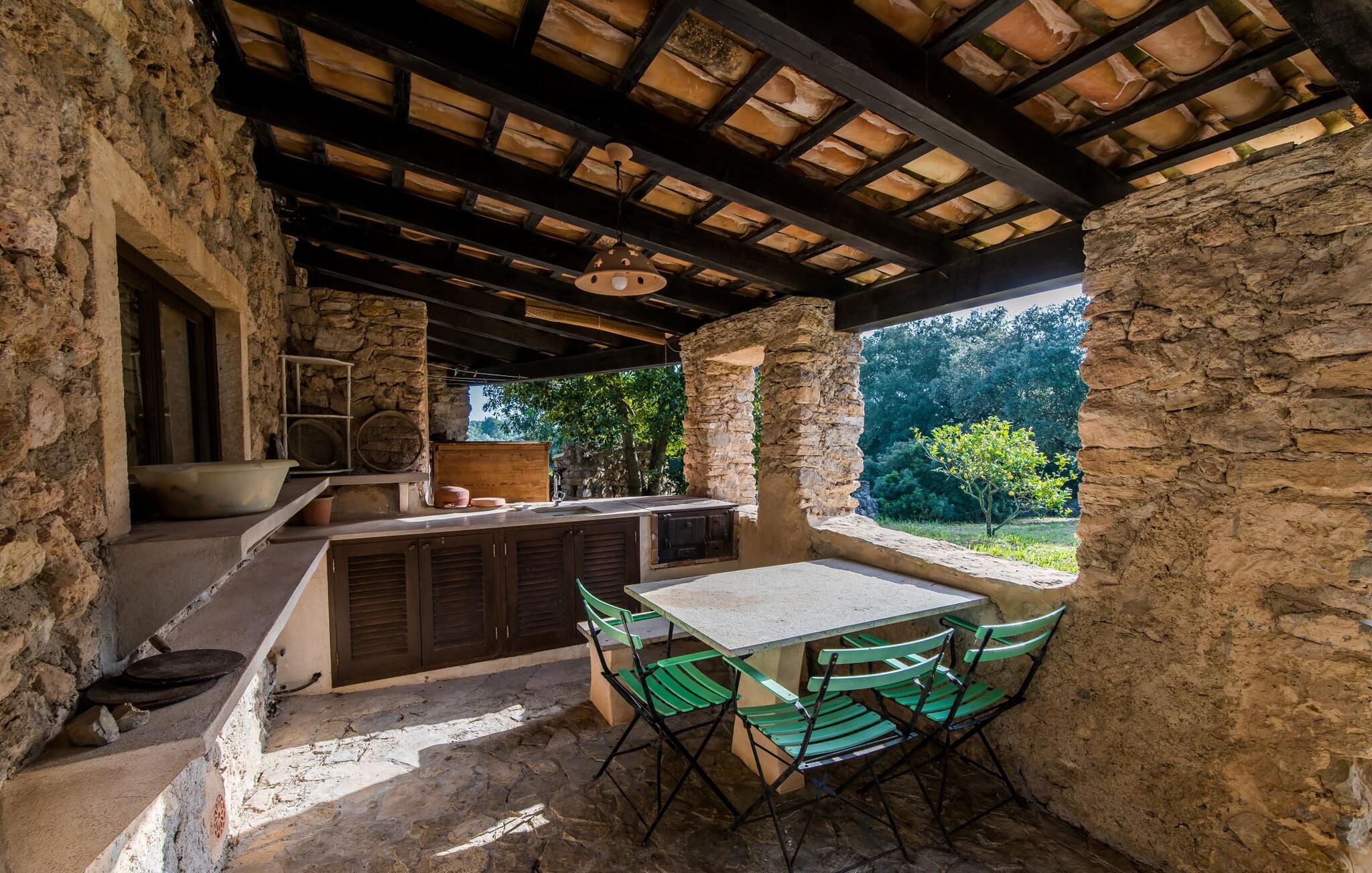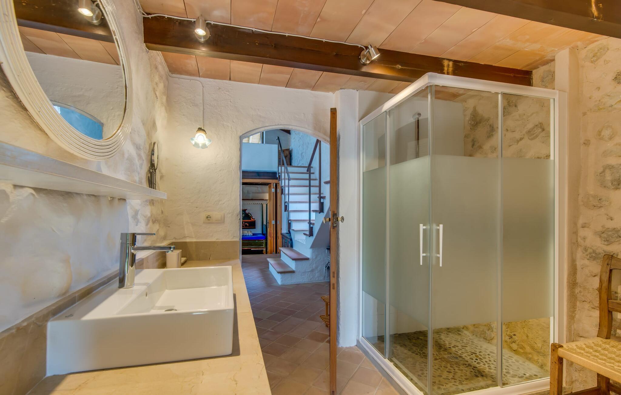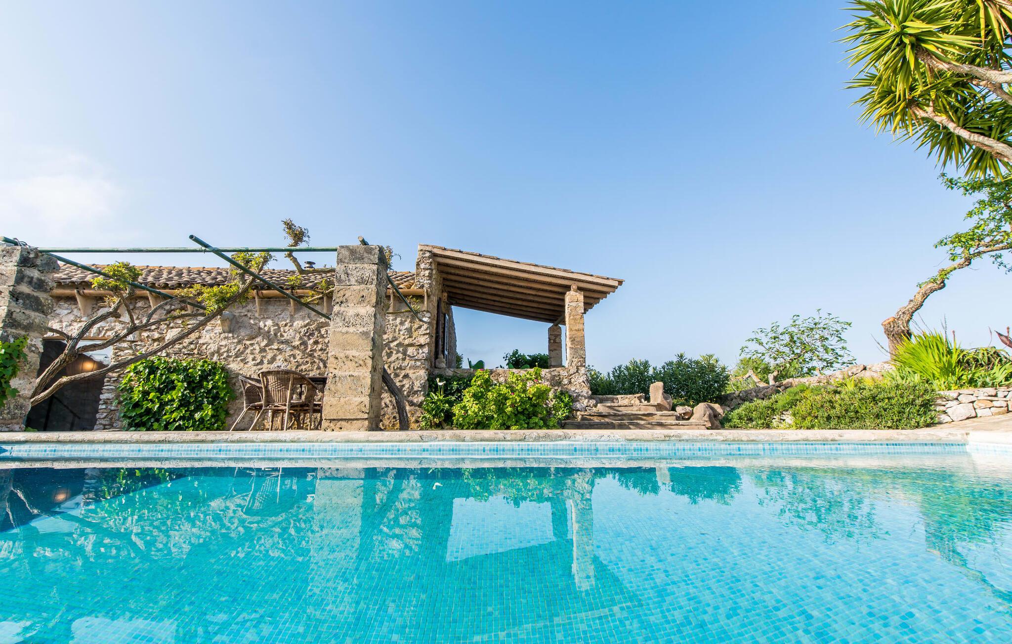 Både naturelskere og dem, der søger fred og ro, vil blive særligt imponeret over denne ejendom. Det gamle og smukt byggede stenhus byder på privatliv i en smagfuld atmosfære og ligner en lille, meget personlig oase – og desuden er det tæt på havet. Den frodigt anlagte, ugenerte ejendom omfatter større enge og storslåede middelhavsplanter nær villaen, som indrammer udeområdet på en hjemlig måde. Terrassearealerne og små vægge af natursten passer også harmonisk ind i huset. Poolen er omgivet af en idyllisk solterrasse, hvor I kan sole jer i solen eller slappe af i skyggen. Der er fire liggestole, en komfortabel træbænk og stole og to parasoller. Afhængigt af tidspunktet på dagen kan I også nyde naturlig skygge. Poolen har fantastisk, nem adgang via trapper i det ene hjørne. Yderligere indbydende siddepladser, både overdækkede og åbne, kan findes på forskellige sider af villaen. De forskellige niveauer og forbindelsestrappen skaber en stemningsfuld atmosfære og giver mulighed for en bred vifte af designmuligheder. Et særligt træk er den indre gårdhave, der næsten ligner en mindre udgave af en malerisk landsbyplads med sine smukke havemøbler og flotte træer. Hvis I ønsker det, kan I nyde jeres morgenmad under åben himmel eller endda se stjernehimlen om natten. Når I træder ind i Villa "Tina", byder den rustikke kombination af gammelt murværk og moderne møbler et imponerende syn. I stuen putter en super behagelig sofa i naturfarver sig for eksempel op ad en rustik stenvæg – og det ser bare helt vildt hyggeligt ud. At man kan sidde lige ved siden af den åbne pejs, runder den hjemlige stemning af. Samtidig kan I kigge ind i haven gennem en stor glasdør. På den anden side er der en original alkove, som kan lukkes af med en foldedør, med en traditionel, gammel og romantisk himmelseng. Dette hjørne af huset ligner næsten en del af et museum. Køkkenet er meget rummeligt og fuldt udstyret med ovn/komfur, stort køleskab, opvaskemaskine, elkedel, brødrister og masser af opbevaringsplads. Herfra fører en bred, halvcirkelformet gang ind i en åben spisestue. Pejsen med glasrude, som er opvarmet fra stuen, er også tydeligt synlig og mærkbar herfra. De tre dobbeltværelser på øverste etage er enkelt, men smagfuldt indrettet. Et badeværelse - det ene nyrenoveret i 2018, det andet helt nyinstalleret samme år - er placeret i stueetagen og på første sal, så I kan nyde maksimal komfort, selv når I er fuldt besat. De smukkeste strande på Mallorca ligger kun få minutter væk i bil. For eksempel kan I tage til den smukke Cala Agulla i Cala Ratjada eller bugten Canyamel. Den hvide strand i Cala Mesquida er heller ikke langt væk. Fire af de smukkeste golfbaner (Canyamel, Capdepera Roca Viva, Sera de Pula og Son Servera) er også tæt på villaen. Den middelalderlige by Artà med sin smukke promenade, mange caféer og restauranter ligger kun omkring 4 km væk. Denne rustikke, lille landvilla med en stor grund ligger i Llevant-regionen, nær Artà. En overvejende naturlig have omgiver det kærligt indrettede feriehus. De smukke naturlige sandstrande omkring Artà og den livlige havnepromenade i Cala Ratjada ligger kun få minutters kørsel derfra. Her finder I en række barer, restauranter og supermarkeder.