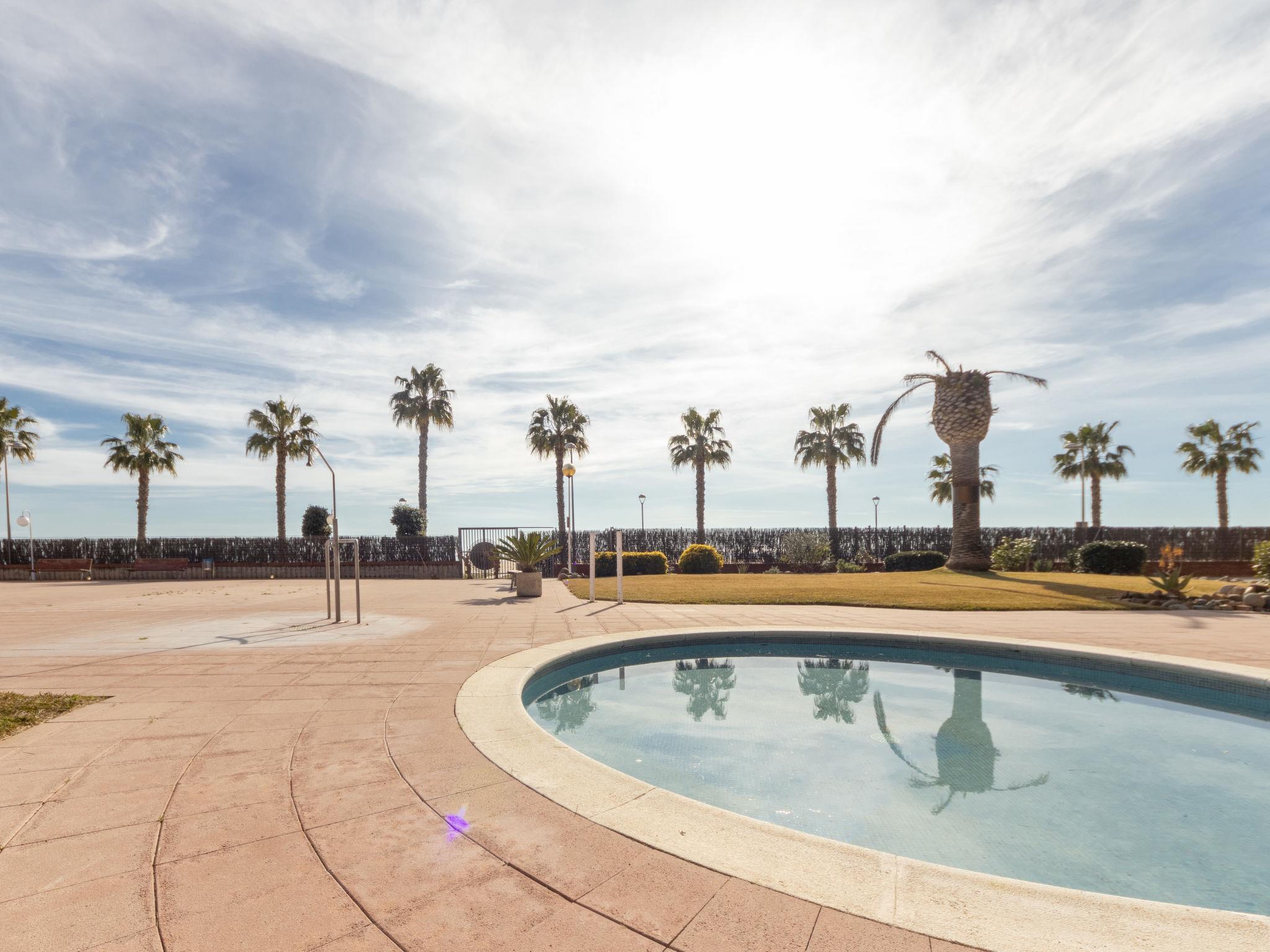Torredembarra 18 km from Tarragona: Very large apartment block "Els Pins", surrounded by trees. 50 m from the sea, 20 m from the beach, direct access to the beach. For shared use: large garden (fenced) with trees, 2 swimming pools angular (20 x 8 m, seasonal availability: 10.Jun. - 20.Sep.) with salt water. Children's pool, outdoor shower. In the house: lift. Parking at the house on the premises. Shop 150 m, grocery 150 m, supermarket 250 m, shopping centre 19 km, restaurant 150 m, bar 150 m, bakery 500 m, café, pedestrian zone 50 m, 8 minute walk to the centre, bus stop 50 m, railway station "Torredembarra Renfe" 100 m. Sports harbour 700 m, golf course (18 hole) 13 km, tennis 2 km, riding stable 2 km. Nearby attractions: Port Aventura 30 km, Aquopolis 35 km, Jungle Trek 8 km. Well-known lakes can easily be reached: Pantano de Foix 33 km, Bassa de les Olles 85 km, Embalse de Siurana 60 km. Hiking paths: La Musara 56 km, Ronda verda del Baix Gaia 5 km. Please note: suitable for families. The owner does not accept any groups. The owner does not accept any youth groups. Main road 600 m from the property. Airfield 30 km from the property. Additional accommodations can be booked. Neighbourhood highly sensitive to noise. Quietness and good behaviour expected.