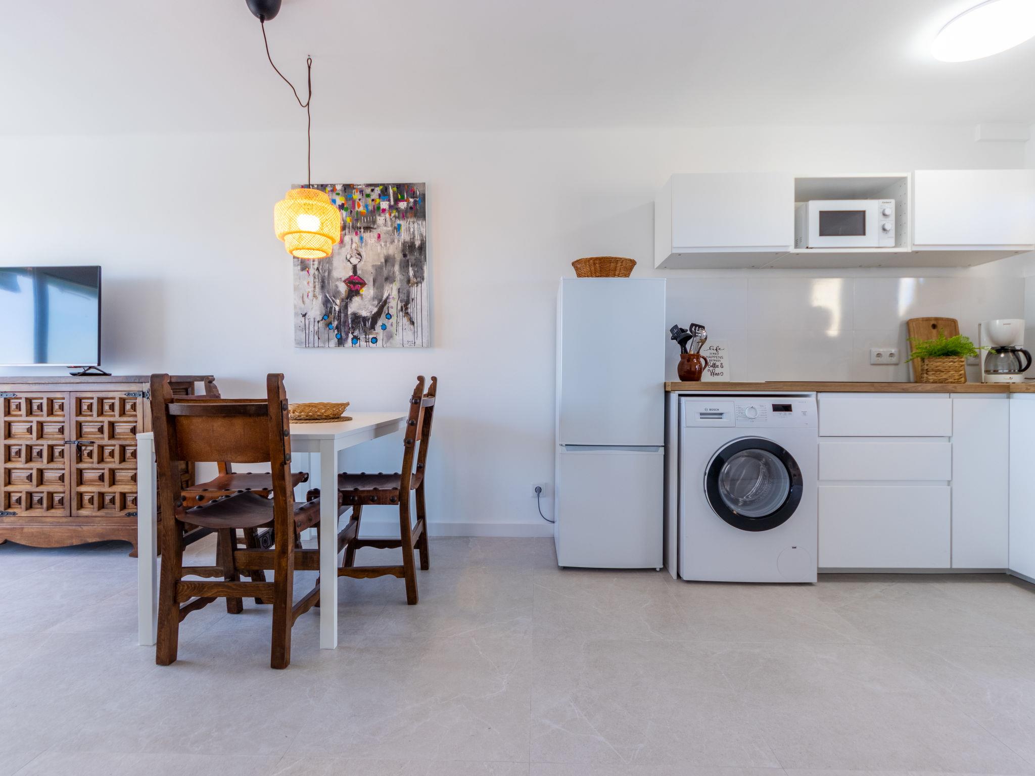 "Rapova", 3-room apartment 43 m2 on 4th floor. Object suitable for 2 adults + 1 child. Fully renovated in 2023, comfortable and cosy furnishings: living/dining room with TV and digital TV (flat screen). Exit to the terrace. 1 room with 1 french bed (160 cm, length 200 cm). Exit to the terrace. 1 room with 1 bed (90 cm, length 200 cm). Open kitchen (4 induction hot plates, toaster, kettle, microwave, electric coffee machine). Shower/WC. No heating option. Balcony. Balcony furniture, deck chairs (3). Distant view of the sea, the countryside and the resort. Facilities: washing machine, iron, children's high chair, baby cot for up to 2 year olds, hair dryer. Internet (WiFi, free). Parking space n libre (1 car). Please note: suitable for families. Non-smokers only. TV only ES. HUTT-066509 // Reg. Nr.: ESFCTU00004302700008462000000000000000000HUTT-0665094