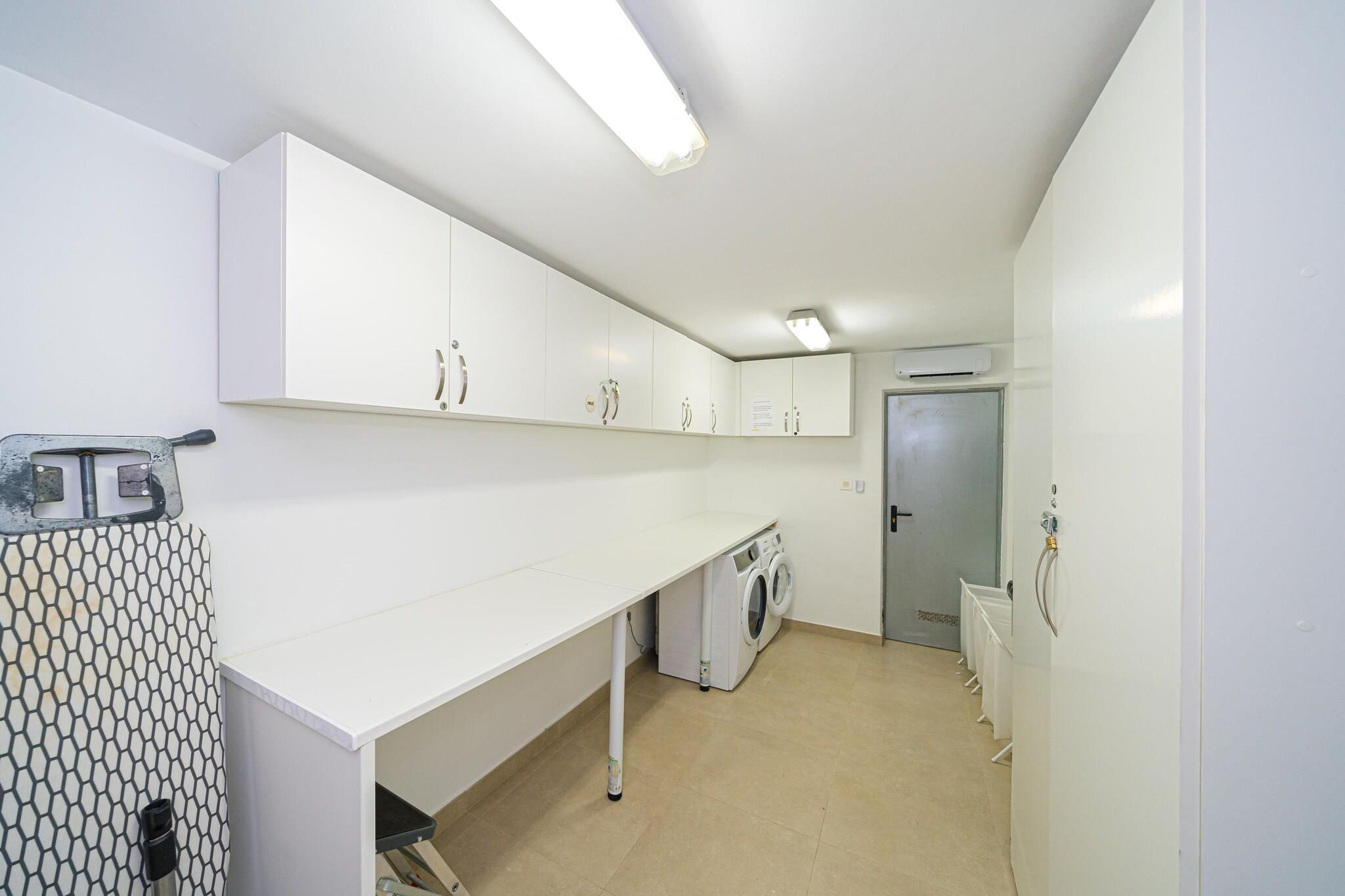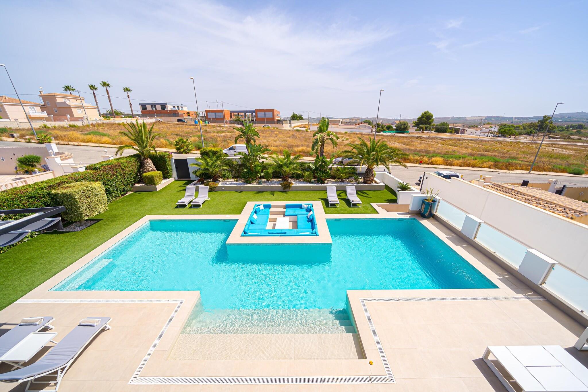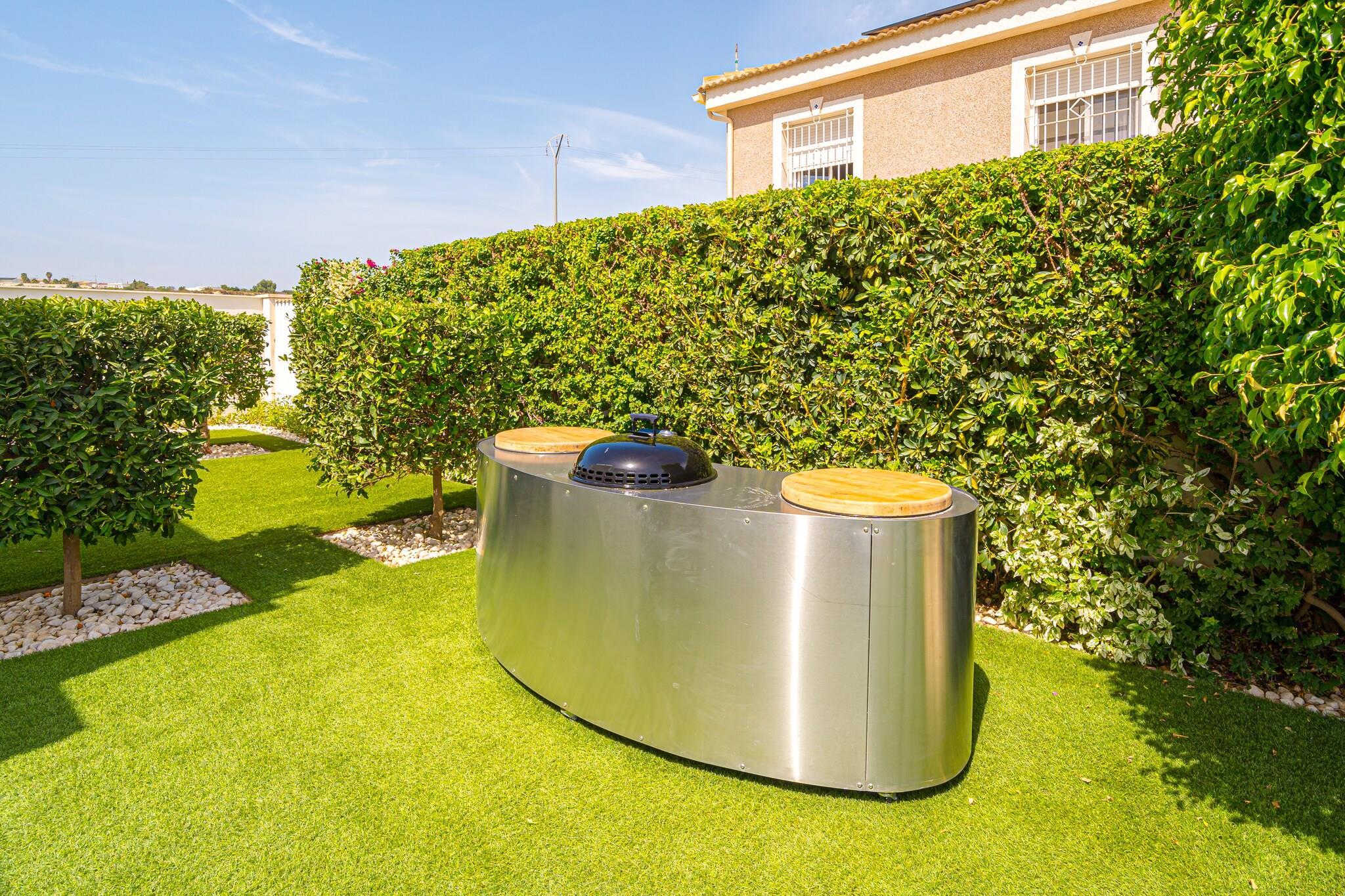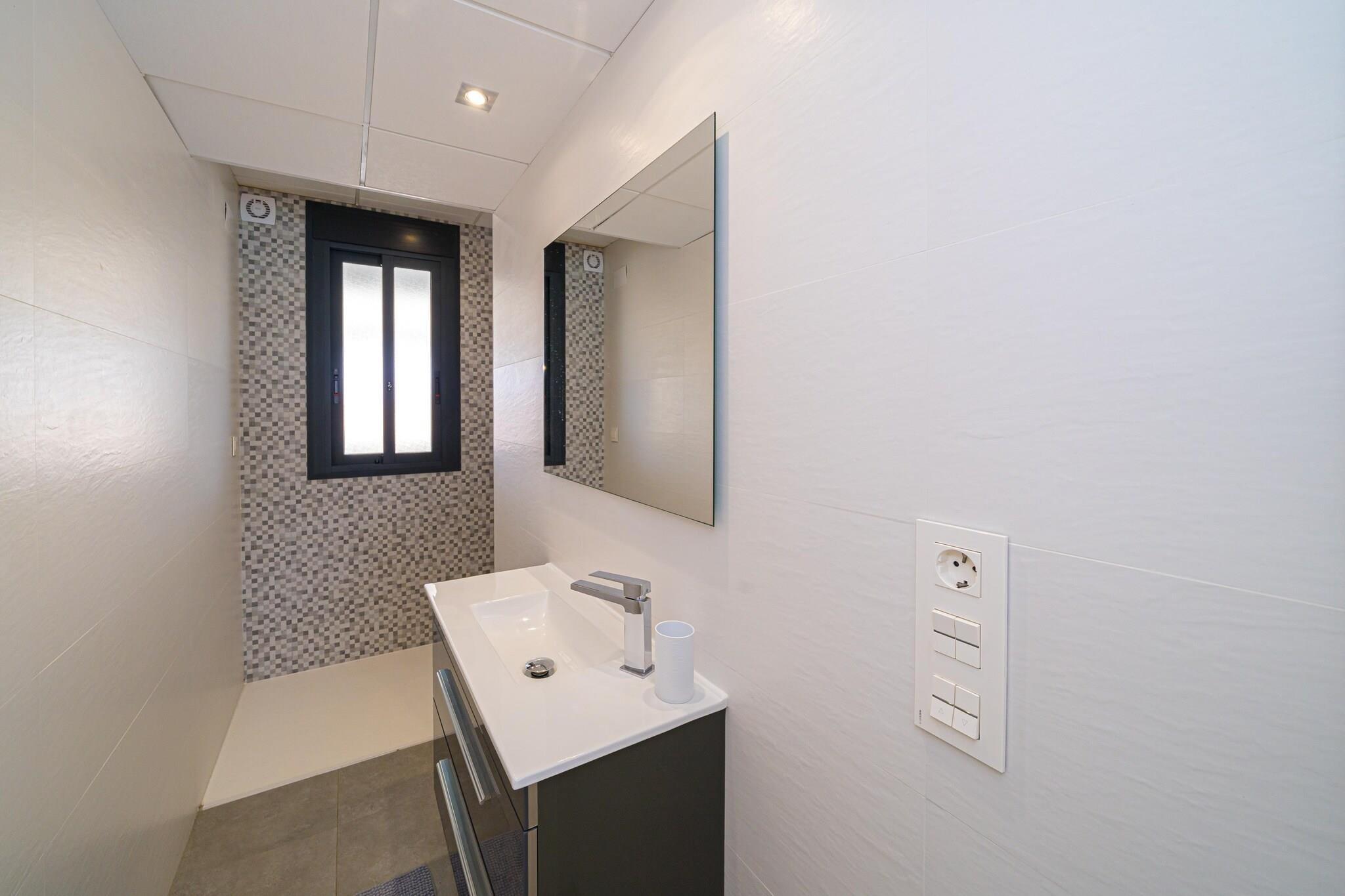 Flygt til denne pragtfulde 4-værelses villa i Torremendo, hvor moderne design møder fredfyldt naturlig skønhed. Perfekt til familier eller grupper på op til 8 gæster, dette smarte oase tilbyder en privat swimmingpool, frodig have og panoramaudsigt over det nærliggende reservoir - ideel til at slappe af med et glas lokal vin. Indvendigt byder villaen på stilfuld indretning, en solbelyst stue med store glasvinduer og aircondition overalt. Det åbne køkken i stueetagen og et praktisk tekøkken i kælderen gør madlavning til en leg. Et bordtennisbord tilføjer et legende touch, mens den overdækkede terrasse inviterer dig til at nyde udendørs spisning i komfort. Beliggende kun 500 meter fra lokale restauranter og inden for rækkevidde af Torrevieja (21 km) og Orihuela (15 km), tilbyder villaen både ro og adgang til livlige dagsture. For ekstra komfort kan poolen opvarmes til 28°C i maj, juni og september mod et ekstra gebyr.