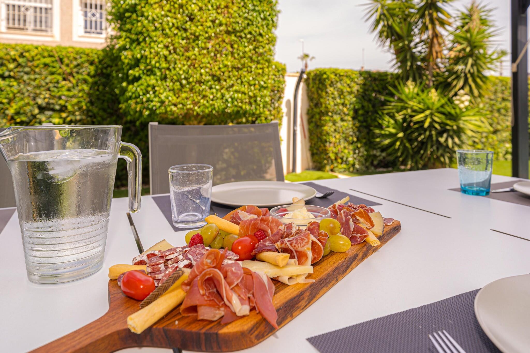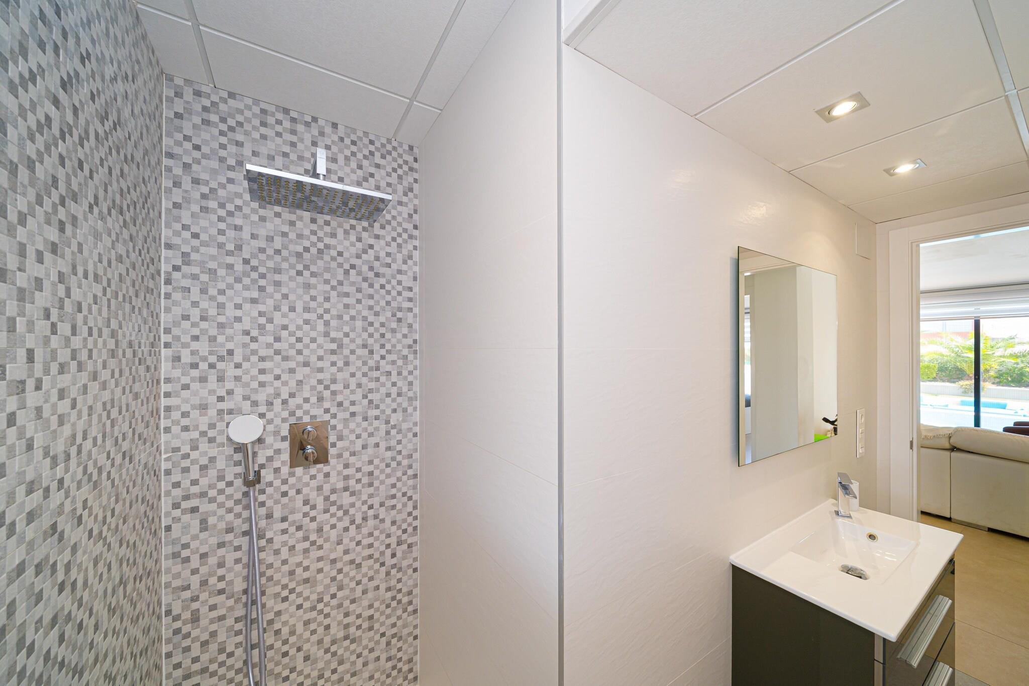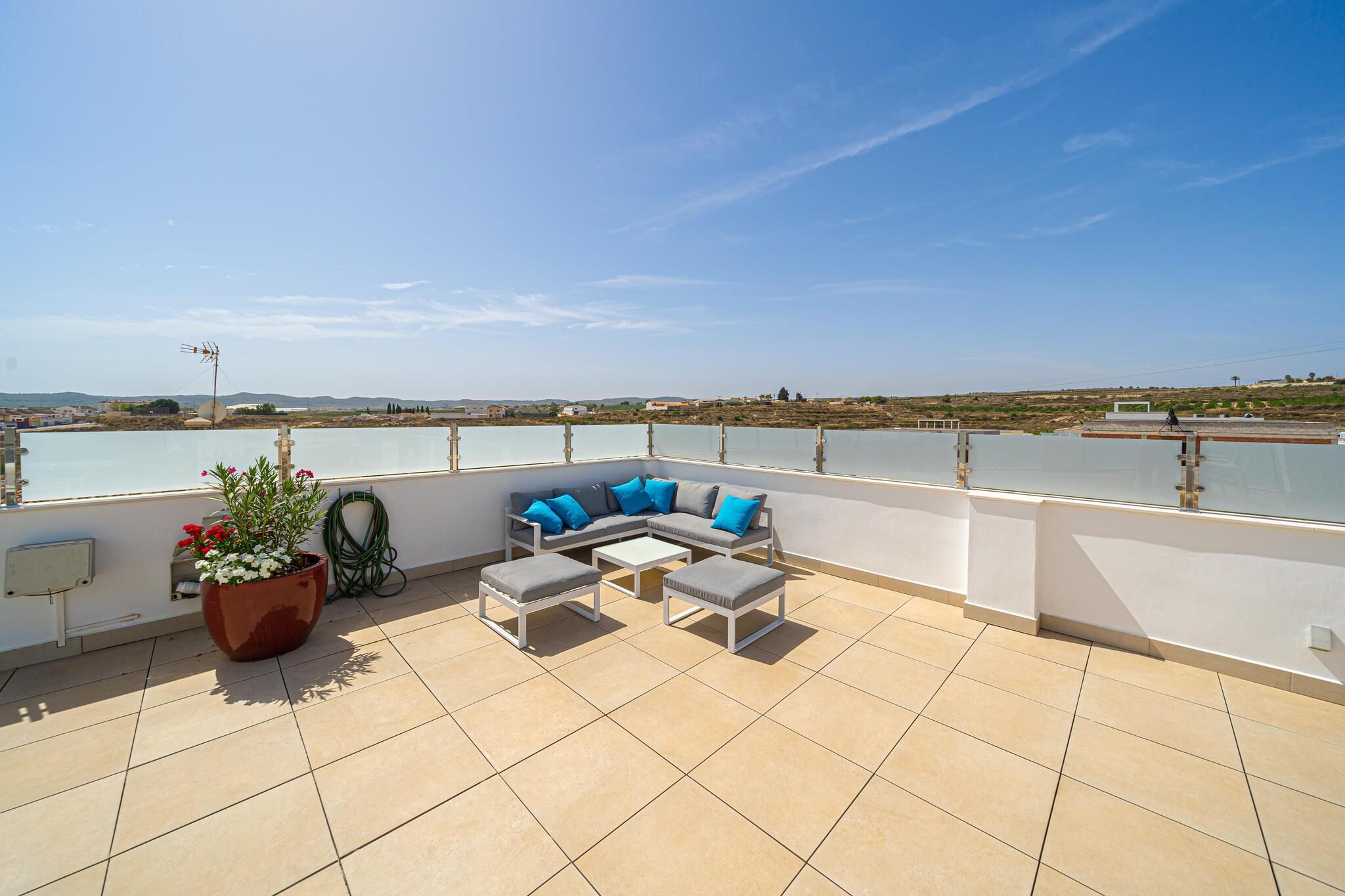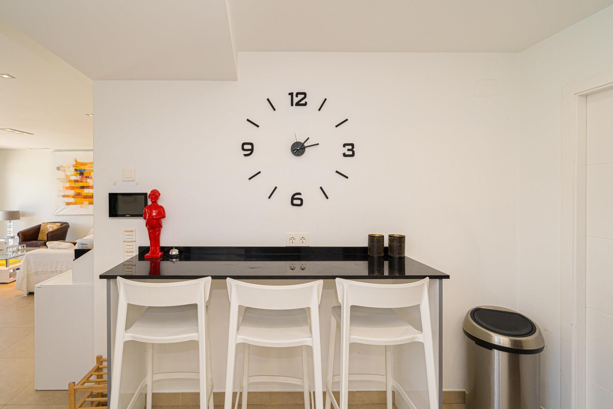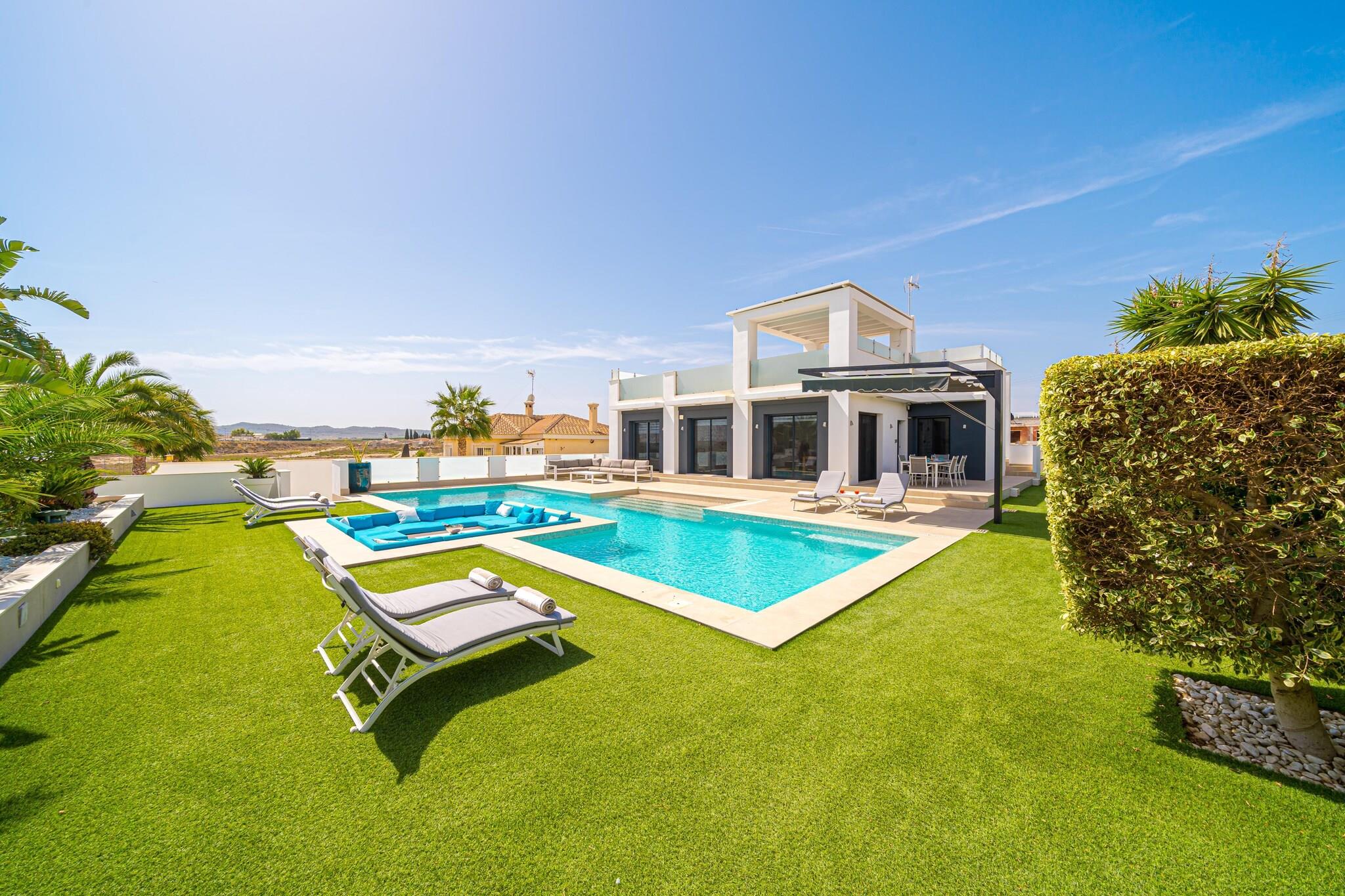 Flygt til denne pragtfulde 4-værelses villa i Torremendo, hvor moderne design møder fredfyldt naturlig skønhed. Perfekt til familier eller grupper på op til 8 gæster, dette smarte oase tilbyder en privat swimmingpool, frodig have og panoramaudsigt over det nærliggende reservoir - ideel til at slappe af med et glas lokal vin. Indvendigt byder villaen på stilfuld indretning, en solbelyst stue med store glasvinduer og aircondition overalt. Det åbne køkken i stueetagen og et praktisk tekøkken i kælderen gør madlavning til en leg. Et bordtennisbord tilføjer et legende touch, mens den overdækkede terrasse inviterer dig til at nyde udendørs spisning i komfort. Beliggende kun 500 meter fra lokale restauranter og inden for rækkevidde af Torrevieja (21 km) og Orihuela (15 km), tilbyder villaen både ro og adgang til livlige dagsture. For ekstra komfort kan poolen opvarmes til 28°C i maj, juni og september mod et ekstra gebyr.