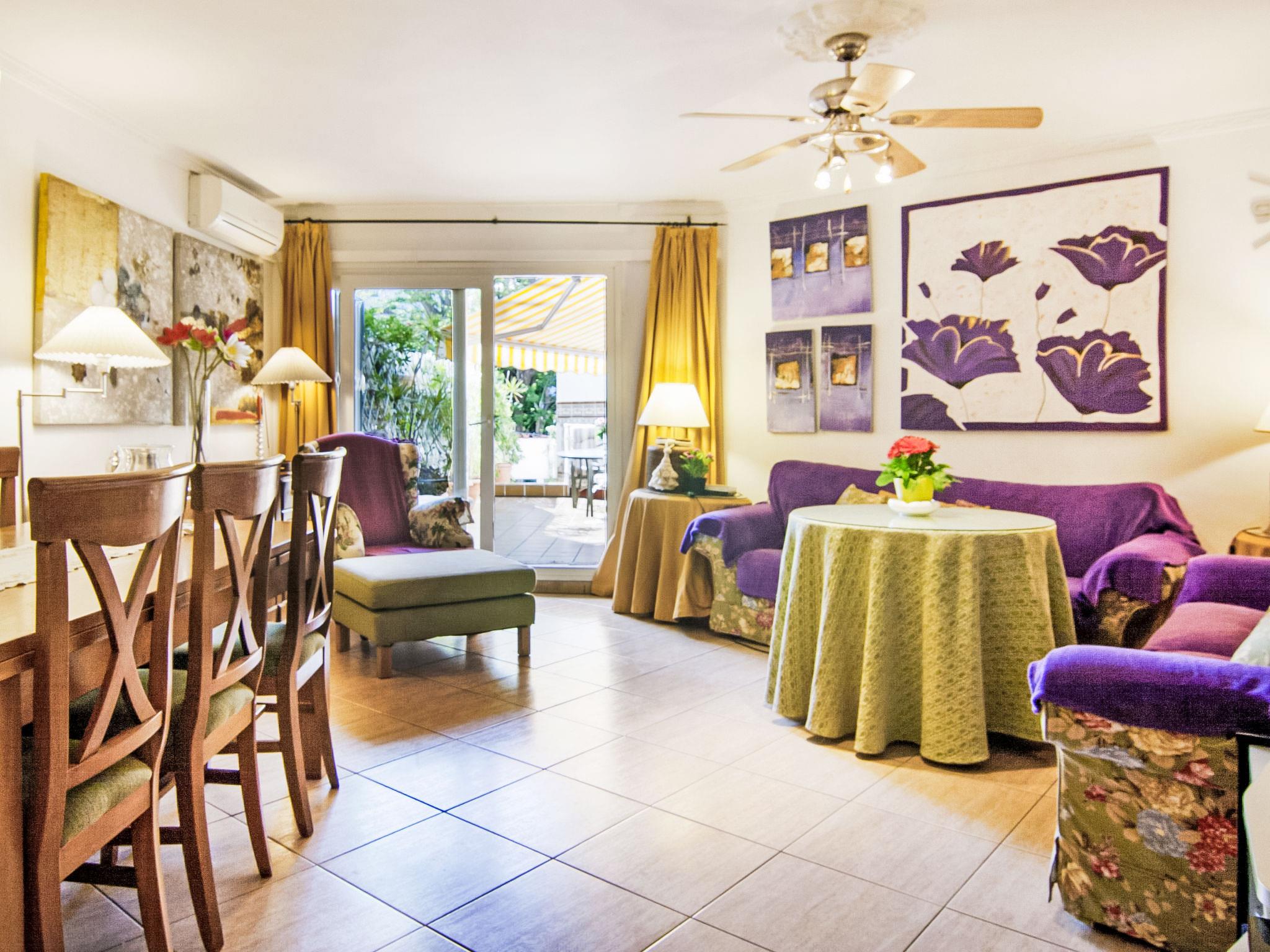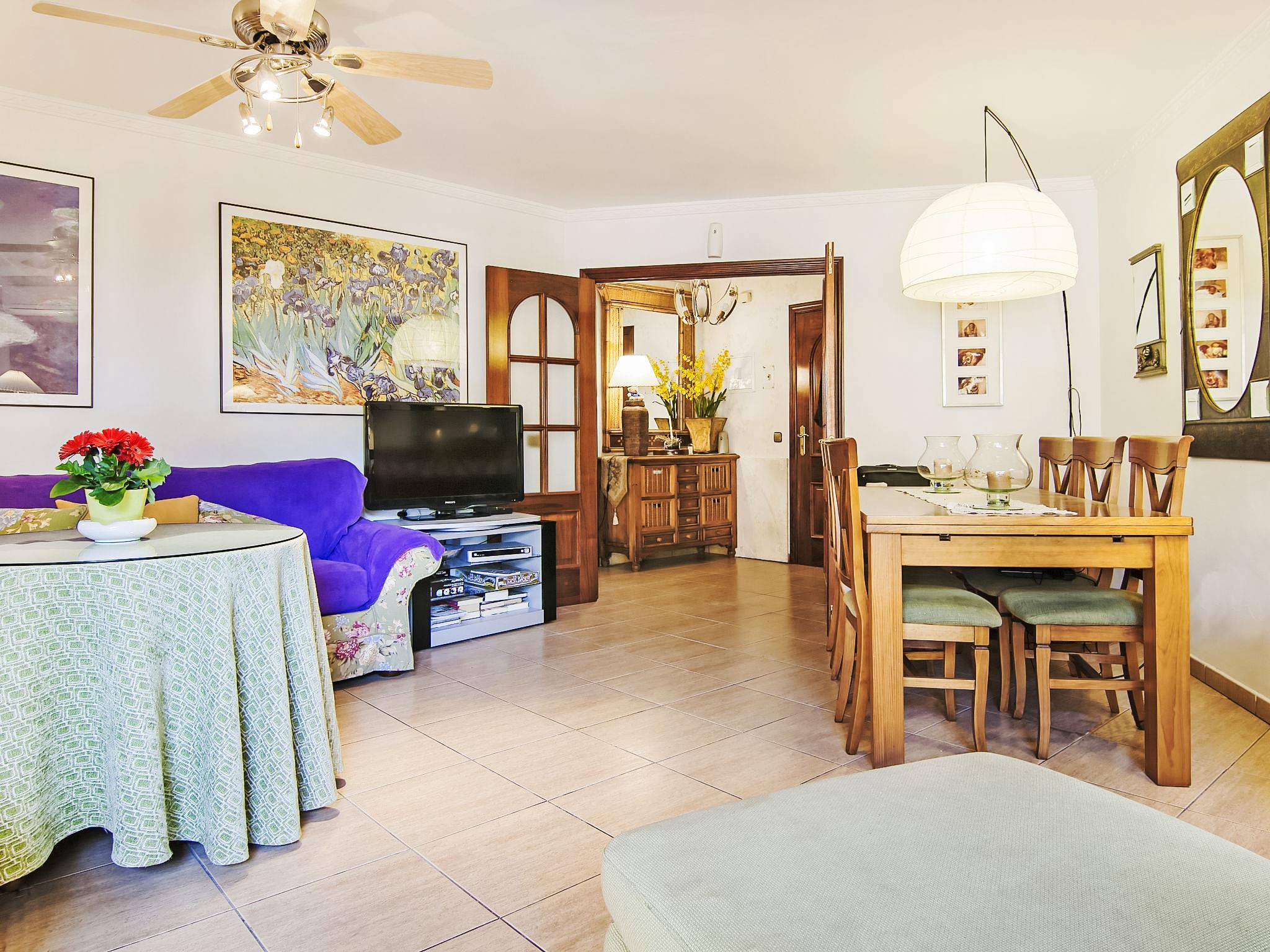 4-room apartment 102 m2 on 1st floor. Object suitable for 6 adults + 1 child. Spacious and bright, beautiful and cosy furnishings: living/dining room with digital TV, flat screen, air conditioning and forced-air heating. Exit to the terrace. 1 double bedroom with 1 french bed, bath/WC, air conditioning and forced-air heating. 1 double bedroom with 1 french bed, air conditioning and forced-air heating. 1 double bedroom with 2 beds (90 cm), air conditioning and forced-air heating. Kitchen (4 hot plates, oven, dishwasher, kettle, microwave, freezer, electric coffee machine). Bath/WC. Terrace. Terrace furniture. View of the swimming pool and the garden. Facilities: washing machine, dryer, hair dryer. Internet (WiFi, free). Parking space n 26. Suitable for families. VFT/MA/20017 // Reg. Nr.: ESFCTU0000290210002356930000000000000000VFT/MA/200170